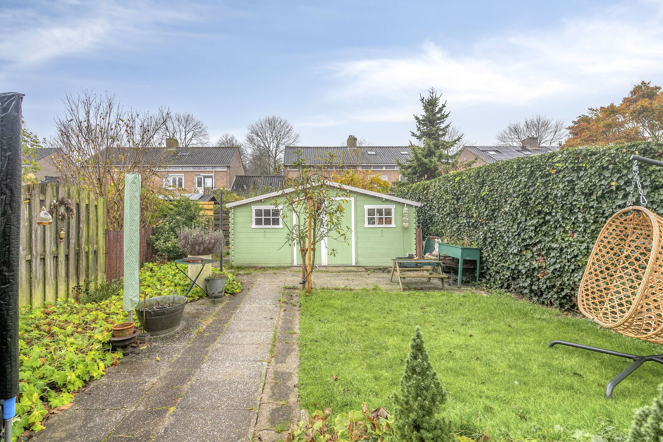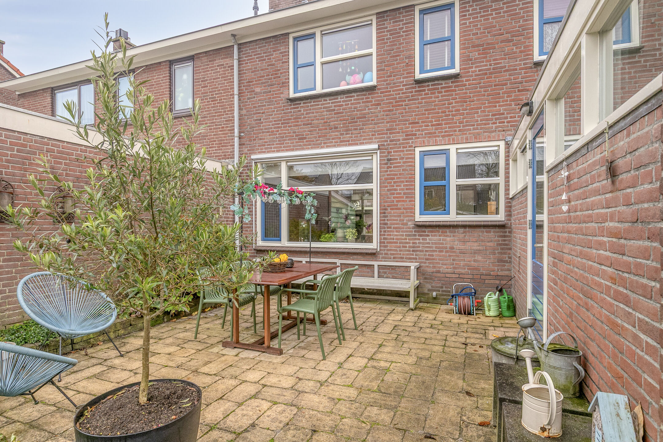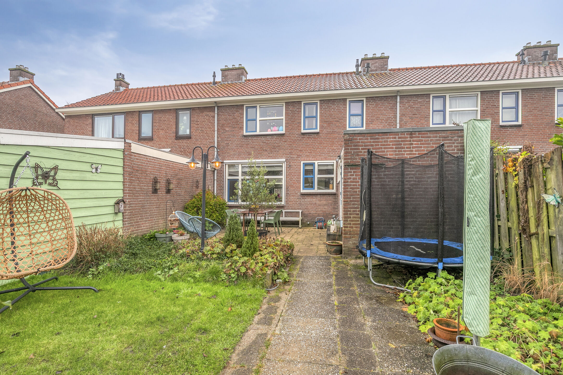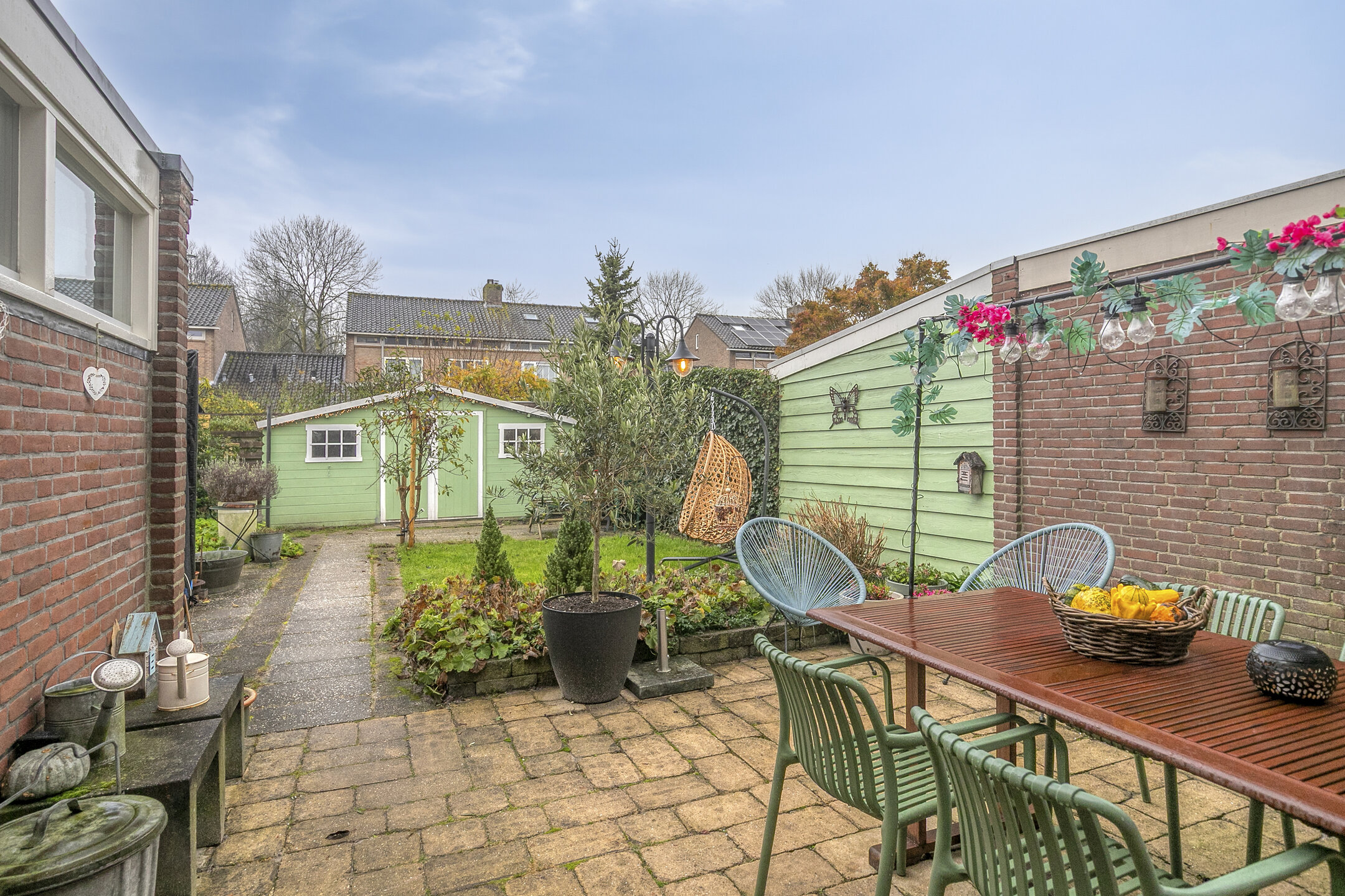 De diepe tuin ligt op het westen, waardoor je veel van de zon kunt genieten. De tuin is goed in balans met een stukje gazon, vaste beplanting en tegels. De tuin biedt meer dan voldoende ruimte voor het creëren van meerdere zitjes. Achter in de tuin bevindt zich een grote berging (2024) die beschikt over elektra. Handig voor opslag van de fietsen en het tuingereedschap, maar ook zeker ideaal voor de klusser; ruimte genoeg voor een werkbank!