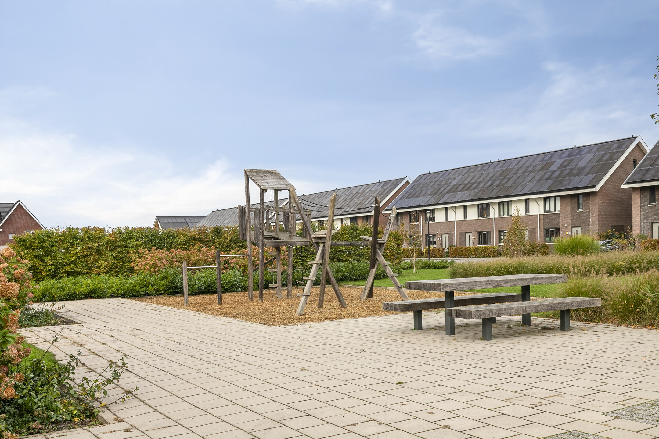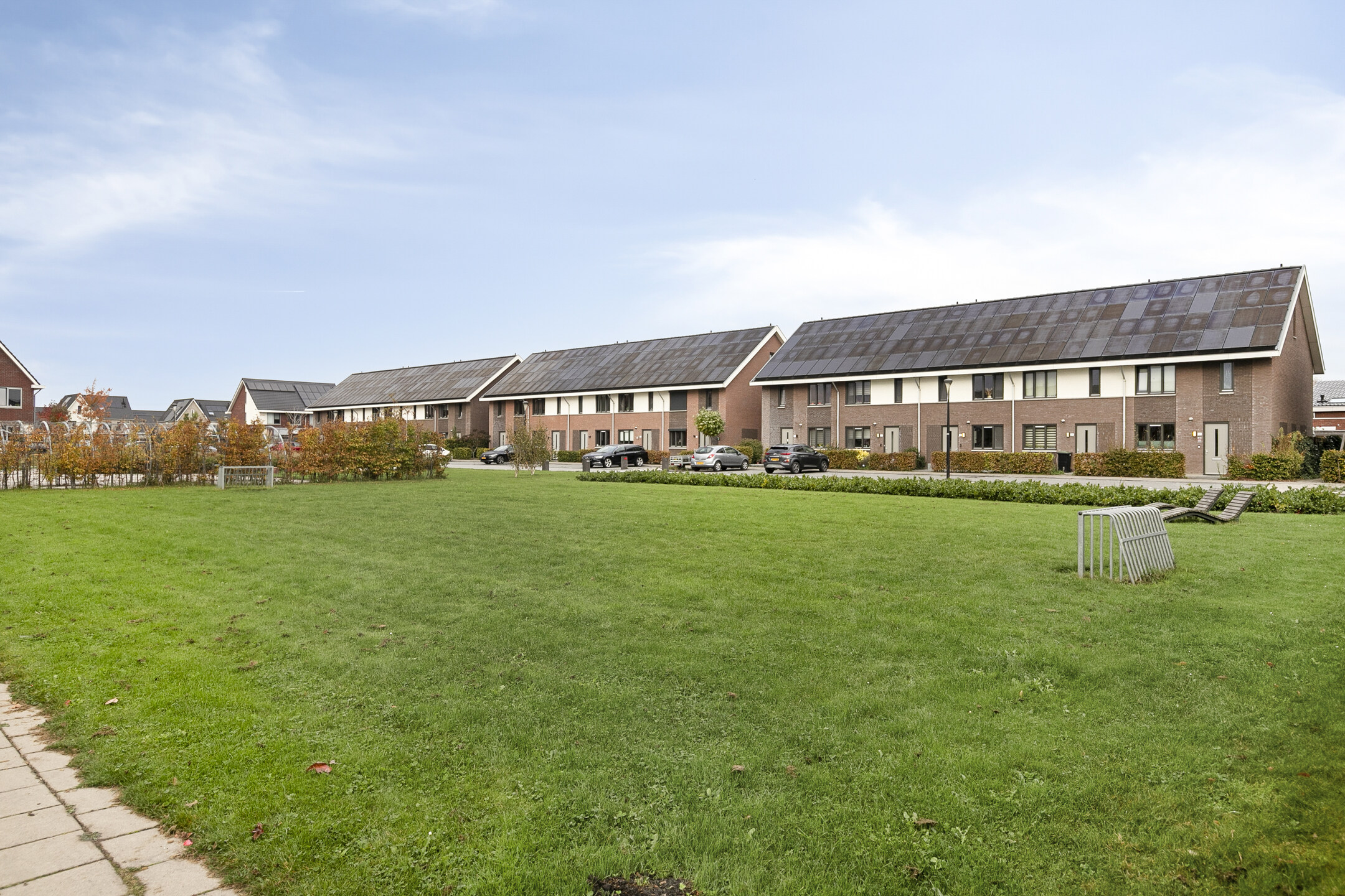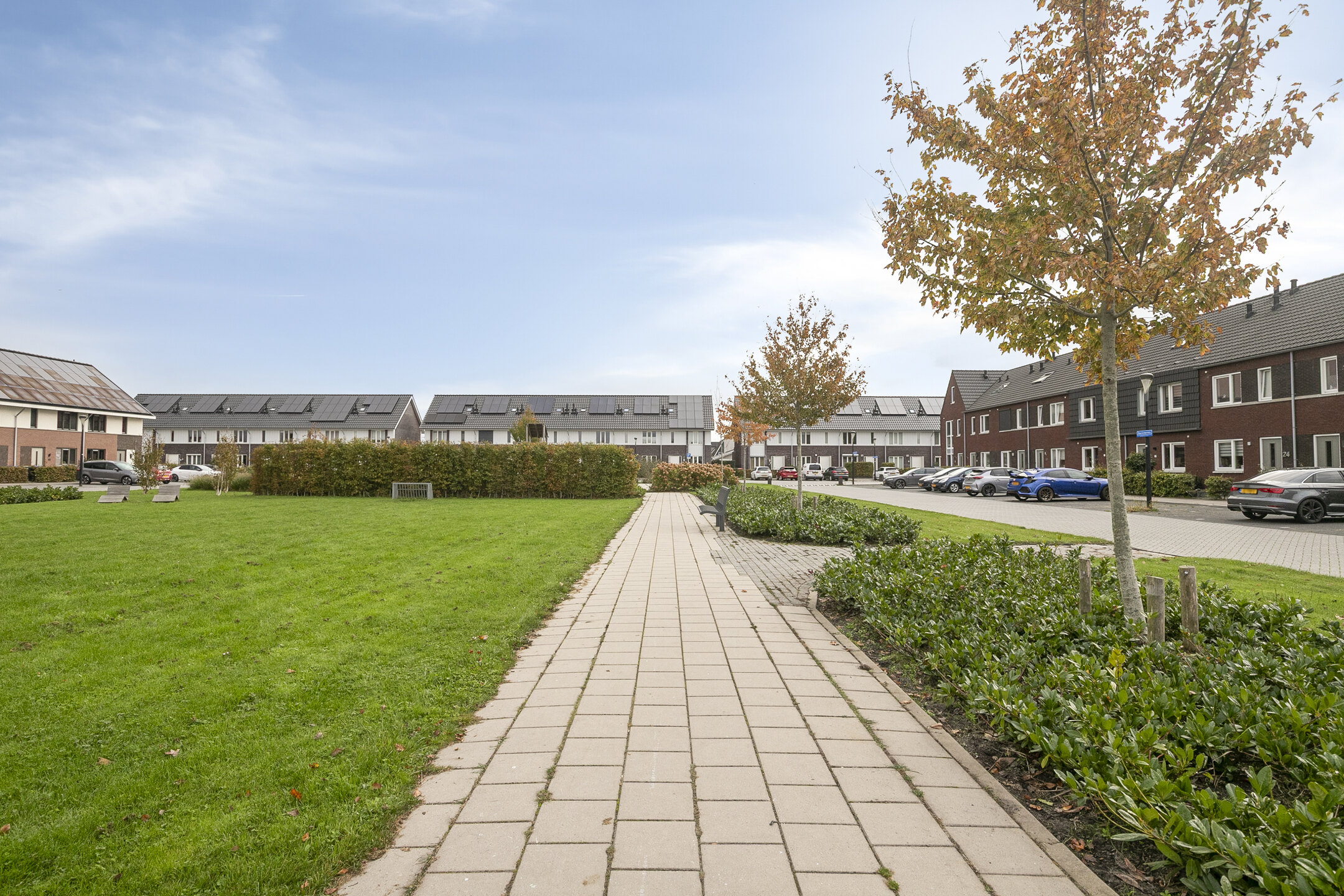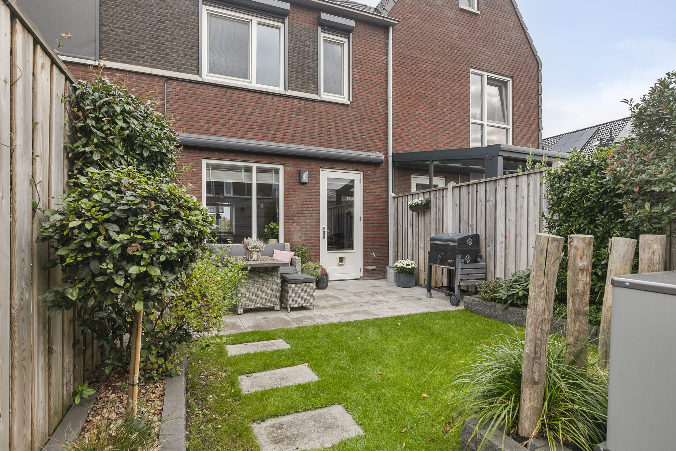 Vanuit de woonkamer stap je zo de achtertuin in. En hier is het volop genieten! Met de zuidelijke ligging geniet je hier volop van de zon en op de warmere dagen van het jaar maak je gemakkelijk gebruik van het elektrisch bedienbare zonnescherm. Bij de woning bevindt zich een terras waar je de mogelijkheid hebt een eettafel of loungeset te plaatsen. De tuin is verder mooi in balans met staptegels, gras en beplanting. Achter in de tuin tref je de berging (voorzien van elektra) en de afsluitbare achterom.