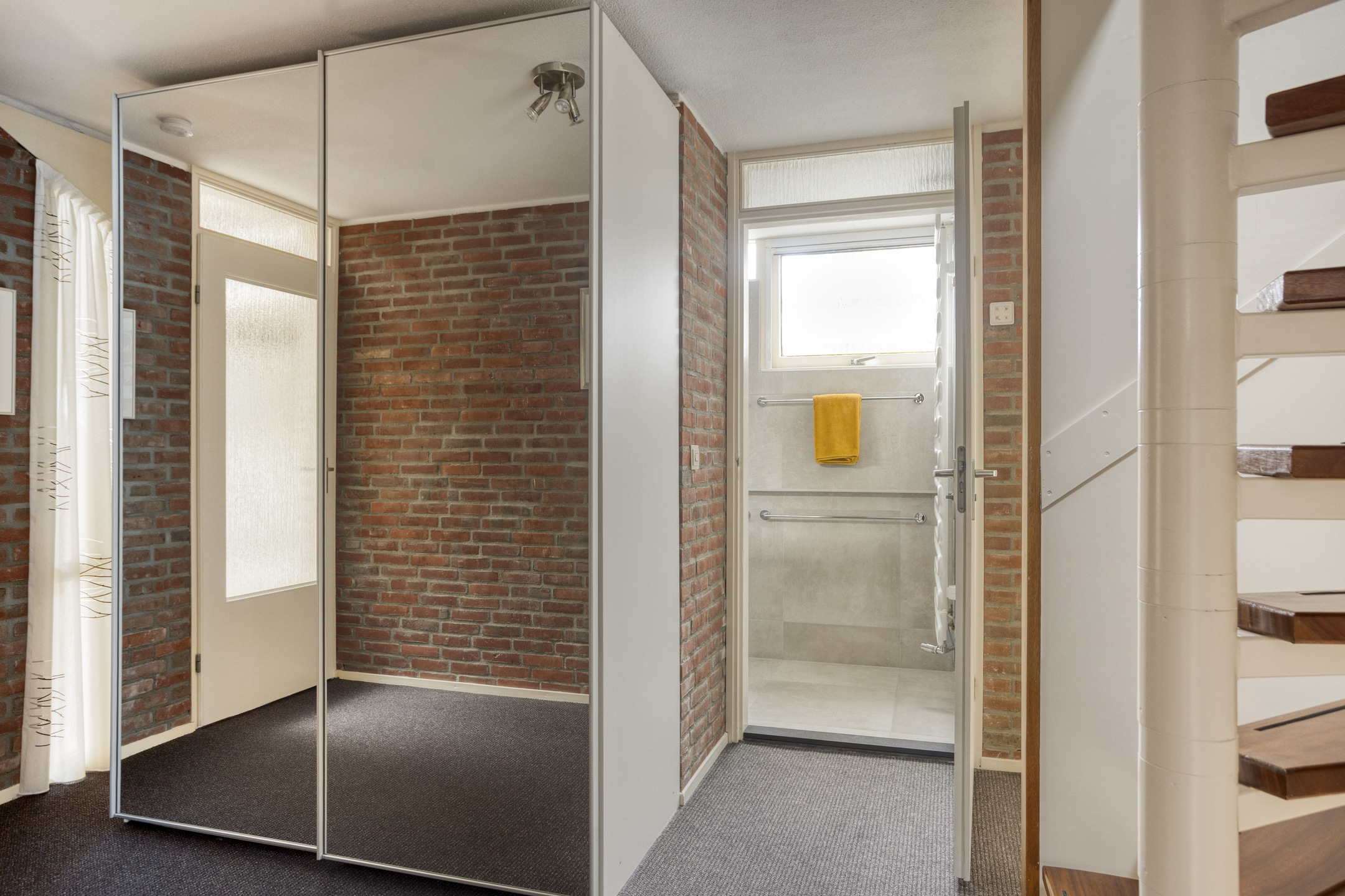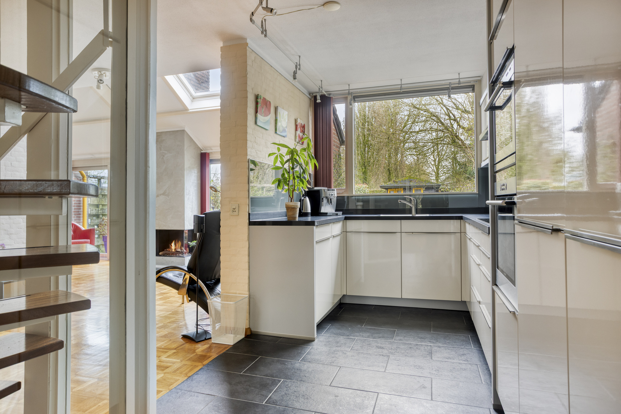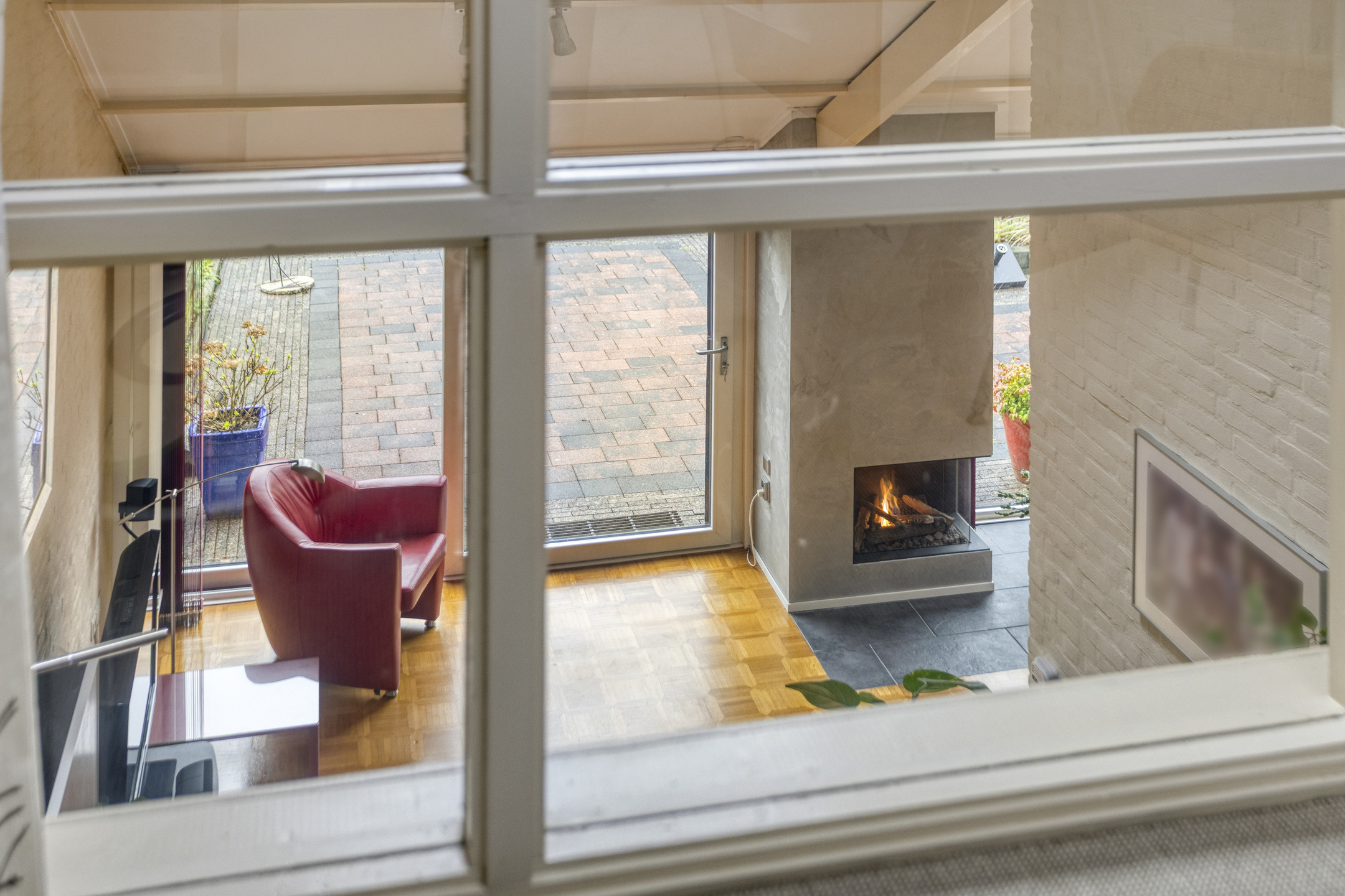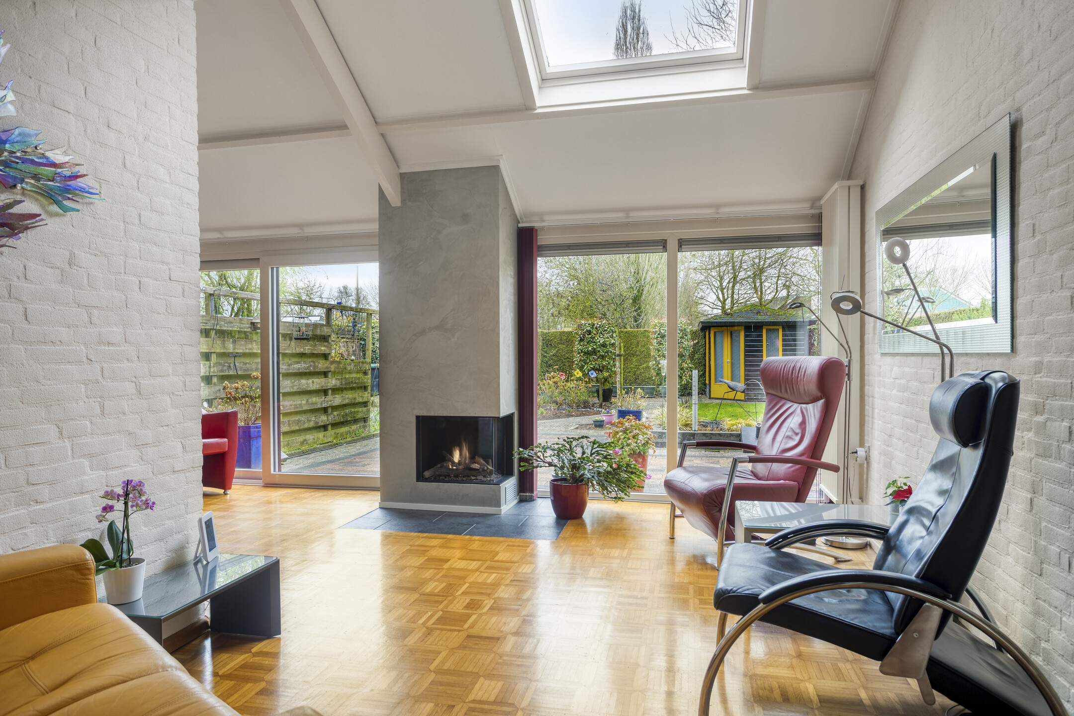 Aankomst bij de woning, waar je 2 auto’s op eigen terrein kunt parkeren. Binnenkomst in de hal met de garderobe, de toegang tot de living, de toiletruimte en de toegang tot de tussenhal en de inpandige berging. De toiletruimte is betegeld in een moderne kleurstelling en is voorzien van een zwevend toilet en een fonteintje. Bij binnenkomst in de living valt de speelse en unieke indeling als een warme deken over je heen: wat een mogelijkheden om je eigen stijl toe te voegen! Centraal gelegen is de trapopgang naar de 1e verdieping, die is afgesloten middels een glazen ombouw. Hierdoor behoud je volop daglicht! Verder kun je meerdere zitjes creëren en heb je de ruimte voor verschillende meubels. De keuzes zijn aan jou! Je treft hier verder een sfeervolle gashaard, een (kunststof) schuifpui naar de tuin, een parketvloer, grote dakramen en een zeer ruime voorraadkast. De open keuken, in een tijdloze kleurencombinatie, bevindt zich in een U-opstelling. Hierdoor is er veel kast- en werkruimte aanwezig! De inbouwapparatuur betreft een koelkast, een oven, een vaatwasser, een combimagnetron, een 5-pits inductiekookplaat, een close-in boiler en een RVS-afzuigschouw. De inpandige berging biedt alle ruimte voor het stallen van de fietsen en beschikt over een deur naar de voorzijde van de woning en een groot dakraam. In de tussenhal, die tevens toegang biedt tot de garage, tref je de aansluitingen voor de was- en droogapparatuur en de meterkast. De garage is heerlijk ruim en biedt voorzieningen als elektra, een vliering, vaste kasten en een elektrische sectionaaldeur.