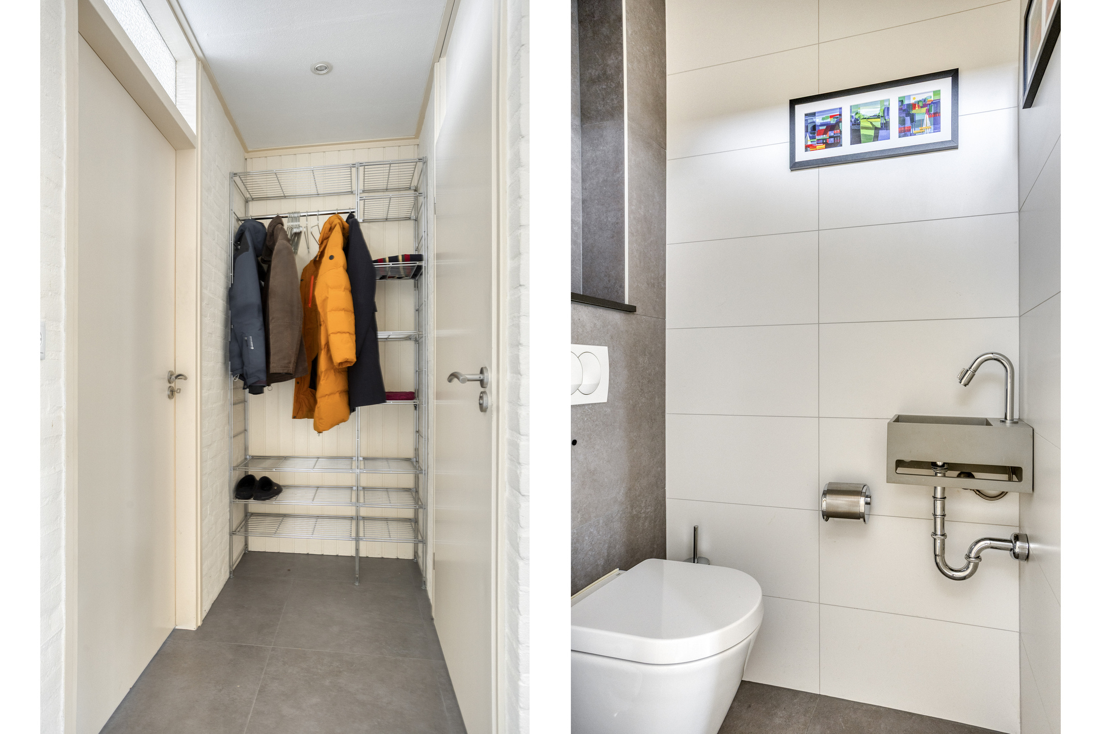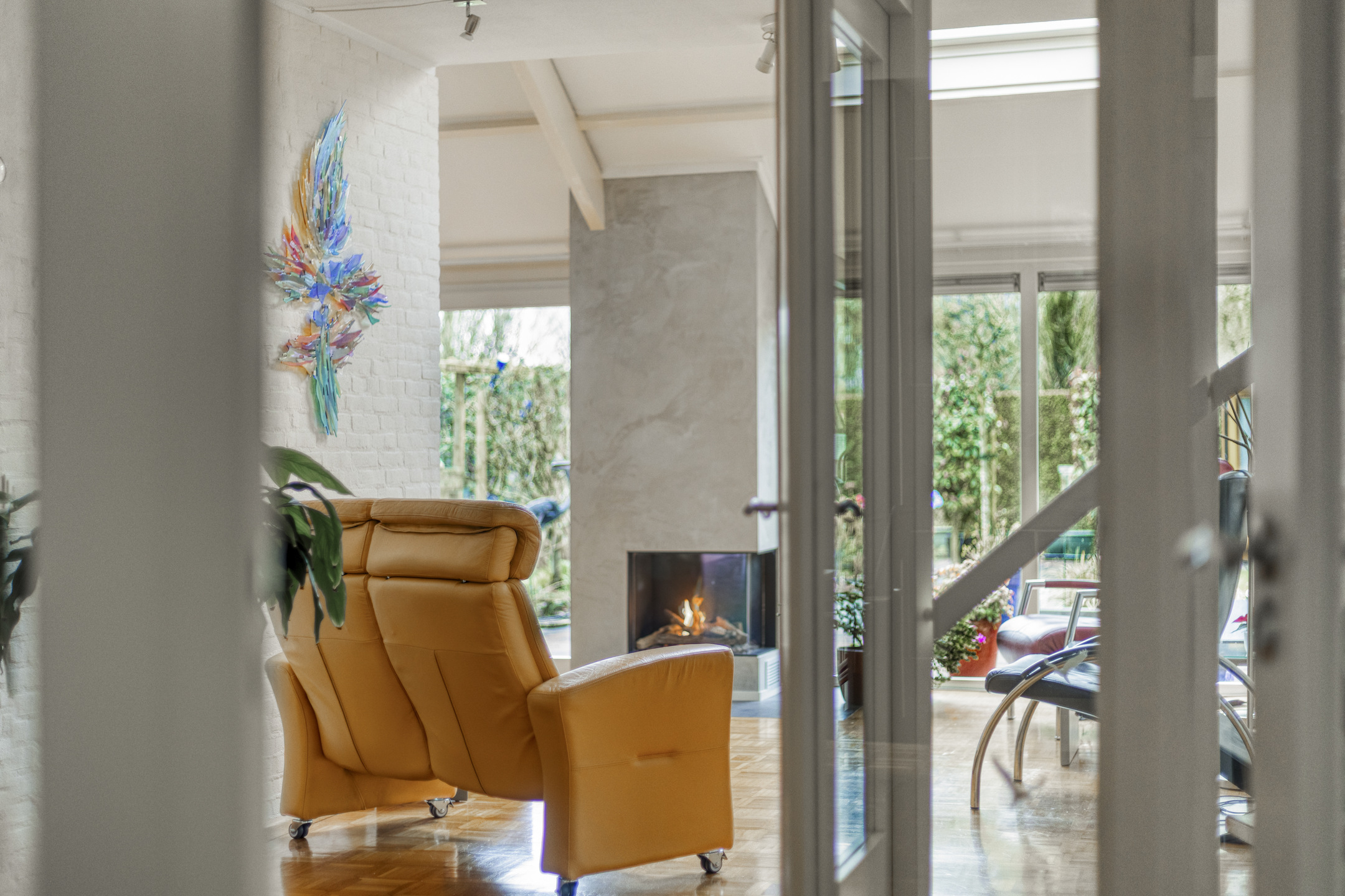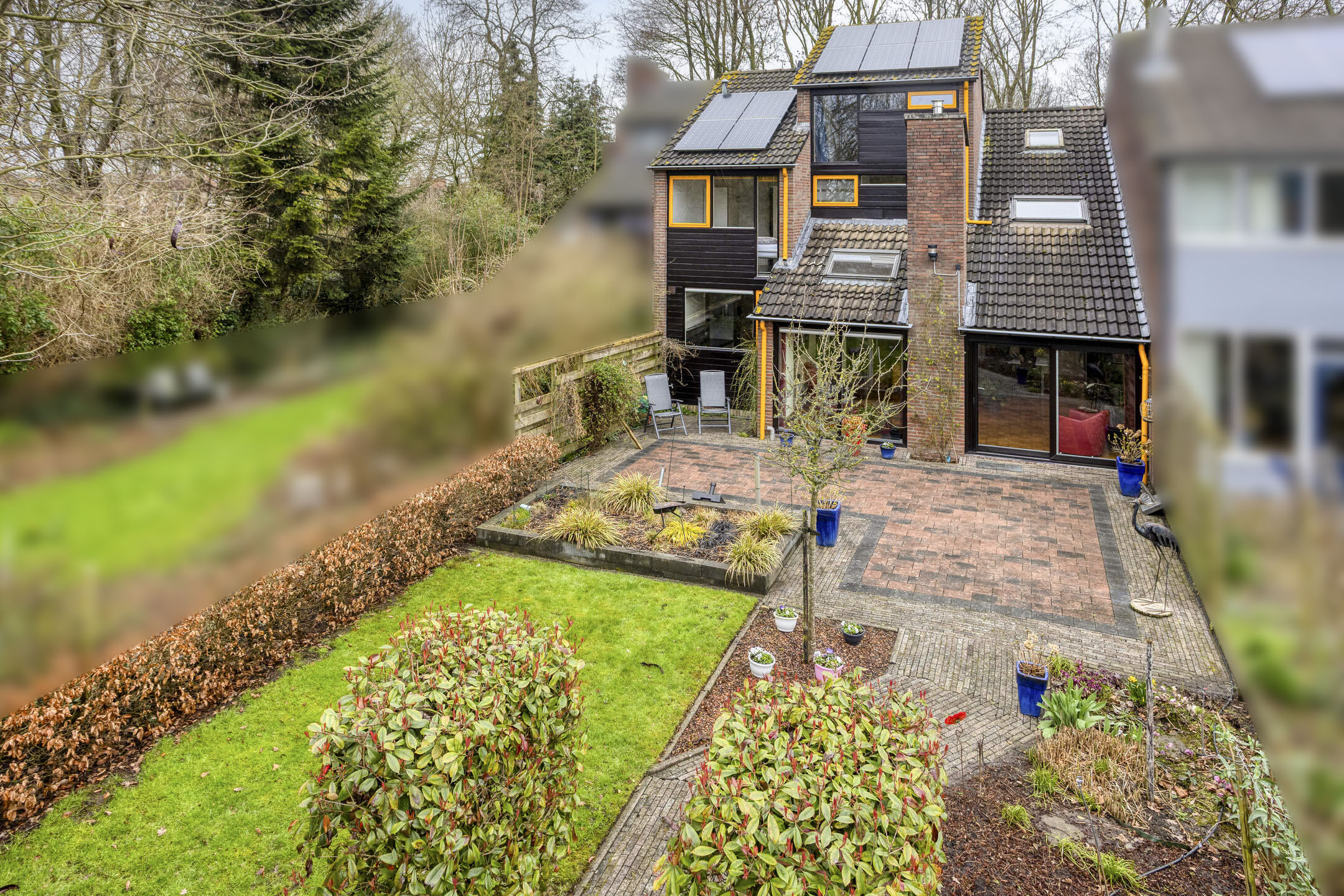Aankomst bij de woning, waar je 2 auto’s op eigen terrein kunt parkeren. Binnenkomst in de hal met de garderobe, de toegang tot de living, de toiletruimte en de toegang tot de tussenhal en de inpandige berging. De toiletruimte is betegeld in een moderne kleurstelling en is voorzien van een zwevend toilet en een fonteintje. Bij binnenkomst in de living valt de speelse en unieke indeling als een warme deken over je heen: wat een mogelijkheden om je eigen stijl toe te voegen! Centraal gelegen is de trapopgang naar de 1e verdieping, die is afgesloten middels een glazen ombouw. Hierdoor behoud je volop daglicht! Verder kun je meerdere zitjes creëren en heb je de ruimte voor verschillende meubels. De keuzes zijn aan jou! Je treft hier verder een sfeervolle gashaard, een (kunststof) schuifpui naar de tuin, een parketvloer, grote dakramen en een zeer ruime voorraadkast. De open keuken, in een tijdloze kleurencombinatie, bevindt zich in een U-opstelling. Hierdoor is er veel kast- en werkruimte aanwezig! De inbouwapparatuur betreft een koelkast, een oven, een vaatwasser, een combimagnetron, een 5-pits inductiekookplaat, een close-in boiler en een RVS-afzuigschouw. De inpandige berging biedt alle ruimte voor het stallen van de fietsen en beschikt over een deur naar de voorzijde van de woning en een groot dakraam. In de tussenhal, die tevens toegang biedt tot de garage, tref je de aansluitingen voor de was- en droogapparatuur en de meterkast. De garage is heerlijk ruim en biedt voorzieningen als elektra, een vliering, vaste kasten en een elektrische sectionaaldeur.