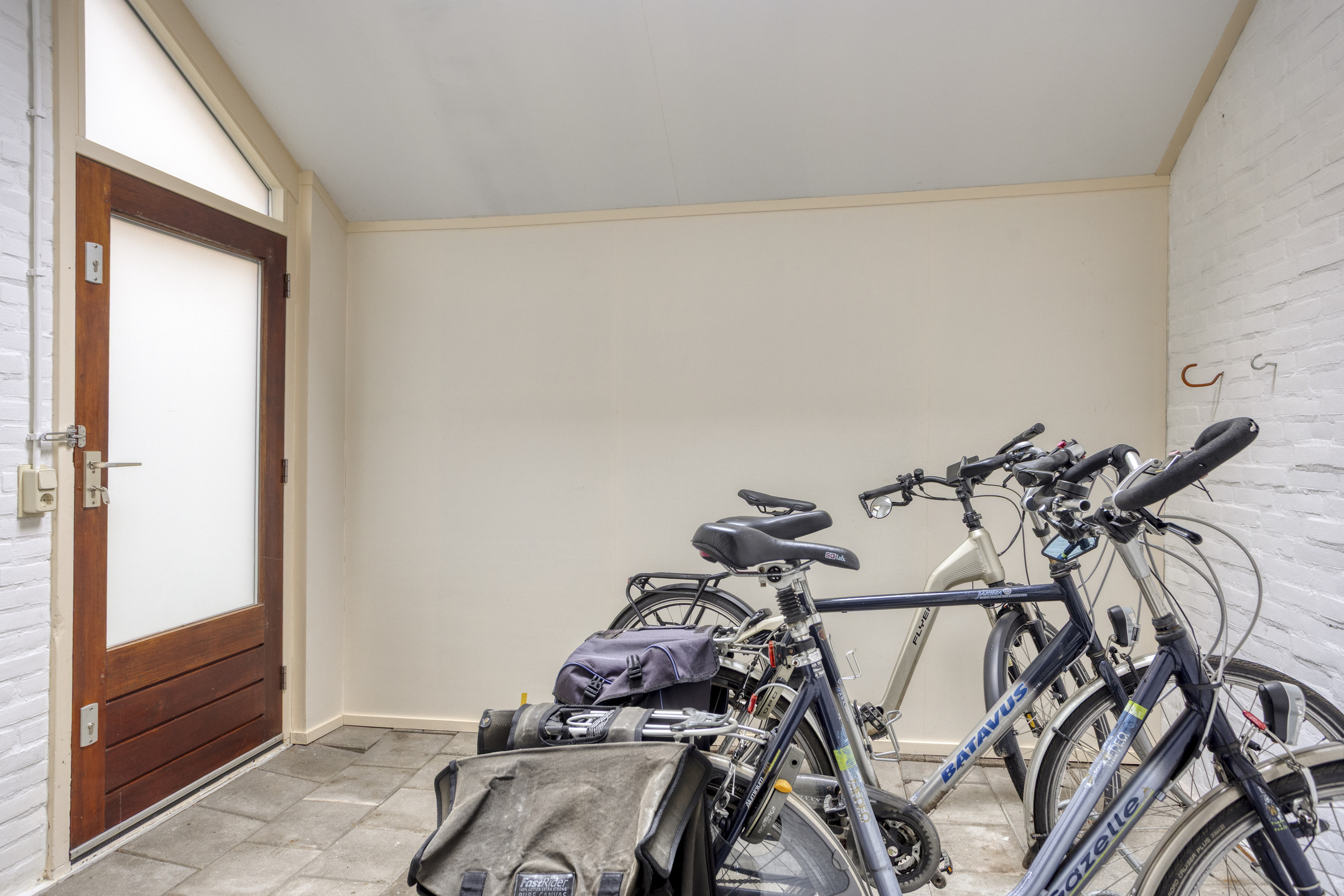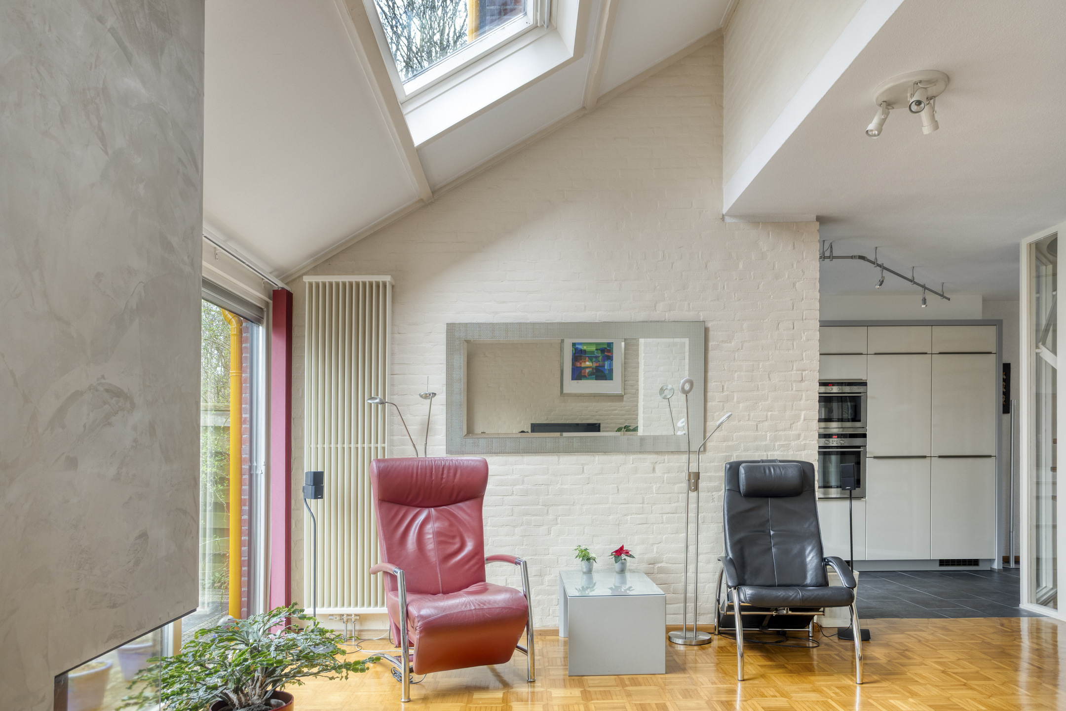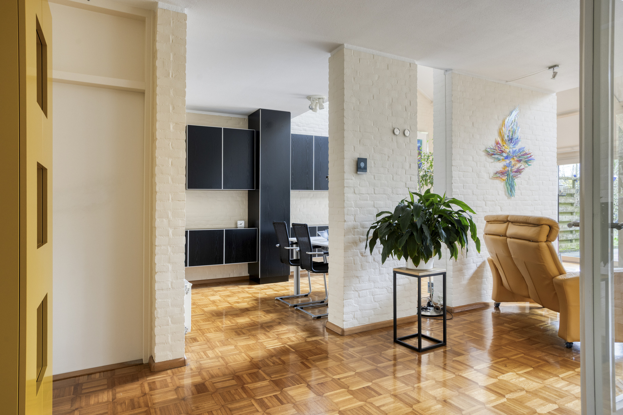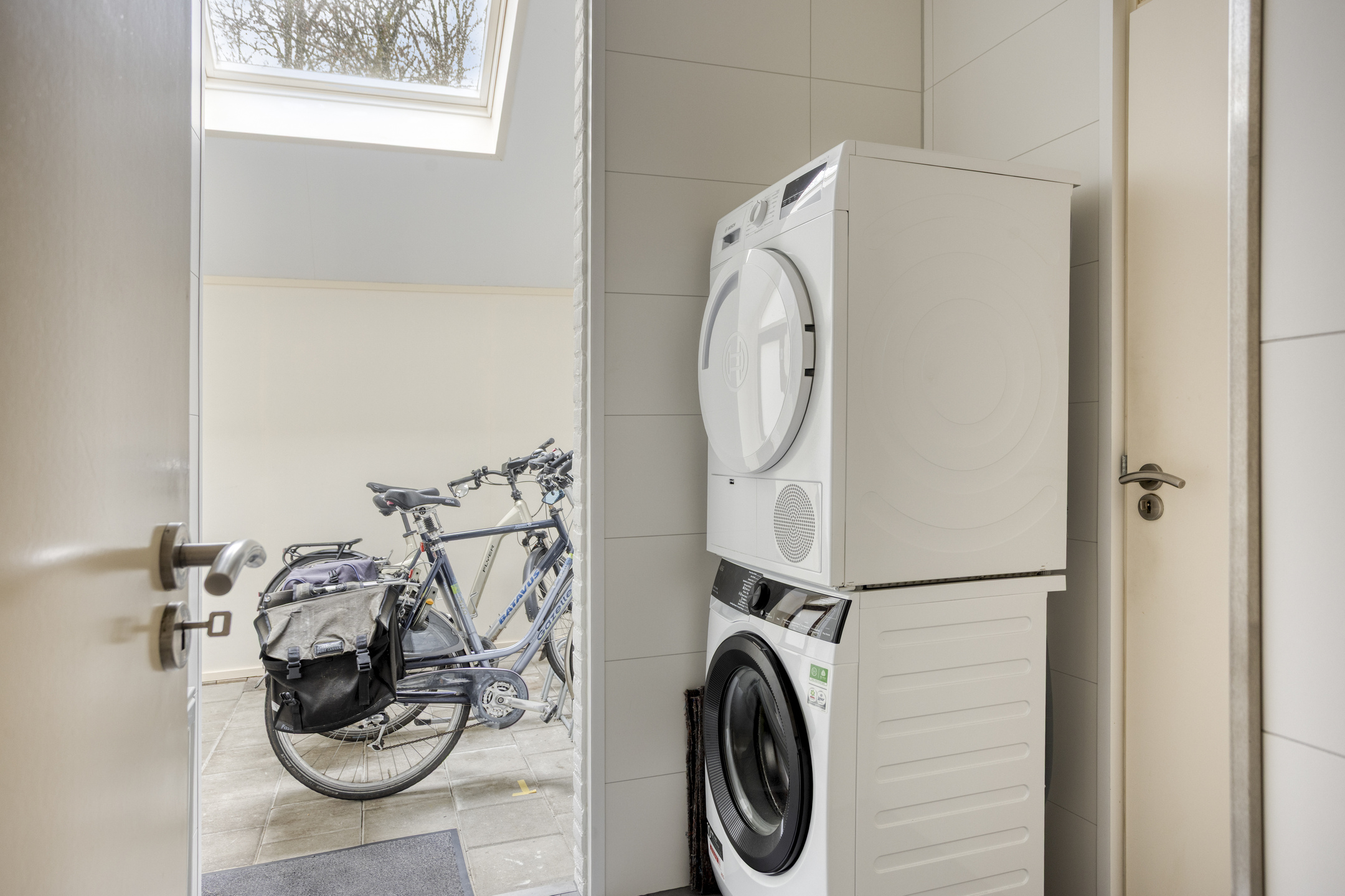 Aankomst bij de woning, waar je 2 auto’s op eigen terrein kunt parkeren. Binnenkomst in de hal met de garderobe, de toegang tot de living, de toiletruimte en de toegang tot de tussenhal en de inpandige berging. De toiletruimte is betegeld in een moderne kleurstelling en is voorzien van een zwevend toilet en een fonteintje. Bij binnenkomst in de living valt de speelse en unieke indeling als een warme deken over je heen: wat een mogelijkheden om je eigen stijl toe te voegen! Centraal gelegen is de trapopgang naar de 1e verdieping, die is afgesloten middels een glazen ombouw. Hierdoor behoud je volop daglicht! Verder kun je meerdere zitjes creëren en heb je de ruimte voor verschillende meubels. De keuzes zijn aan jou! Je treft hier verder een sfeervolle gashaard, een (kunststof) schuifpui naar de tuin, een parketvloer, grote dakramen en een zeer ruime voorraadkast. De open keuken, in een tijdloze kleurencombinatie, bevindt zich in een U-opstelling. Hierdoor is er veel kast- en werkruimte aanwezig! De inbouwapparatuur betreft een koelkast, een oven, een vaatwasser, een combimagnetron, een 5-pits inductiekookplaat, een close-in boiler en een RVS-afzuigschouw. De inpandige berging biedt alle ruimte voor het stallen van de fietsen en beschikt over een deur naar de voorzijde van de woning en een groot dakraam. In de tussenhal, die tevens toegang biedt tot de garage, tref je de aansluitingen voor de was- en droogapparatuur en de meterkast. De garage is heerlijk ruim en biedt voorzieningen als elektra, een vliering, vaste kasten en een elektrische sectionaaldeur.