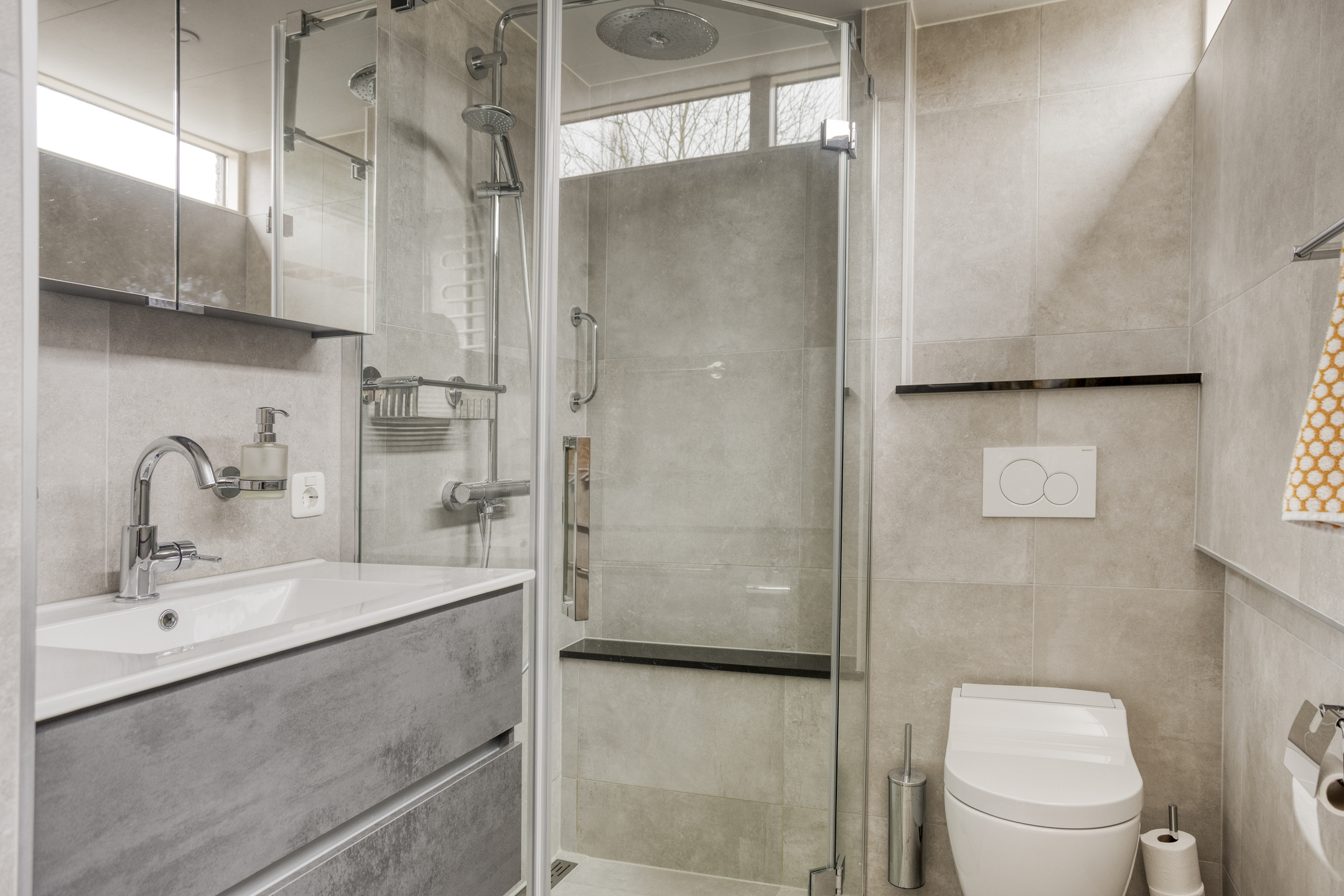 Vanaf de ruime overloop zijn de 4 slaapkamers, 1 van de 2 badkamers en de vaste trapopgang naar de 2e verdieping bereikbaar. De slaapkamers zijn stuk voor stuk lekker ruim en beschikken over veel daglichttoetreding. In 1 van de slaapkamers is zelfs een slaap-/speelvide aanwezig met doorkijk naar de woonkamer! Deze verdieping beschikt over maar liefst 2 badkamers, waarvan er 1 tussen 2 slaapkamers in is gesitueerd. Deze badkamer is betegeld in een neutrale kleurstelling en is ingericht met een douchecabine, een wastafel, een designradiator en een spiegelkast. De andere badkamer, die vanaf de overloop bereikbaar is, is betegeld in moderne grijstinten en is ingericht met een inloopdouche met draingoot, een zwevend toilet met bidetfunctie, een designradiator, elektrische vloerverwarming, een wastafel met meubel en een spiegelkast.