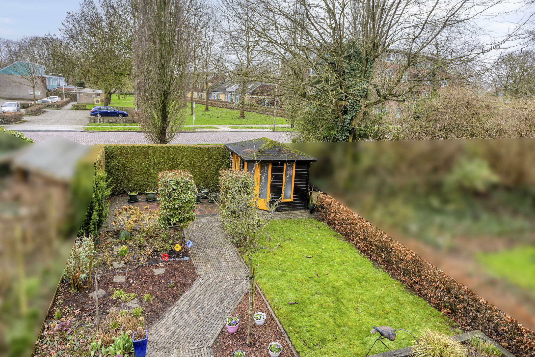 Geniet jij ook zo graag van de zon? Dan zit je in deze tuin wel goed! Met de ligging op het zuiden zul je al vroeg op de dag de eerste zonnestralen gaan zien en is het al snel tijd om naar buiten te gaan! De tuin is met een fijne portie groen aangelegd en je hebt alle mogelijkheid om verschillende zitjes te plaatsen dankzij de royale terrassen. Achter in de tuin tref je een houten tuinhuis, die zich perfect leent voor het opslaan van tuingereedschap. Het tuinhuis is verder voorzien van elektra en een deur die dient als achterom.