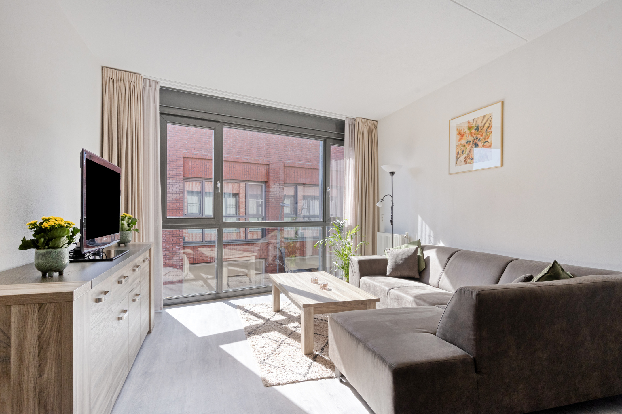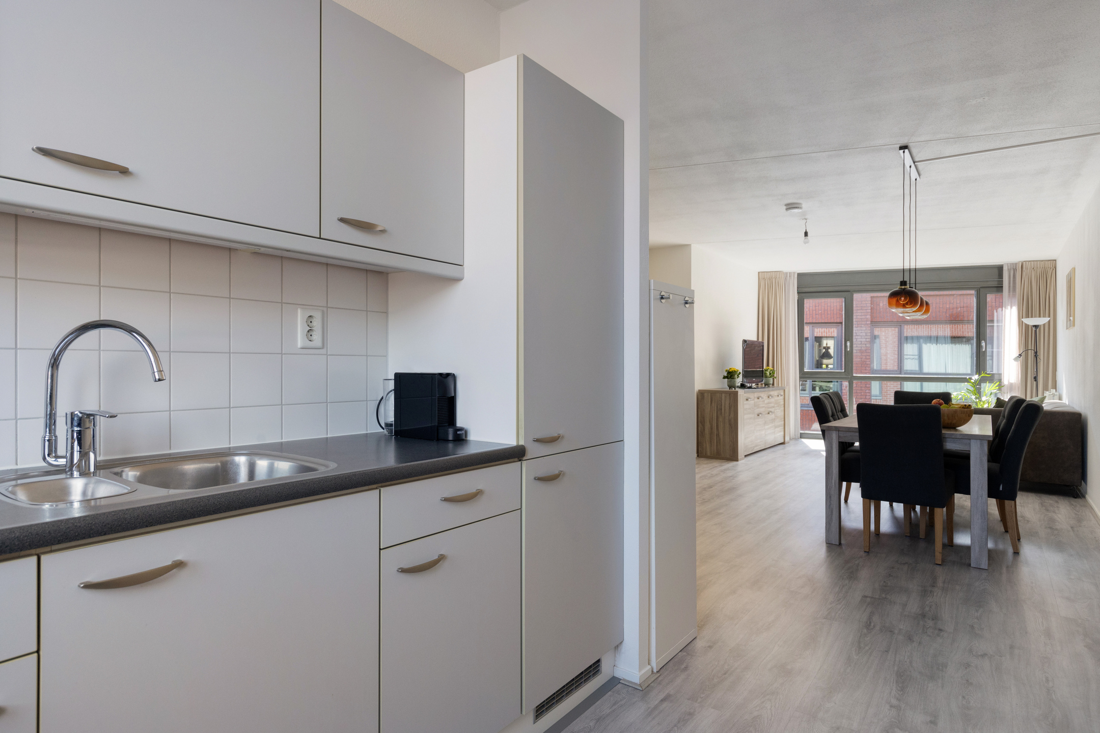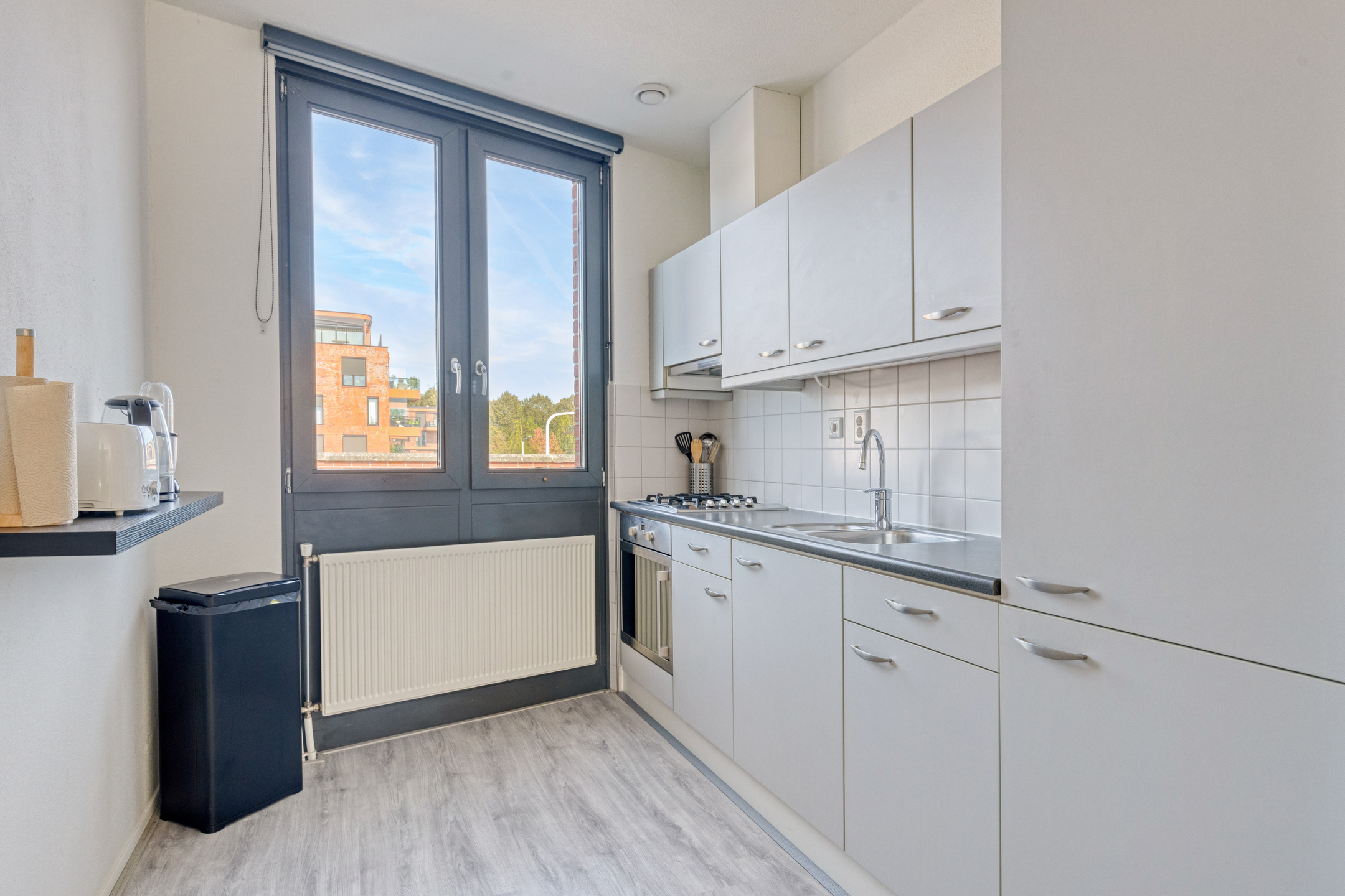 Binnenkomst in de ruime hal waar je gemakkelijk je schoenen, jassen en tassen opbergt. Hier tref je verder de meterkast en de toegang tot de living. Bij binnenkomst is het vele daglicht dankzij de raampartijen tot aan de grond hetgeen dat meteen opvalt. Wat een fijne ruimte om in te delen! Je hebt hier alle plek voor een fijne zithoek én een grote eettafel om lekker met vrienden en familie aan plaats te nemen. De keuken is aan de voorzijde van het appartement gesitueerd en bevindt zich in een rechte opstelling in grijstinten. De aanwezige inbouwapparatuur betreft een 4-pits gaskookplaat, een vlakscherm afzuigkap, een oven en een koel-/vriescombinatie. Via de 2e hal is er toegang tot de 2 slaapkamers, de berging, de badkamer en de separate toiletruimte. De slaapkamer aan de winkelstraatzijde beschikt over een grote raampartij. Een heerlijke kamer om bijvoorbeeld als thuiswerkplek in te richten. De andere slaapkamer biedt alle ruimte voor het plaatsen van een tweepersoonsbed en een kledingkast.
