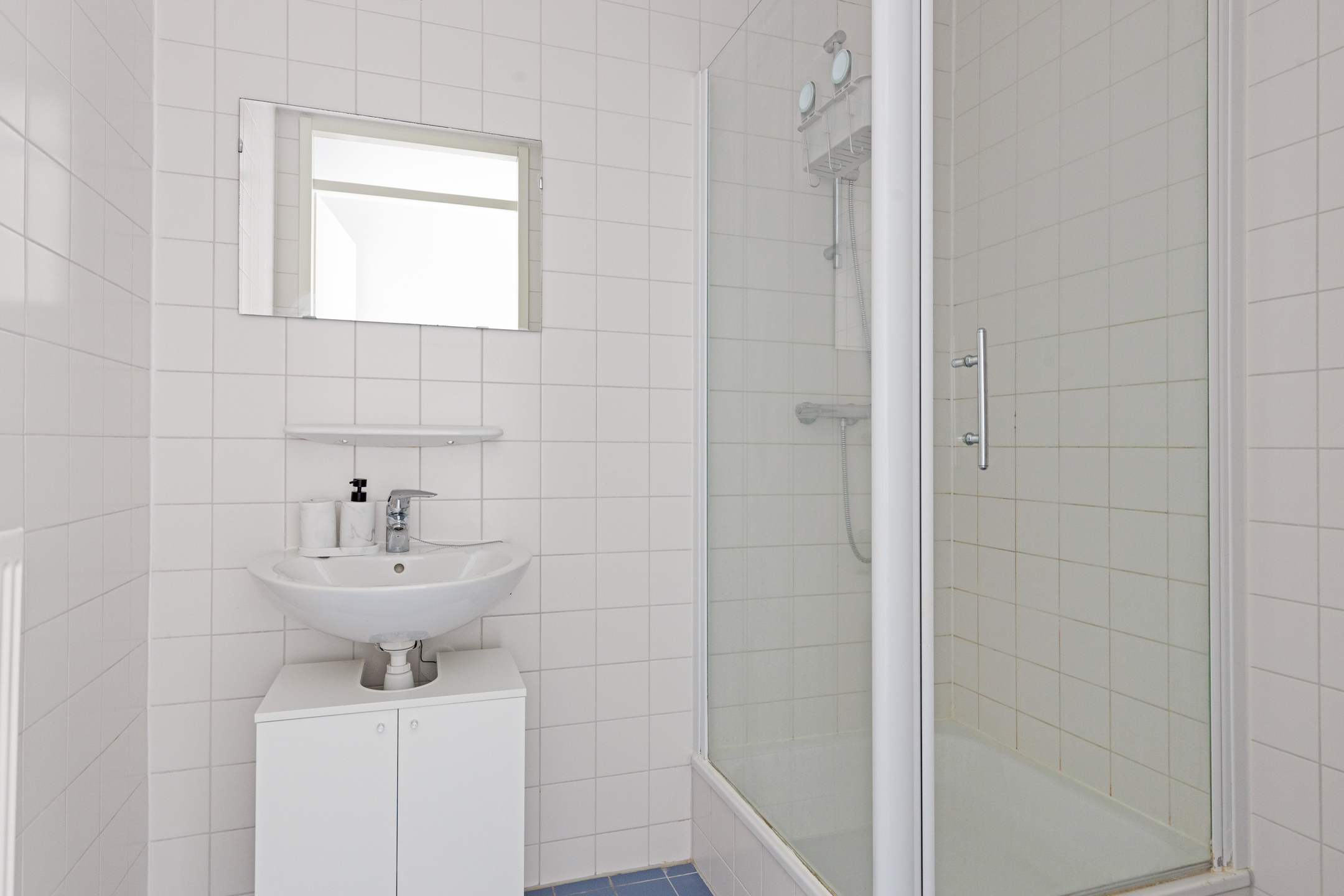 De badkamer is van vloer tot plafond betegeld en is ingericht met een wastafel met meubel en een douche met cabine. Separaat tref je de eveneens volledig betegelde toiletruimte. De berging biedt ruimte voor de wasapparatuur en verder tref je hier de mv-unit en de cv-installatie (2024).