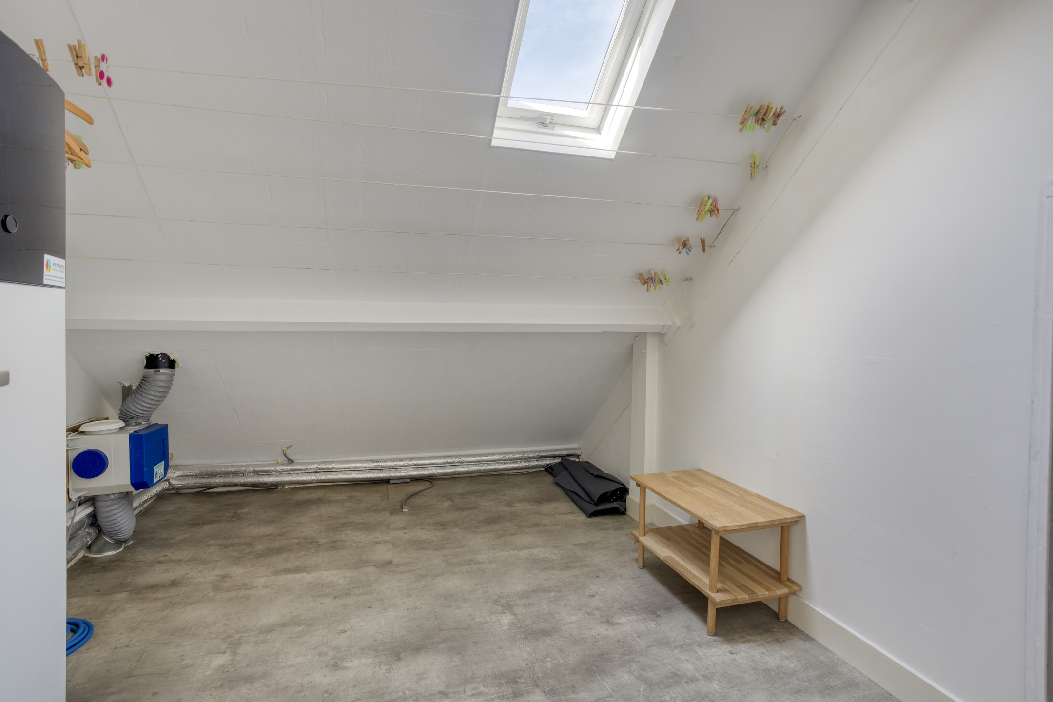 De berging biedt voldoende ruimte om de was te drogen en hier bevinden zich tevens de aansluitingen voor de was- en droogapparatuur. Daarnaast tref je hier de mv-unit en de warmtepomp. De gehele verdieping is voorzien van een lichtgrijze vinylvloer.