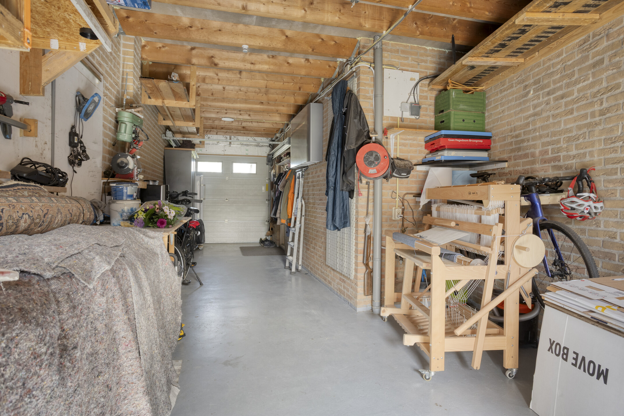 De garage, bereikbaar vanuit de hal, heeft een lengte van circa 11 meter en biedt diverse gebruiksmogelijkheden. Je beschikt hier over een elektrische deur, elektra-aansluitingen, water, een betonvloer en een deur naar de tuin.