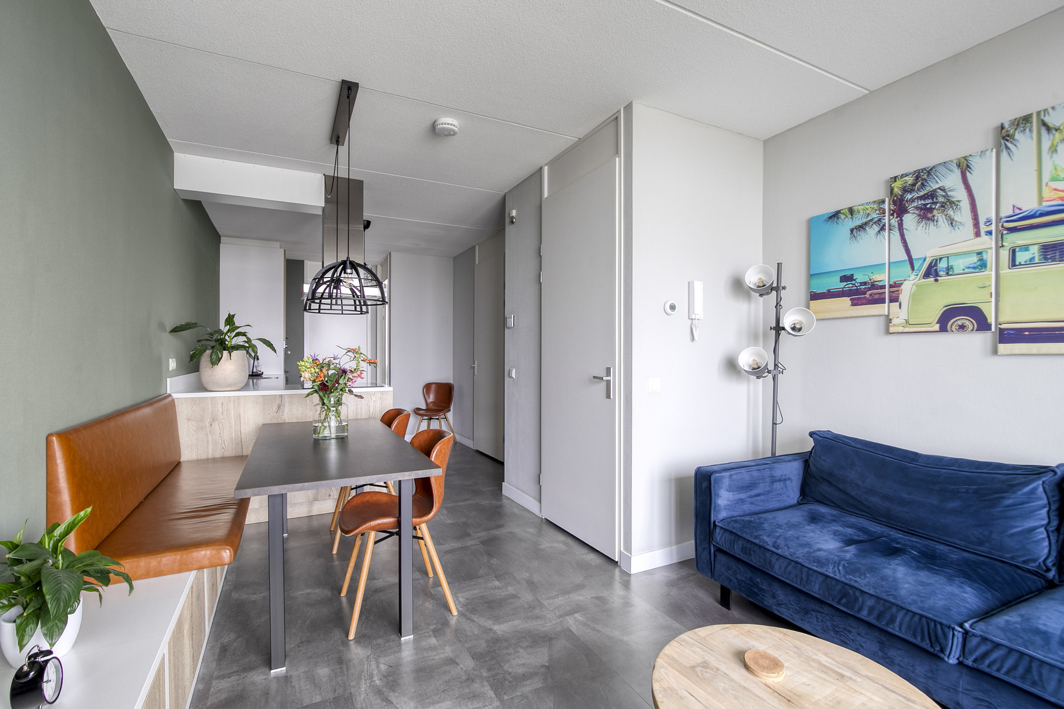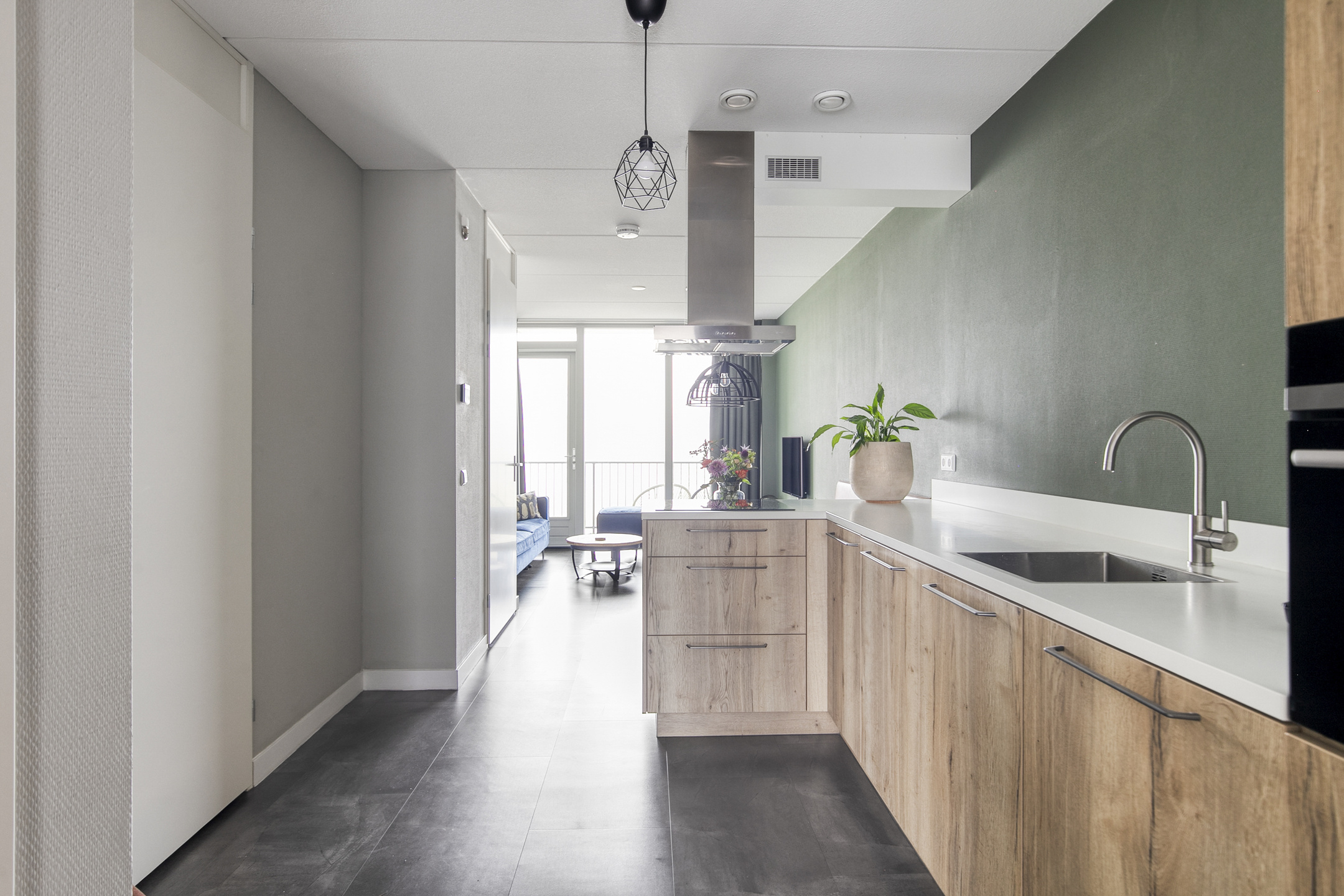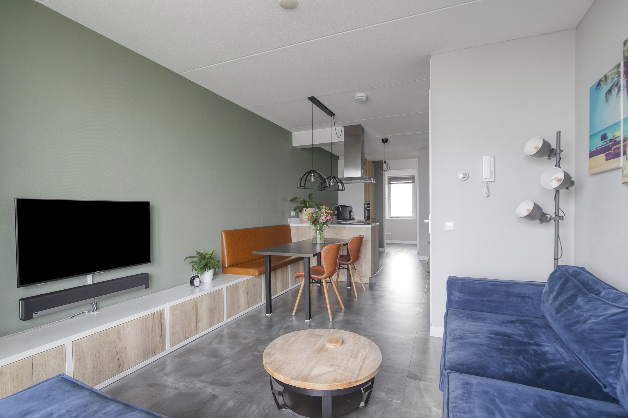 Binnenkomst in de hal met de garderobe, de verdeler voor de vloerverwarming en de toegang tot de living. De ruimte is sfeervol en slim ingedeeld met op maat gemaakte meubels en een strakke afwerking. Zittend op de bank heb je uitzicht over de bedrijvigheid beneden en ter plaatse van de eethoek heb je de mogelijkheid een eettafel van fijn formaat neer te zetten. De vergrote, strak afgewerkte keuken is in een lichte kleurstelling uitgevoerd en bevindt zich in een hoek. De aanwezige inbouwapparatuur (Siemens) betreft een koel-vriescombinatie, een 4-pits inductiekookplaat, een RVS-afzuigschouw, een vaatwasser en een combimagnetron. Aansluitend is de badkamer bereikbaar, die van vloer tot plafond is betegeld in een rustige kleurstelling. De badkamer is ingericht met een zwevend toilet, een wastafel, een designradiator, aansluitingen voor de wasmachine, een douche met cabine en de kast met daarin de cv-installatie, de mv-unit en de omvormer voor de zonnepanelen. De 2 slaapkamers bieden voldoende ruimte om in te richten als slaap- of kantoorfunctie en beschikken over veel daglicht. Het gehele appartement is voorzien van een PVC vloer met comfortabele vloerverwarming.