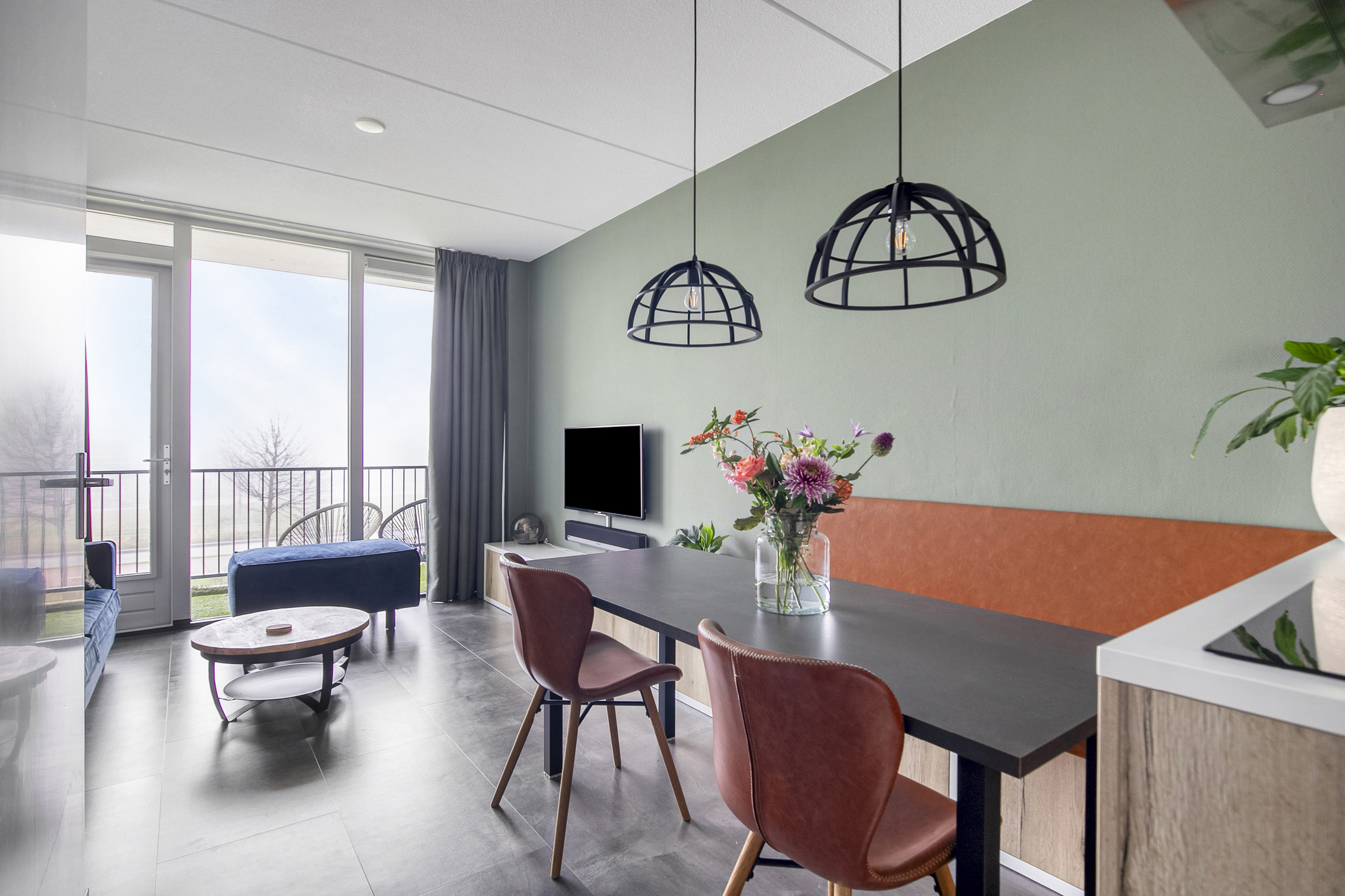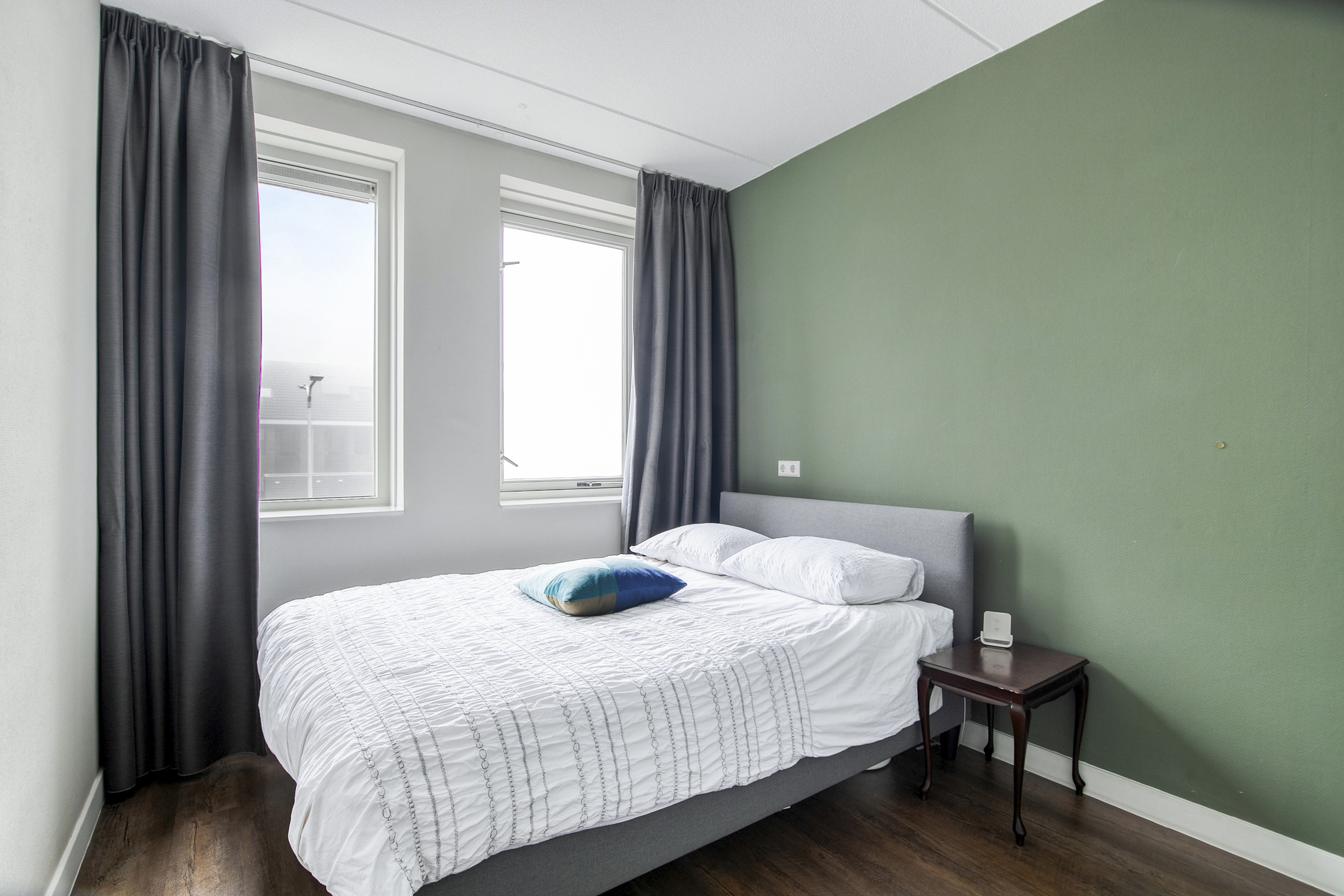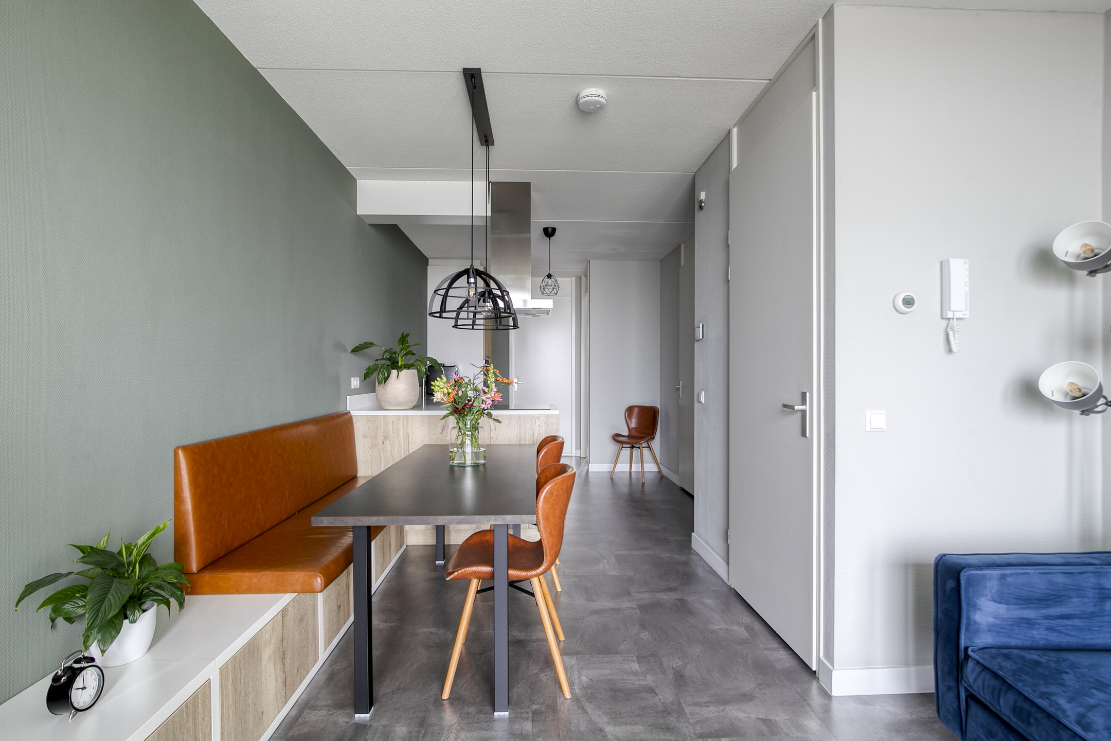 Binnenkomst in de hal met de garderobe, de verdeler voor de vloerverwarming en de toegang tot de living. De ruimte is sfeervol en slim ingedeeld met op maat gemaakte meubels en een strakke afwerking. Zittend op de bank heb je uitzicht over de bedrijvigheid beneden en ter plaatse van de eethoek heb je de mogelijkheid een eettafel van fijn formaat neer te zetten. De vergrote, strak afgewerkte keuken is in een lichte kleurstelling uitgevoerd en bevindt zich in een hoek. De aanwezige inbouwapparatuur (Siemens) betreft een koel-vriescombinatie, een 4-pits inductiekookplaat, een RVS-afzuigschouw, een vaatwasser en een combimagnetron. Aansluitend is de badkamer bereikbaar, die van vloer tot plafond is betegeld in een rustige kleurstelling. De badkamer is ingericht met een zwevend toilet, een wastafel, een designradiator, aansluitingen voor de wasmachine, een douche met cabine en de kast met daarin de cv-installatie, de mv-unit en de omvormer voor de zonnepanelen. De 2 slaapkamers bieden voldoende ruimte om in te richten als slaap- of kantoorfunctie en beschikken over veel daglicht. Het gehele appartement is voorzien van een PVC vloer met comfortabele vloerverwarming.