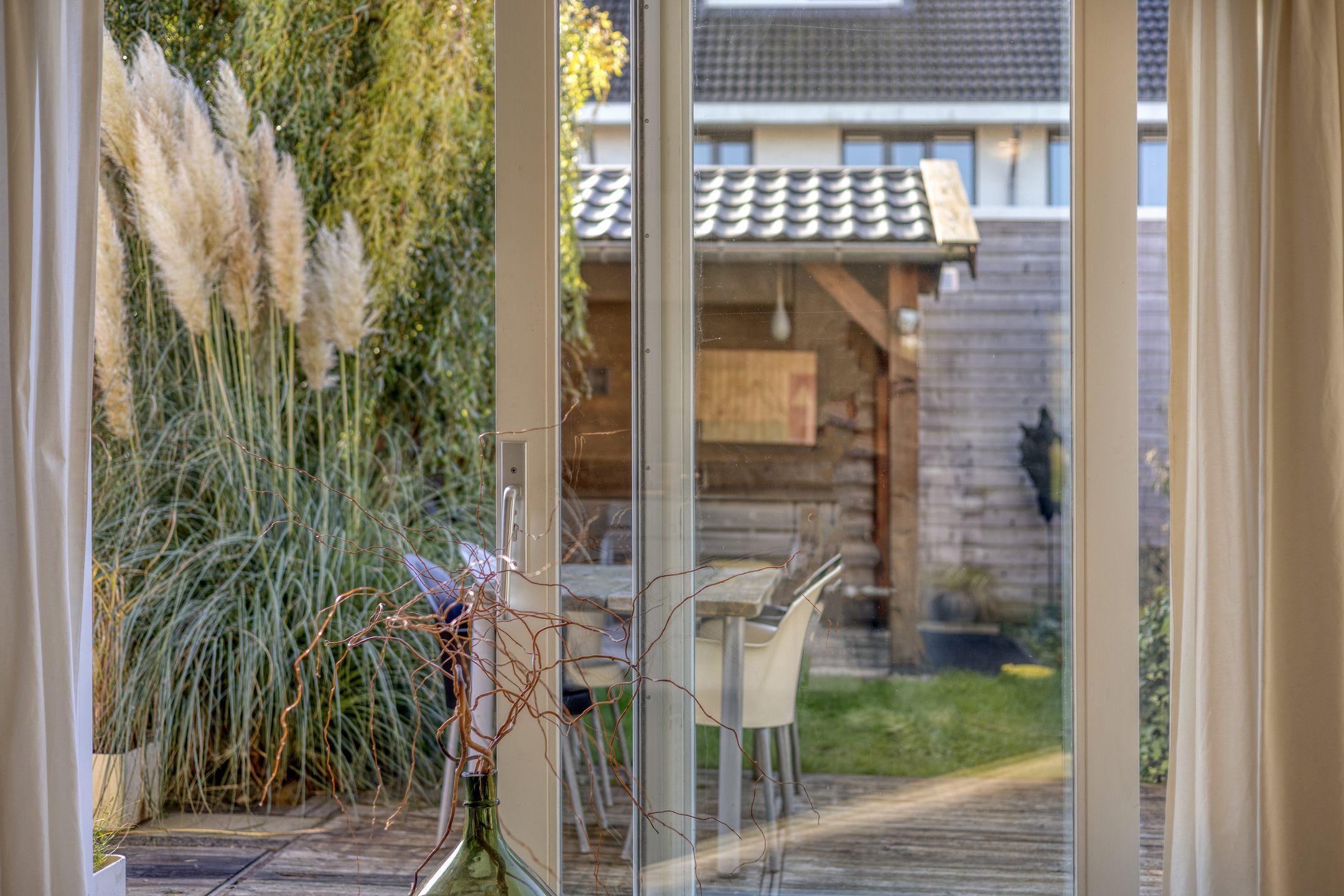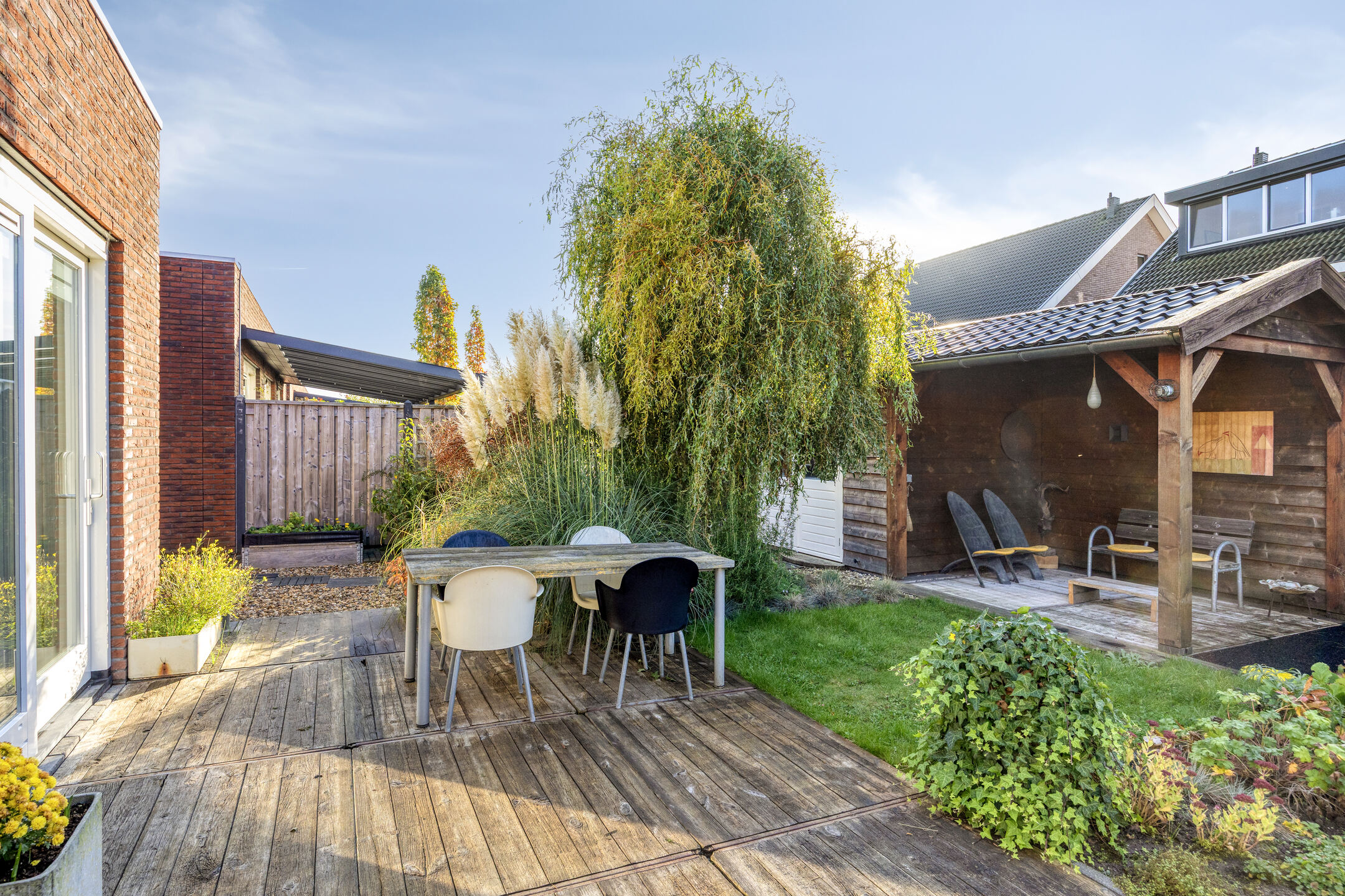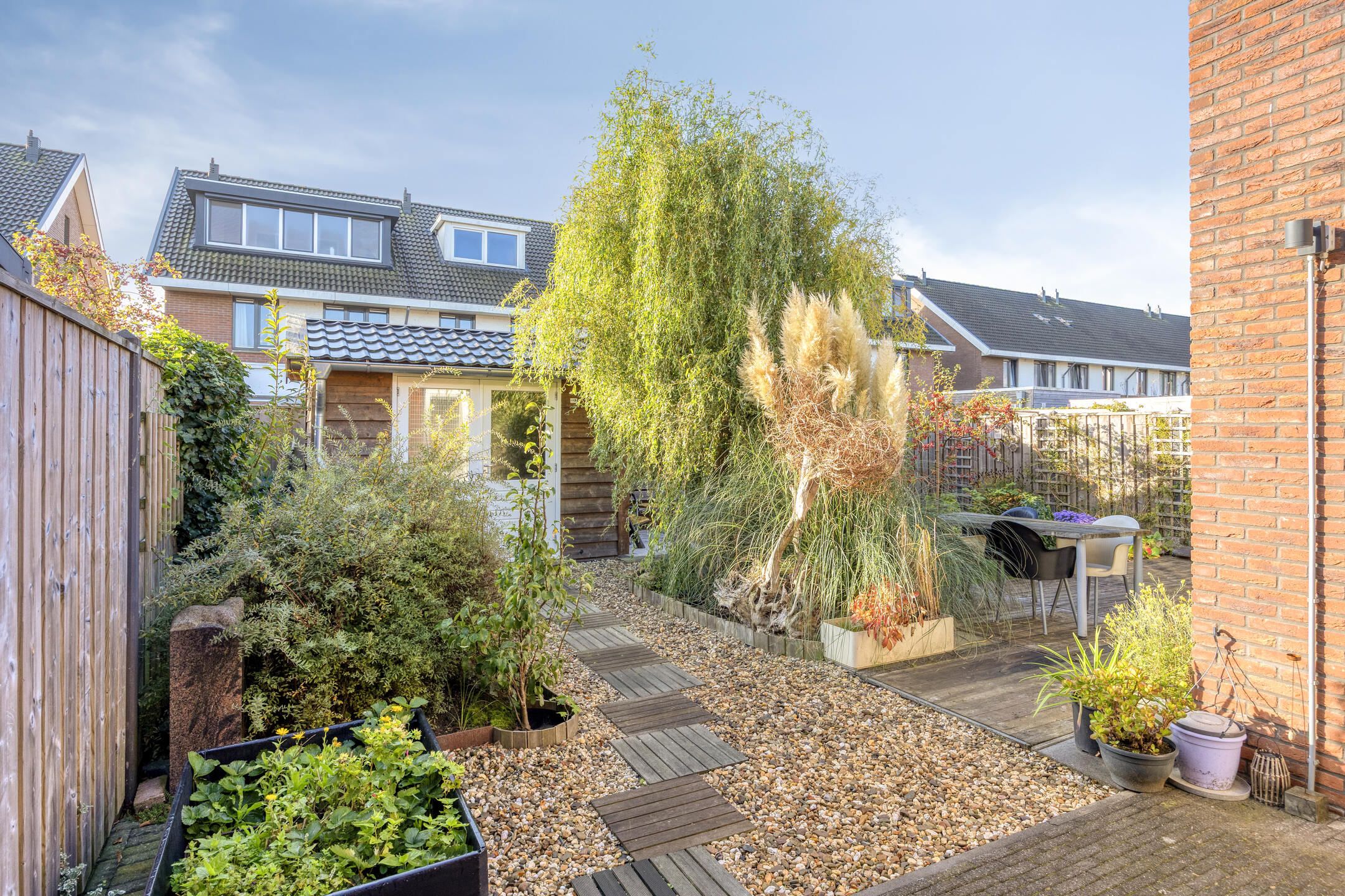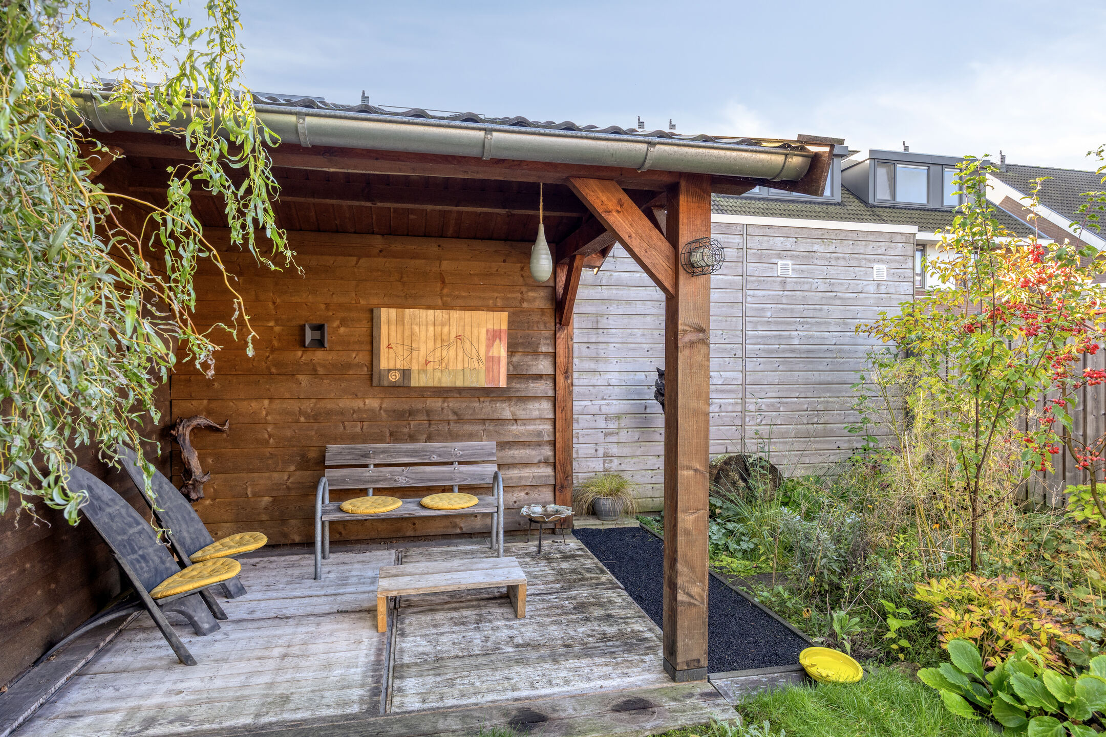 Stap de royale, op het zuiden gelegen tuin in en geniet! Direct aan de woning ligt een houten terras met ruimte voor een grote eettafel, de plek om lekker te dineren met een gezelschap tijdens de zonnige dagen. De tuin is verder afwisselend ingericht met beplanting, bestrating, een grindpad en gras. Achter in de tuin bevindt zich een ruime berging met overkapping, waar je heerlijk kunt zitten en genieten van de ondergaande zon. Vanuit de tuin heb je tevens toegang tot de garage en een achterom.