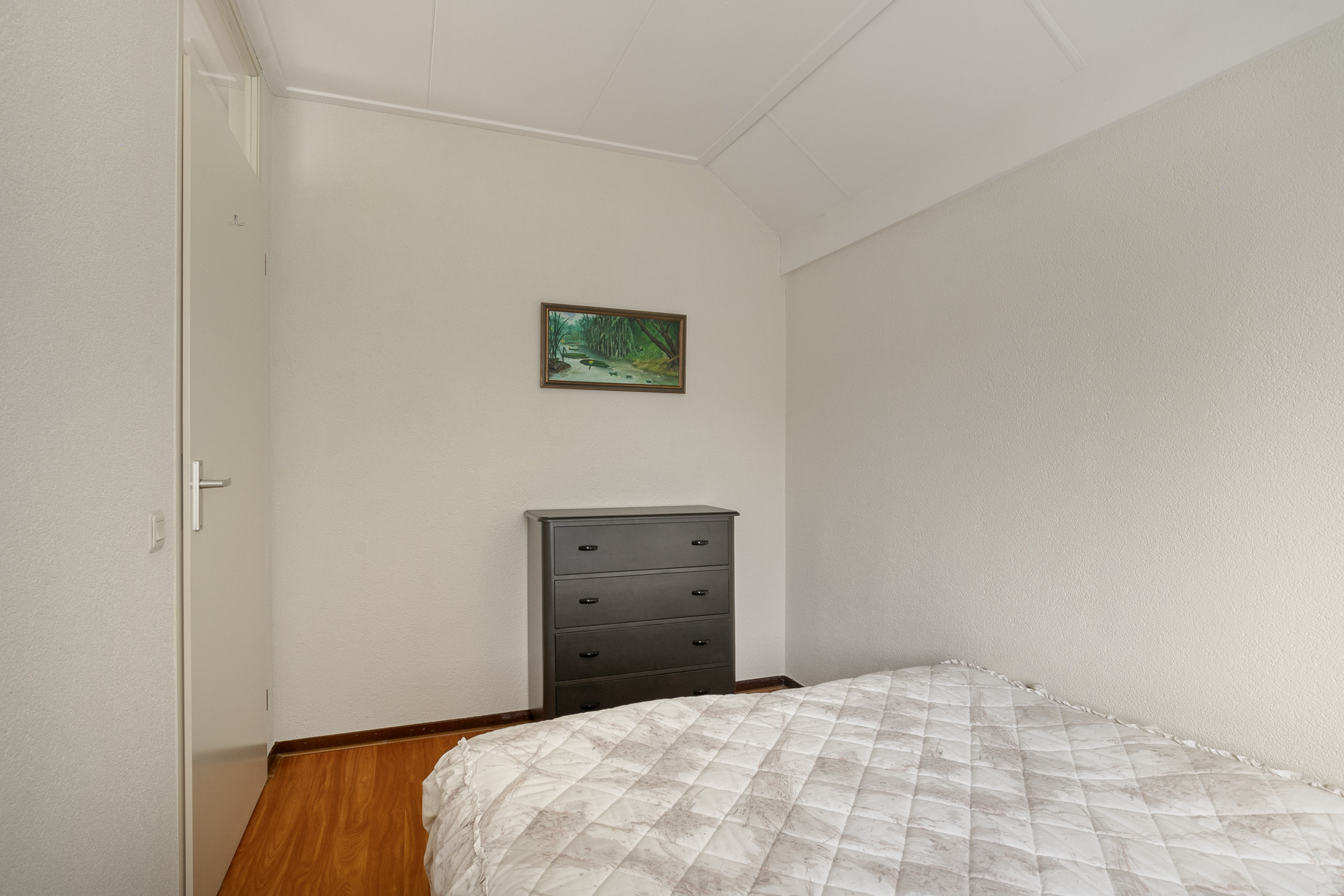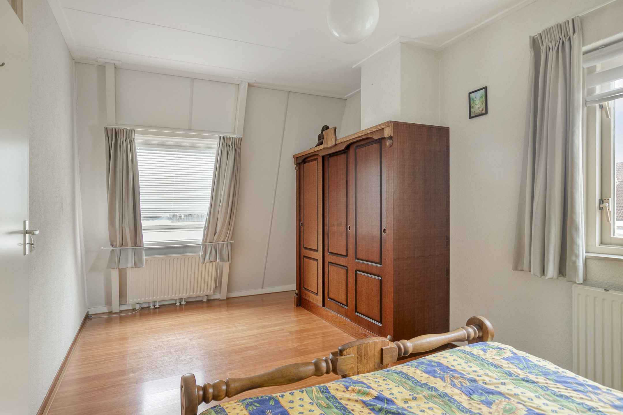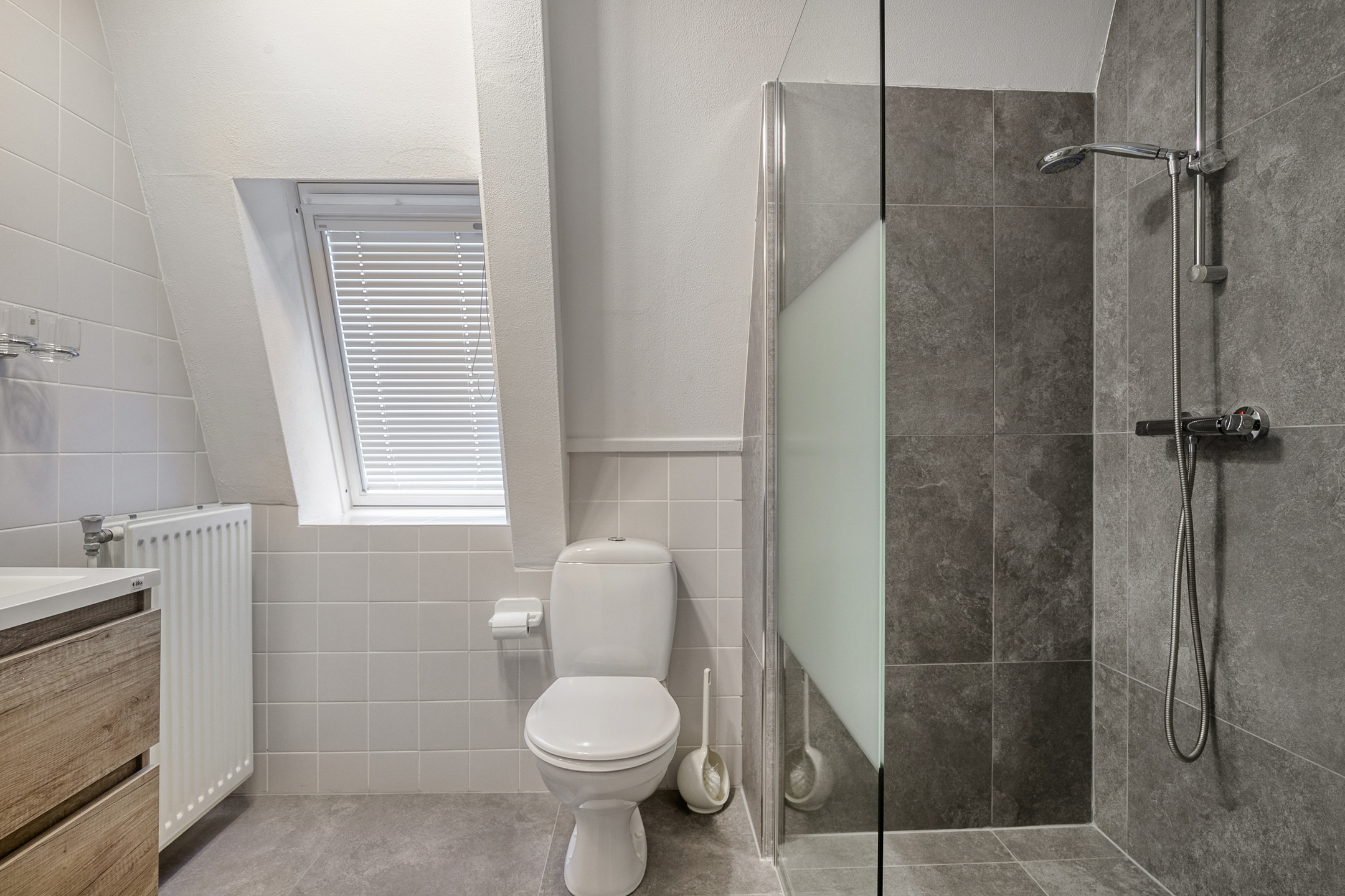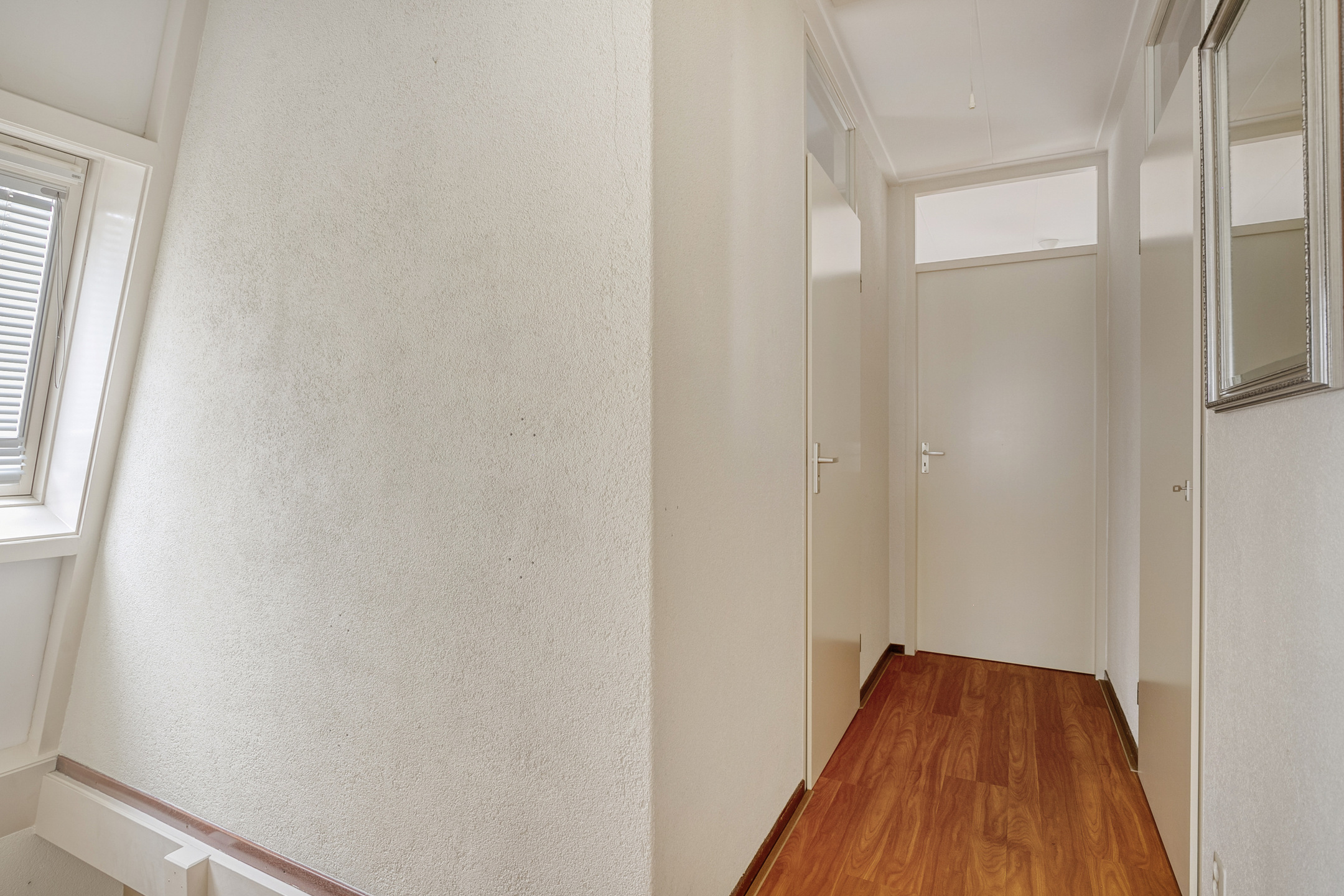 Vanaf de overloop bereik je de drie slaapkamers, een royale berging en de badkamer. De grootste slaapkamer bevindt zich aan de voorzijde en is over de volle breedte van de woning gelegen. Dankzij het gevelraam en het grote dakraam is de kamer lekker licht. De andere twee kamers bevinden zich aan de achterzijde. Ook deze verdieping is volledig voorzien van een laminaatvloer en spachtelputz wandafwerking. Het raam aan de voorzijde en de dakramen zijn voorzien van zonnescreens. De volledig betegelde badkamer biedt een wastafel met meubel, planchet en spiegel, een tweede toilet en een vernieuwde douchehoek met inloopdouche met een glazen wand. In de berging tref je naast de c.v.-ketel nog lekker veel bergruimte. Extra kasten kan je hier gemakkelijk kwijt, zo houd je de kamers lekker opgeruimd!