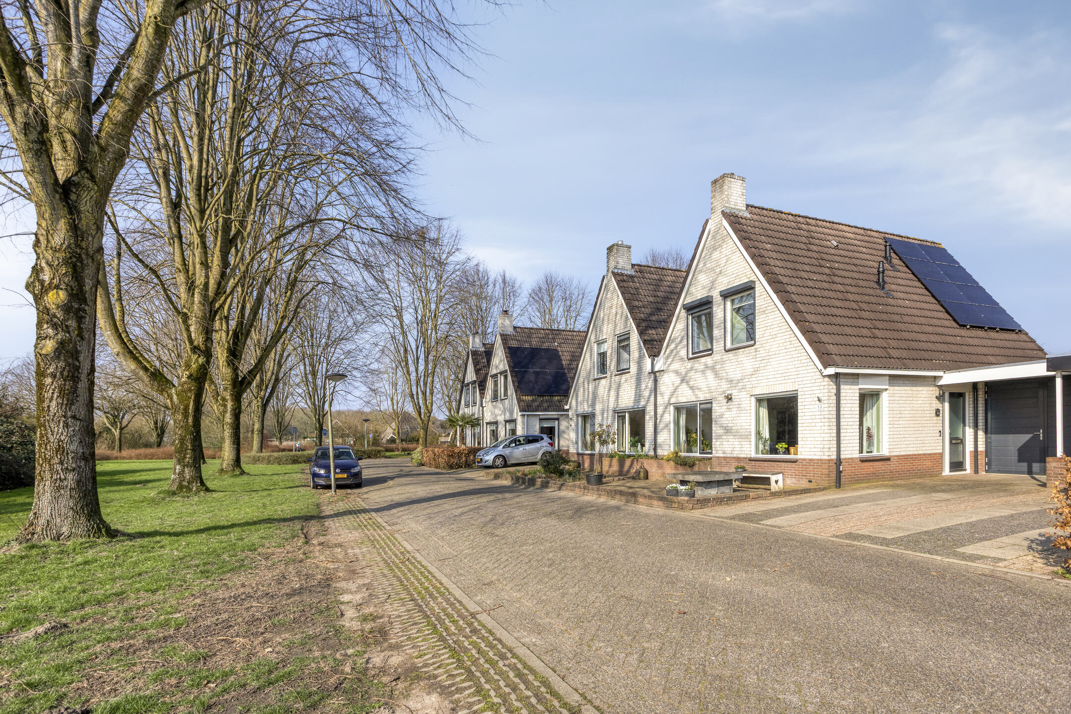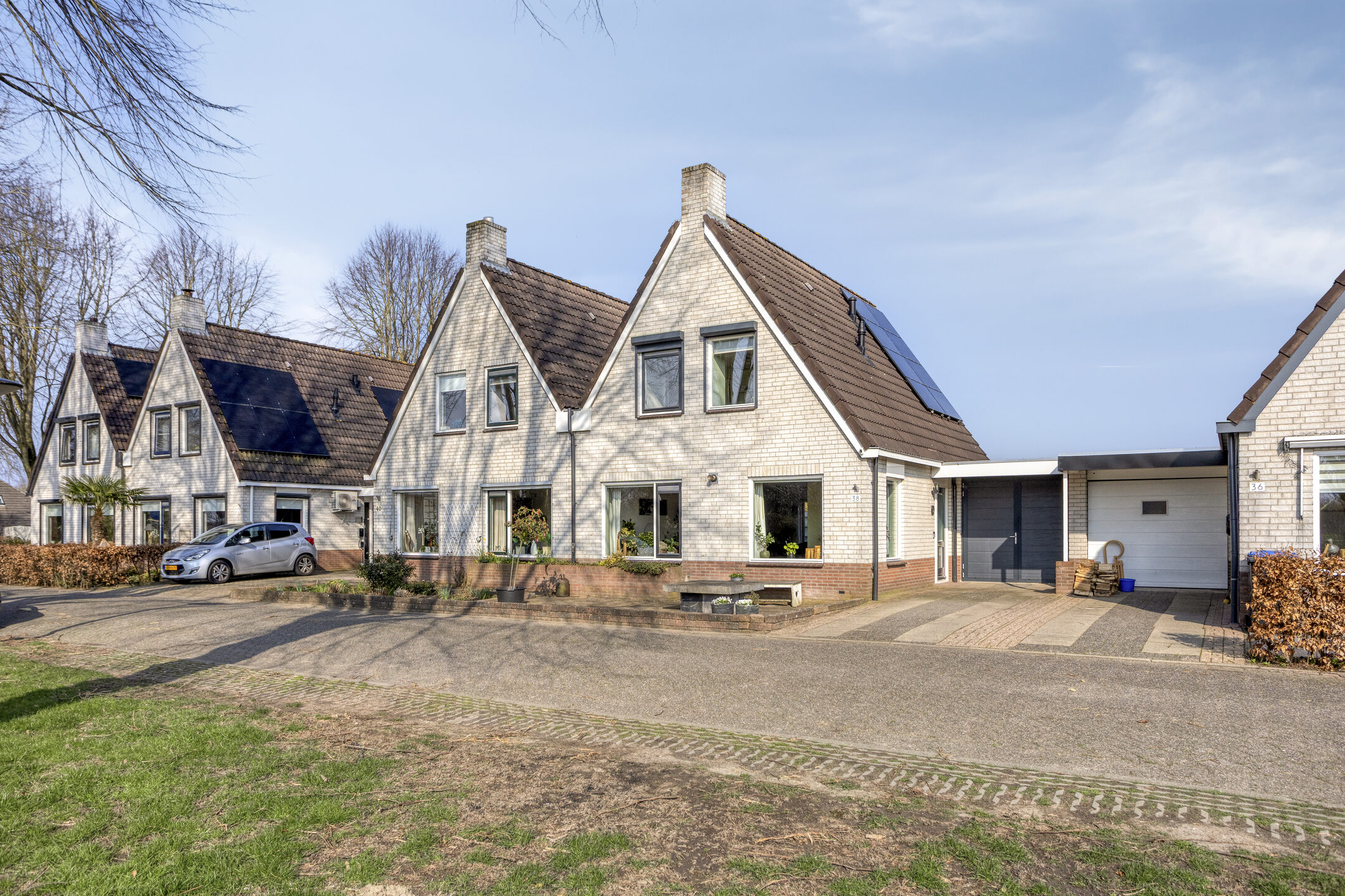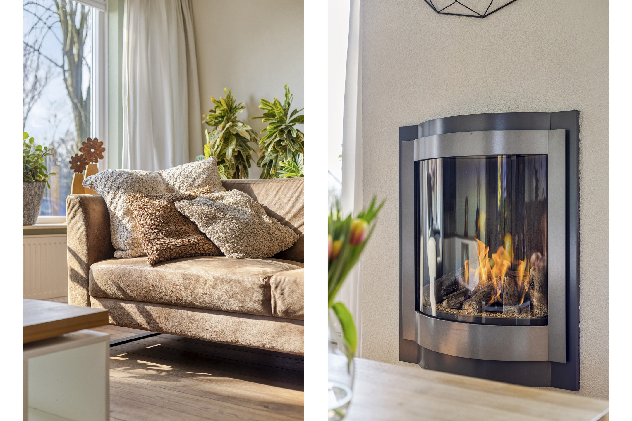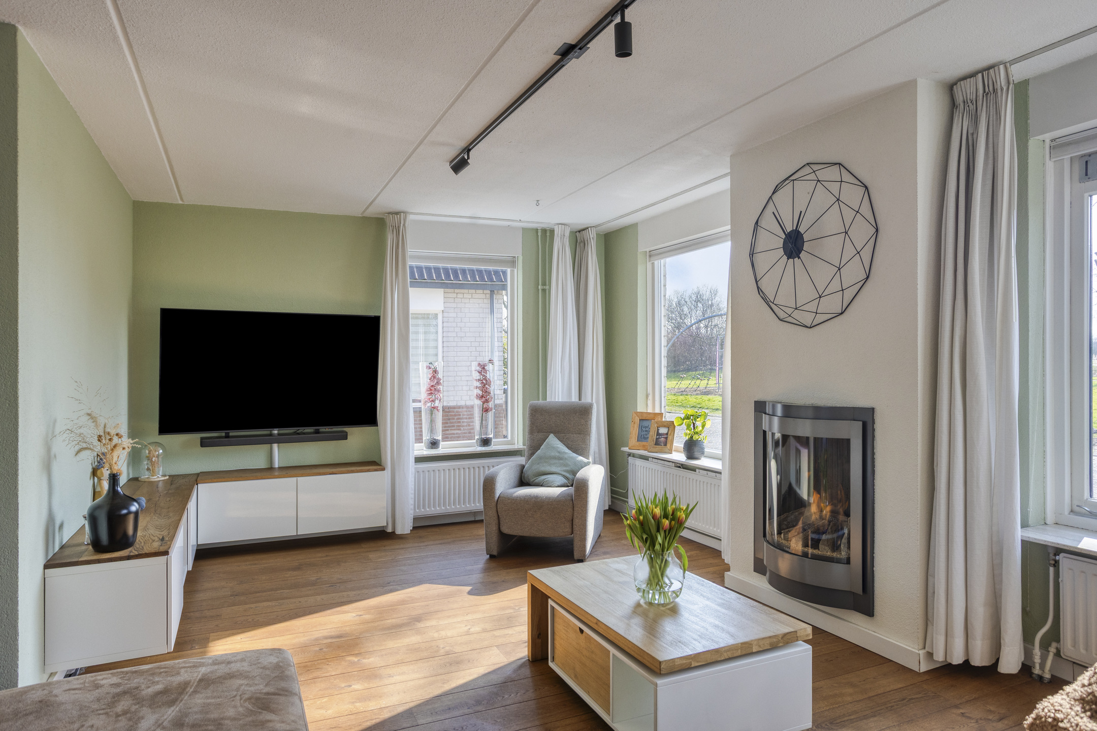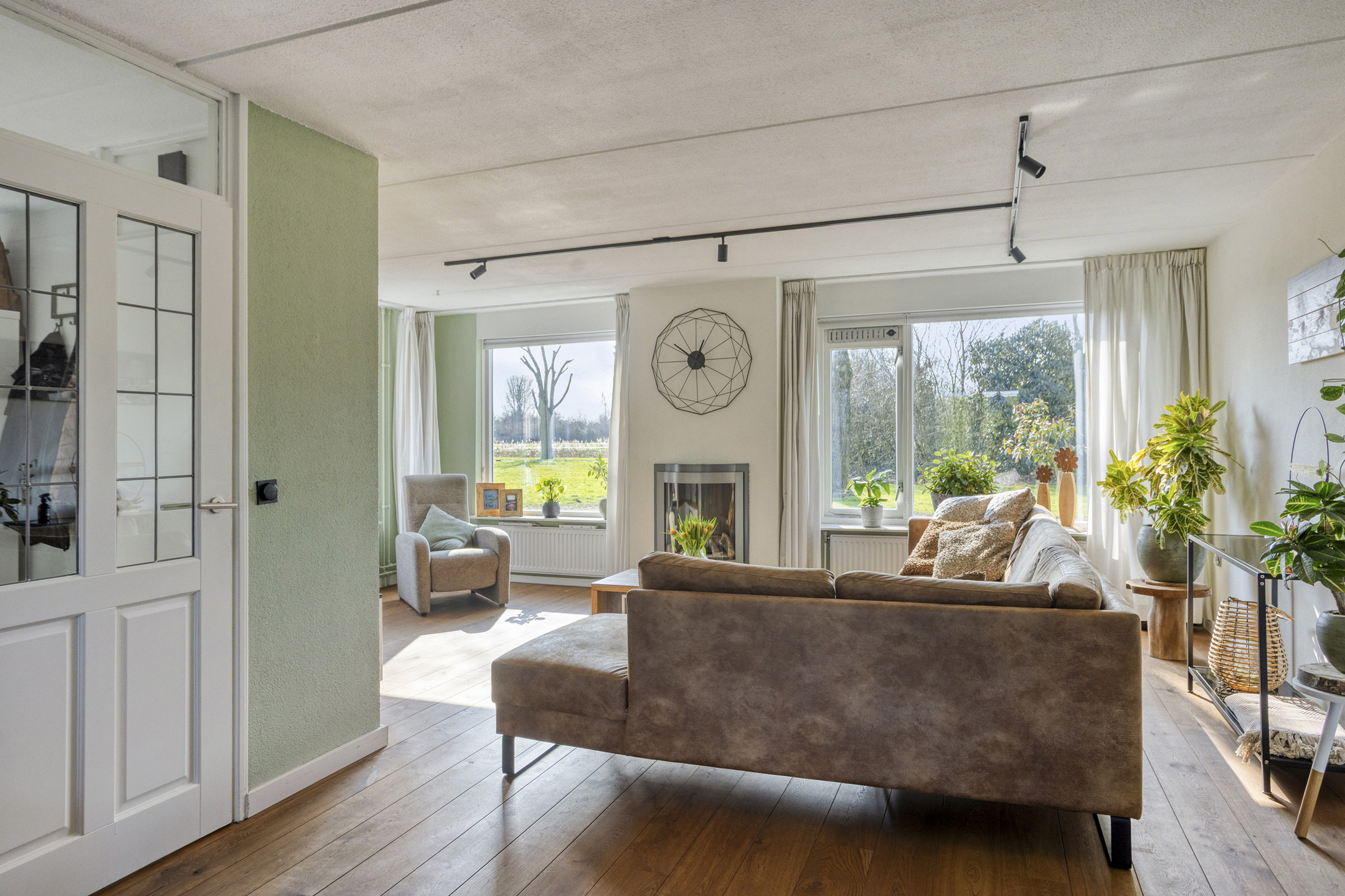 Parkeer je auto gemakkelijk op eigen terrein en stap via de overdekte entree de ruime hal binnen. Hier tref je de meterkast (3-fase aansluiting, voorbereid voor een laadpaal en warmtepomp), de trapopgang, toegang tot de woonkamer en de toiletruimte. De toiletruimte is volledig betegeld met antracietkleurige tegels, een zwevend toilet en een fonteintje. Je betreedt de ruime woonkamer in het midden van de woning, met aan de straatzijde de zithoek. Wat direct opvalt is het vrije uitzicht: dankzij de grote ramen en de ligging aan openbaar groen zit je hier heerlijk rustig en vrij! De houten vloer in combinatie met de gashaard zorgt voor een warme en sfeervolle uitstraling. Aan de tuinzijde bevindt zich de eethoek, waar met gemak een riante eettafel geplaatst kan worden. Dankzij de openslaande deuren sta je hier in directe verbinding met de tuin. Aansluitend tref je de open keuken, opgesteld in een U-vorm, wat zorgt voor veel werkruimte. De bar maakt het geheel extra gezellig: zo kunnen vrienden en familie aansluiten bij het koken. De aanwezige inbouwapparatuur betreft een vaatwasser, een spoelbak met Quooker, een inductiekookplaat met afzuigschouw, een koelkast en een combimagnetron. Aansluitend tref je nog een fijne extra van deze woning: de bijkeuken! Dankzij de grote vaste kast is hier volop bergruimte aanwezig en je treft hier ook de aansluiting voor de wasmachine. Vanuit de bijkeuken heb je toegang tot zowel de tuin als de garage. De garage is uitgerust met openslaande deuren naar de oprit, elektra en water.