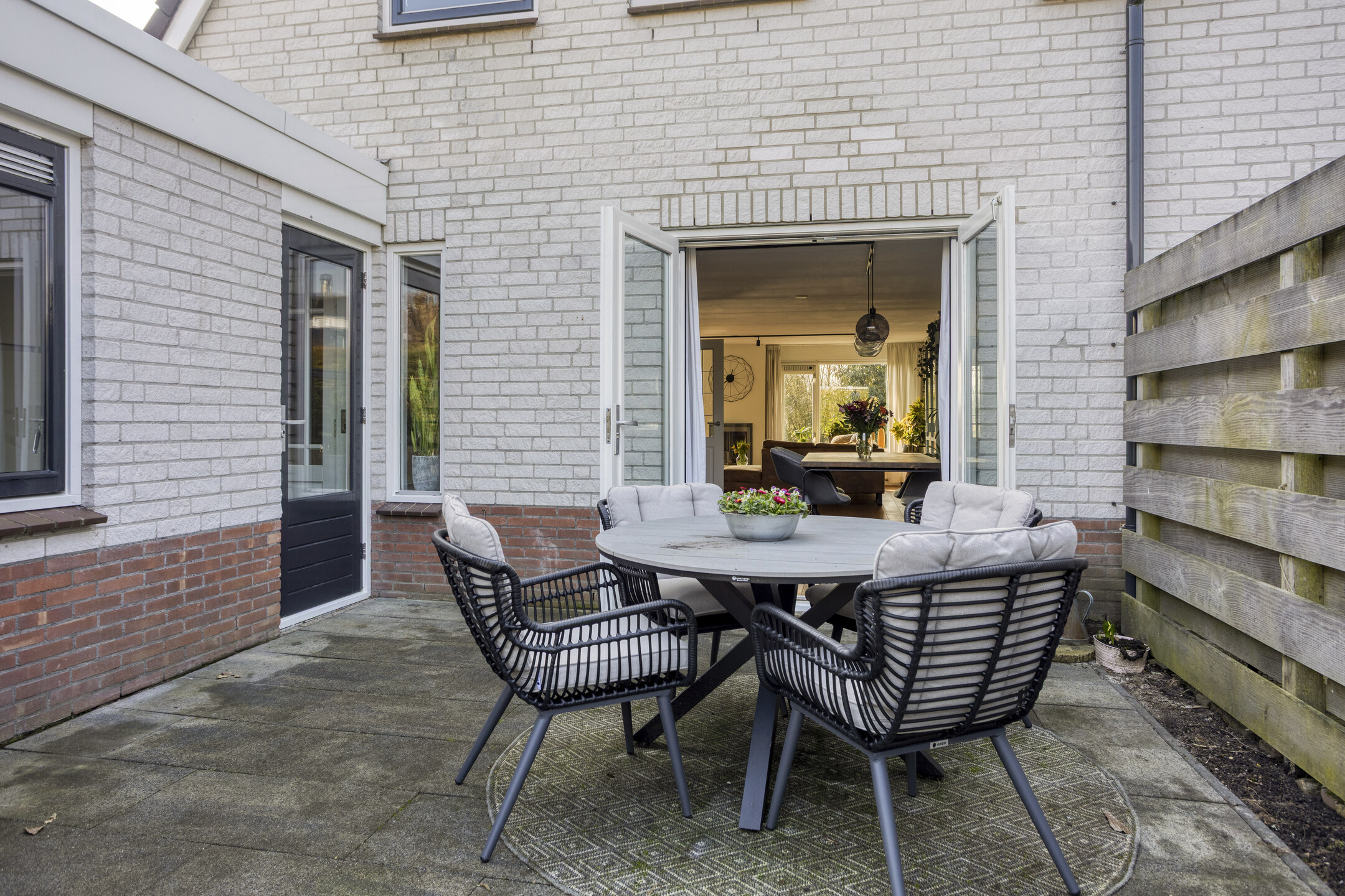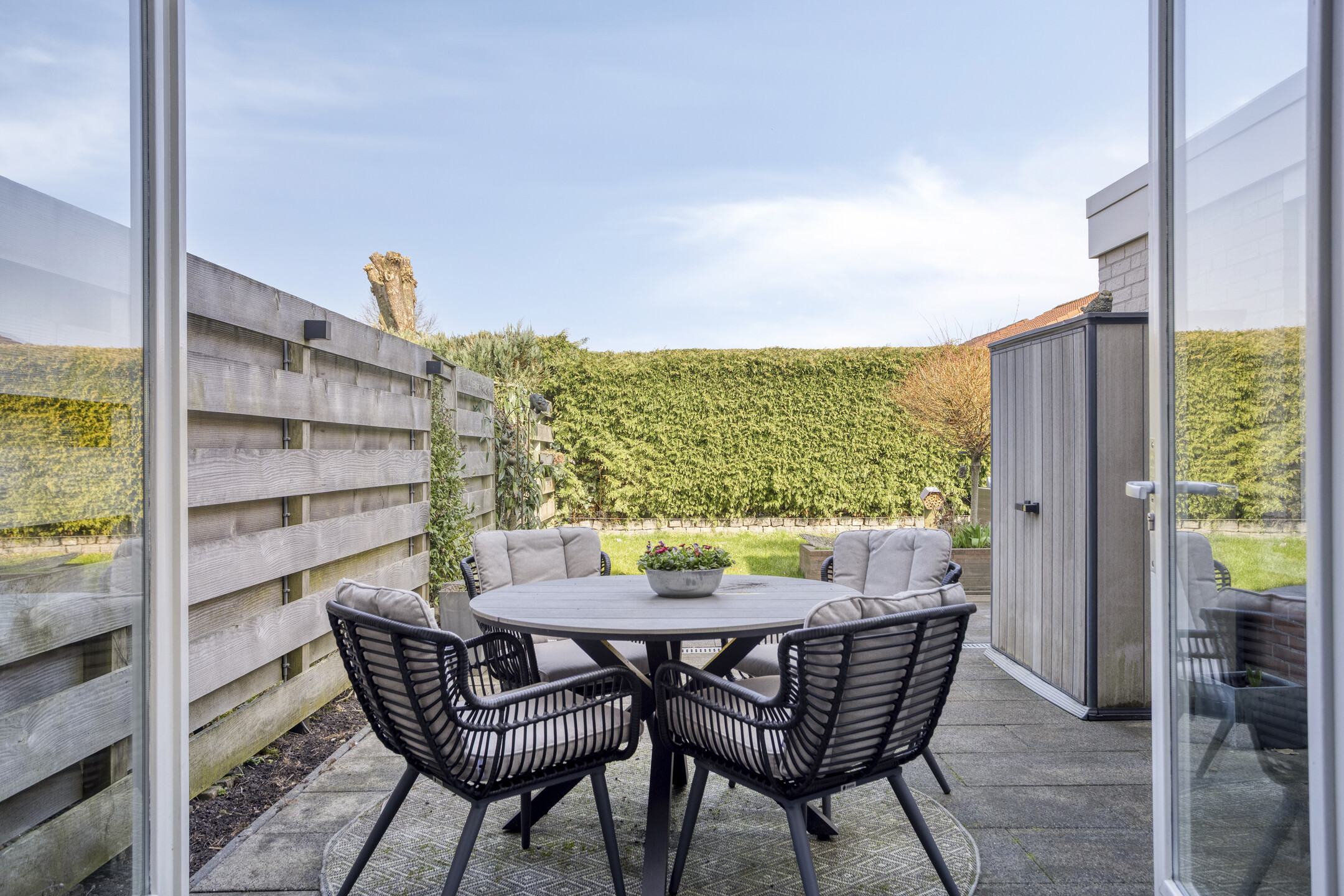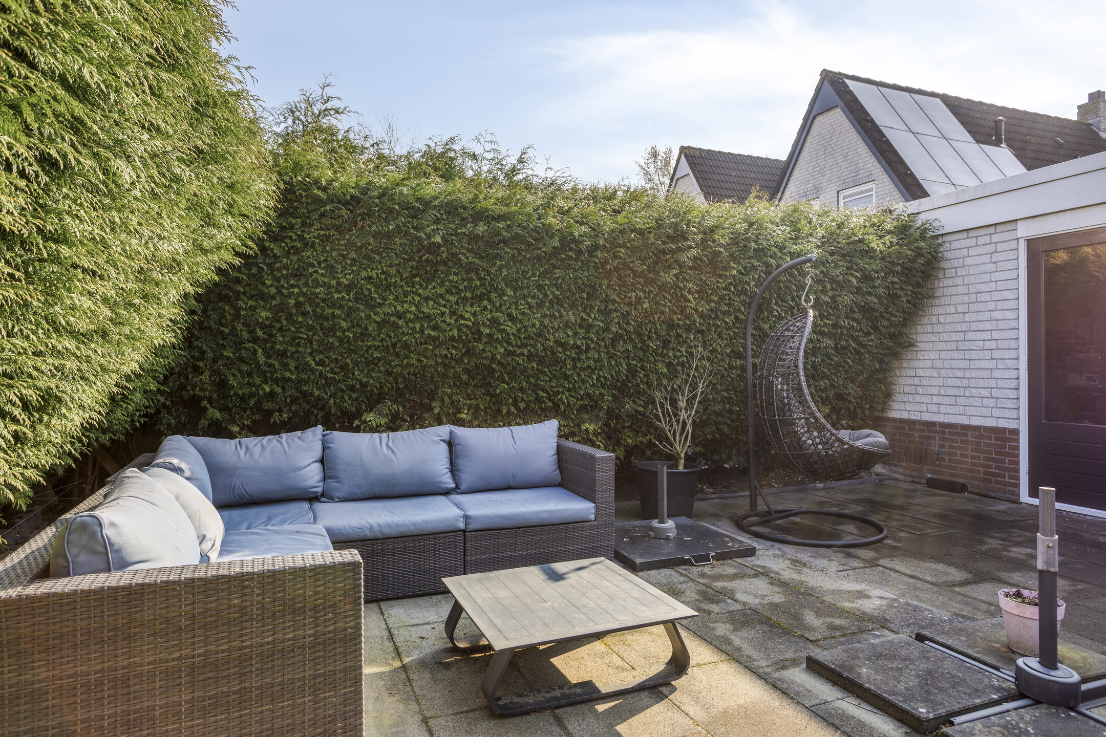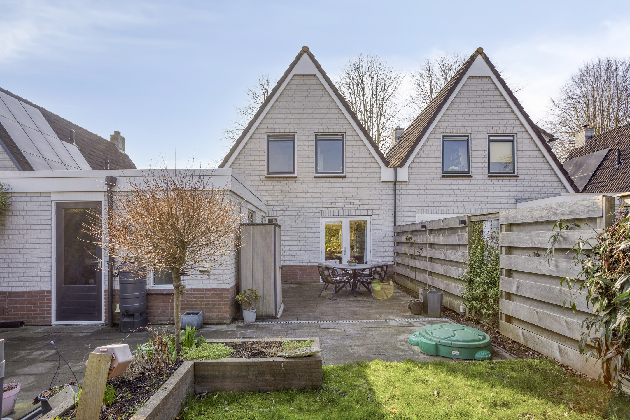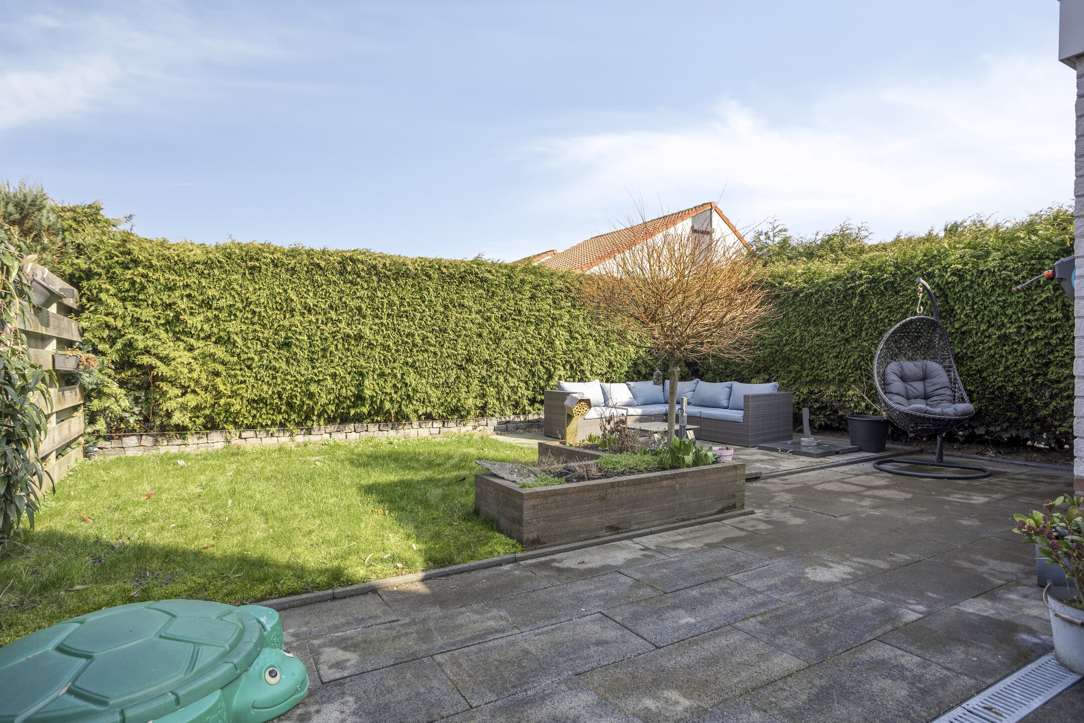 Stap de verzorgde, groene tuin in die net als de voorzijde vrij is gelegen! Aan de woningzijde bevindt zich een ruim terras waar je heerlijk kunt tafelen. De tuin is verder aangelegd met vaste beplanting, een groene erfafscheiding en gras. Aangrenzend aan de garage is nog een berging aanwezig: ideaal voor het opslaan van tuingereedschap.