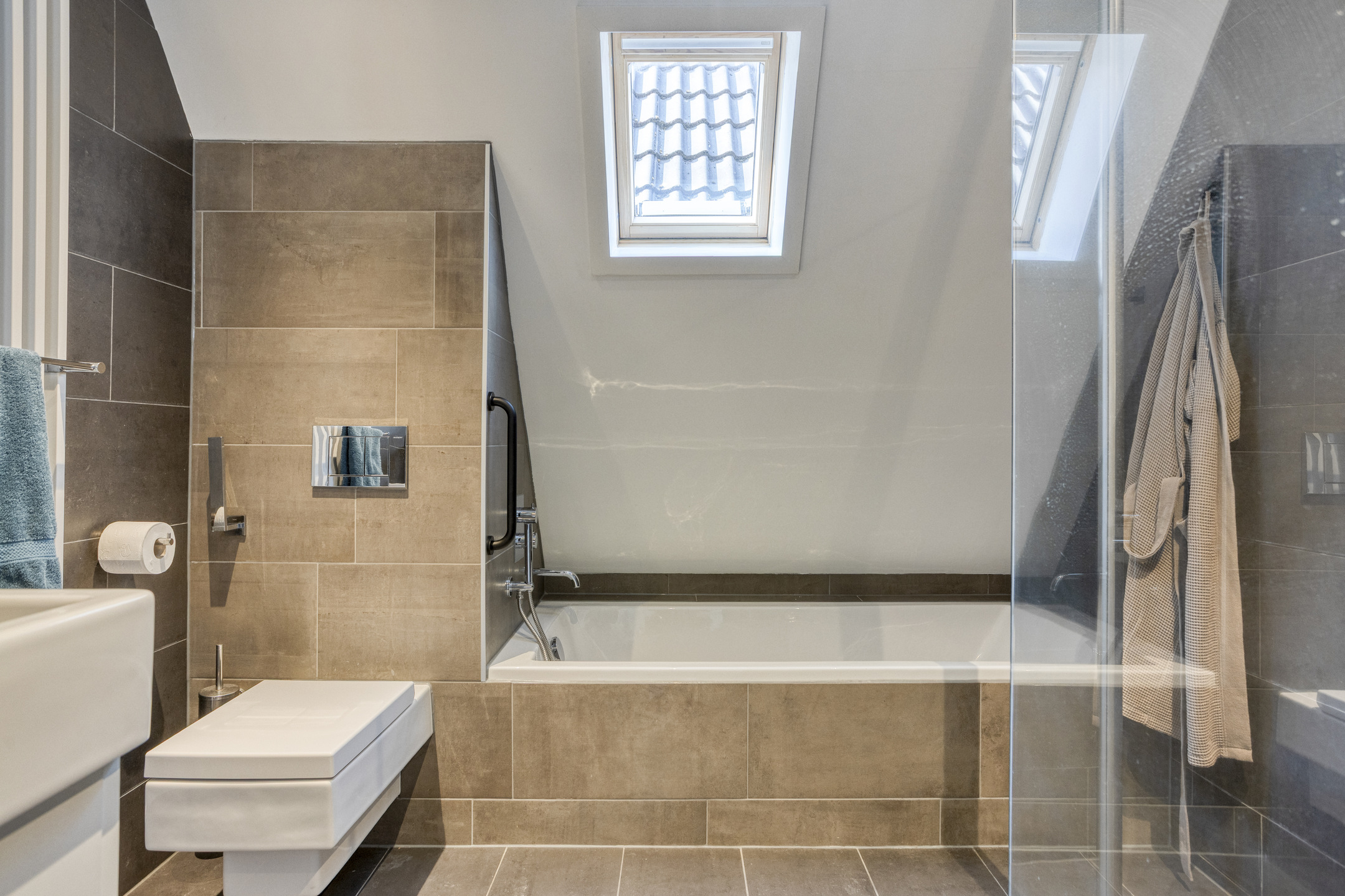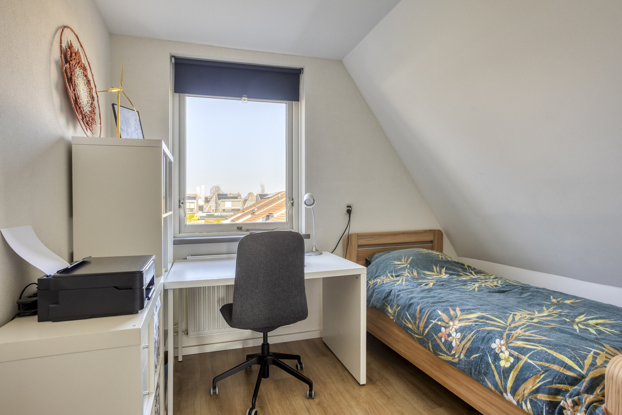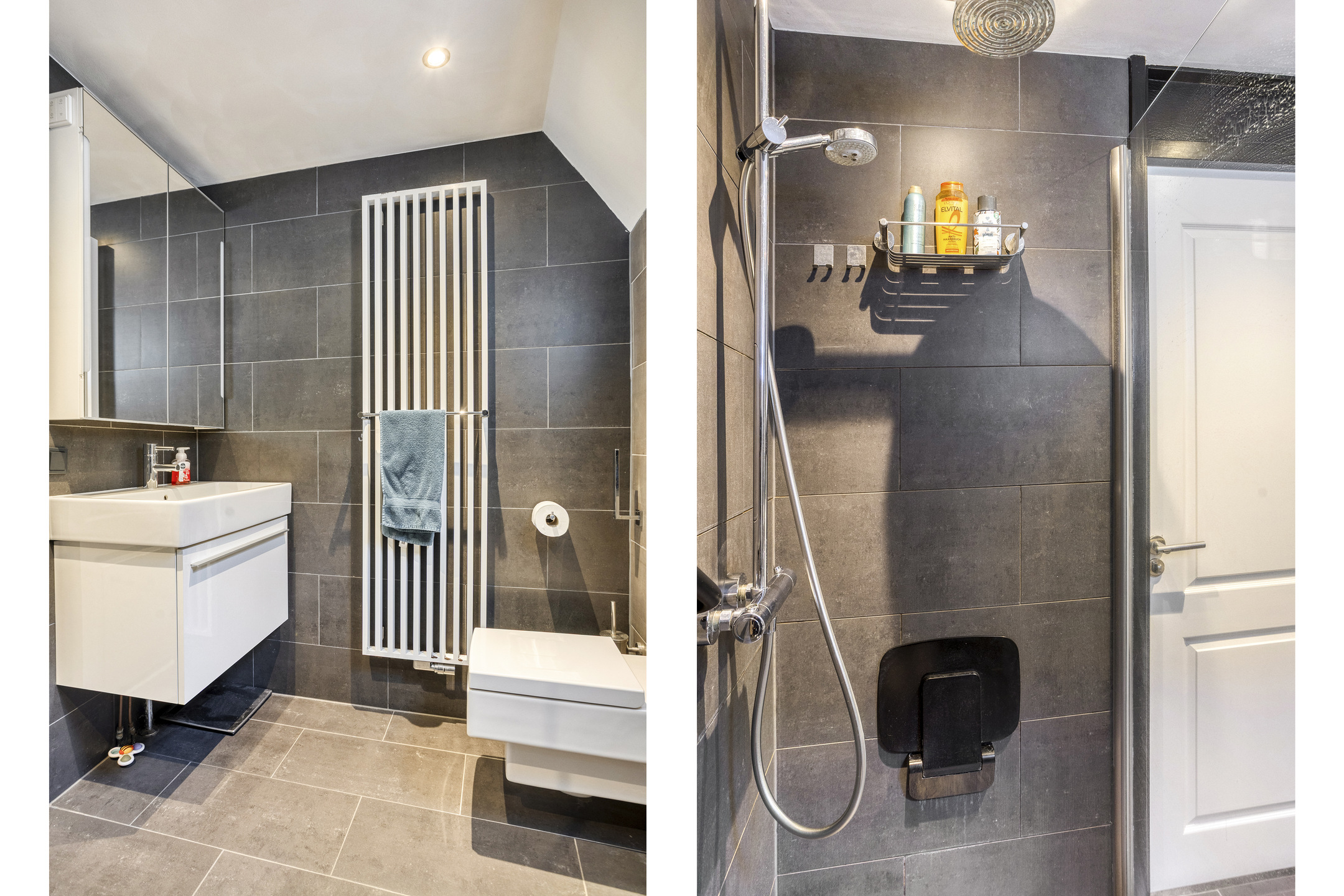 Vanaf de overloop heb je toegang tot 3 slaapkamers, de badkamer, de vlizotrap en de technische ruimte. Dankzij zijn maatvoering kun je extra spullen zoals de stofzuiger of voorraad opslaan. In deze ruimte bevindt zich ook de cv-installatie (2024). De slaapkamers zijn stuk voor stuk ruim en voorzien van vernieuwde binnendeuren, rolluiken en een doorgelegde laminaatvloer, wat zorgt voor een rustige uitstraling. De badkamer is in 2024 uitgebreid en gerenoveerd. Er is een ligbad geplaatst en rondom opnieuw betegeld met antracietkleurige tegels. Verder is de badkamer voorzien van een inloopdouche met regen- en handdouche inclusief inklapbare stoel, een zwevend toilet, een wastafelmeubel en een designradiator.