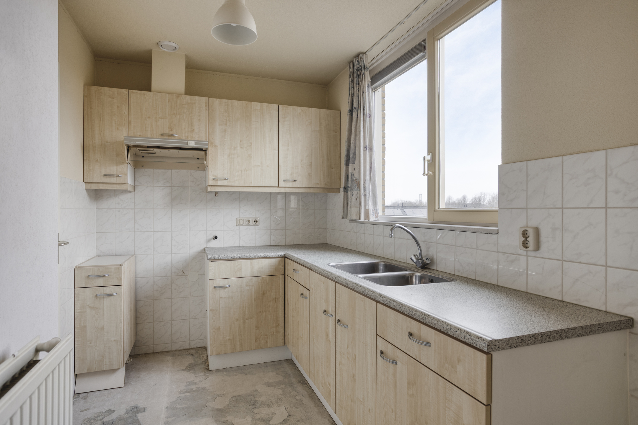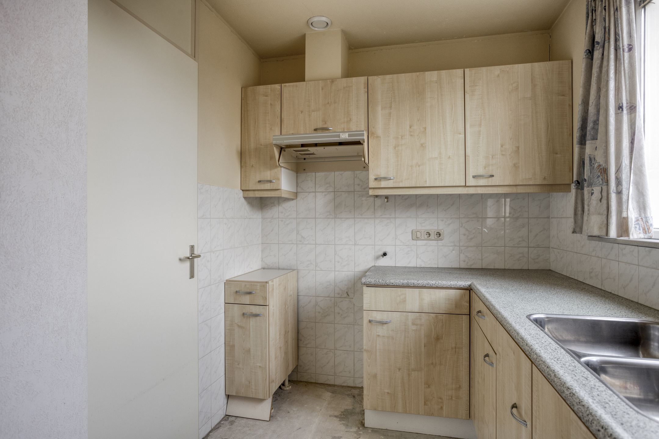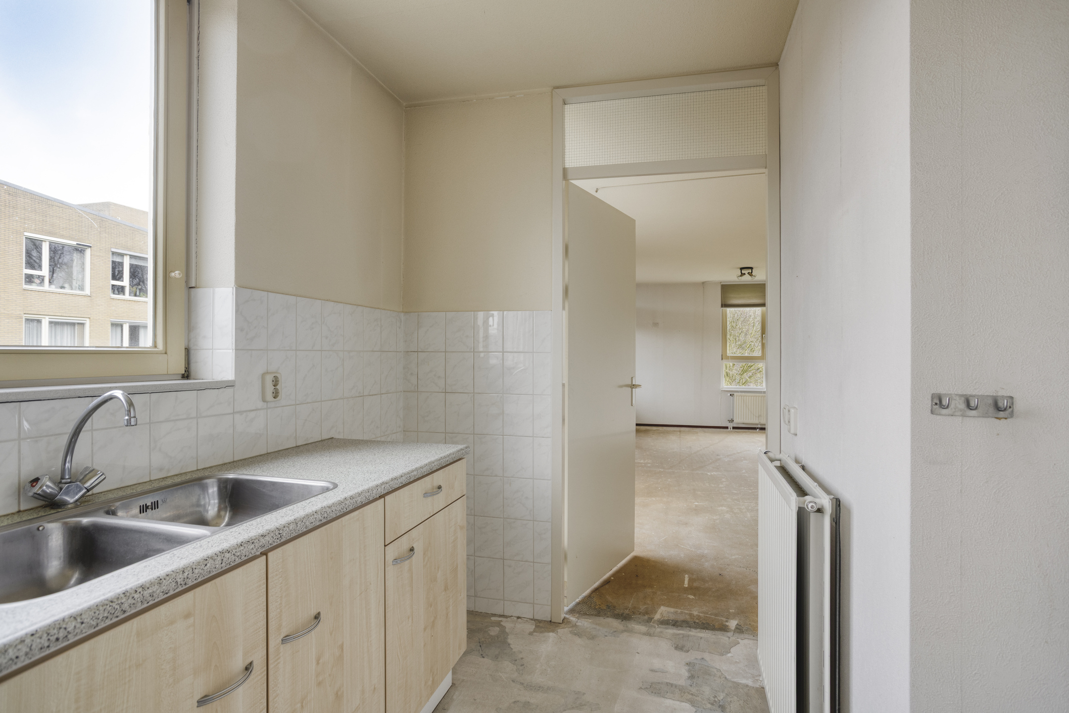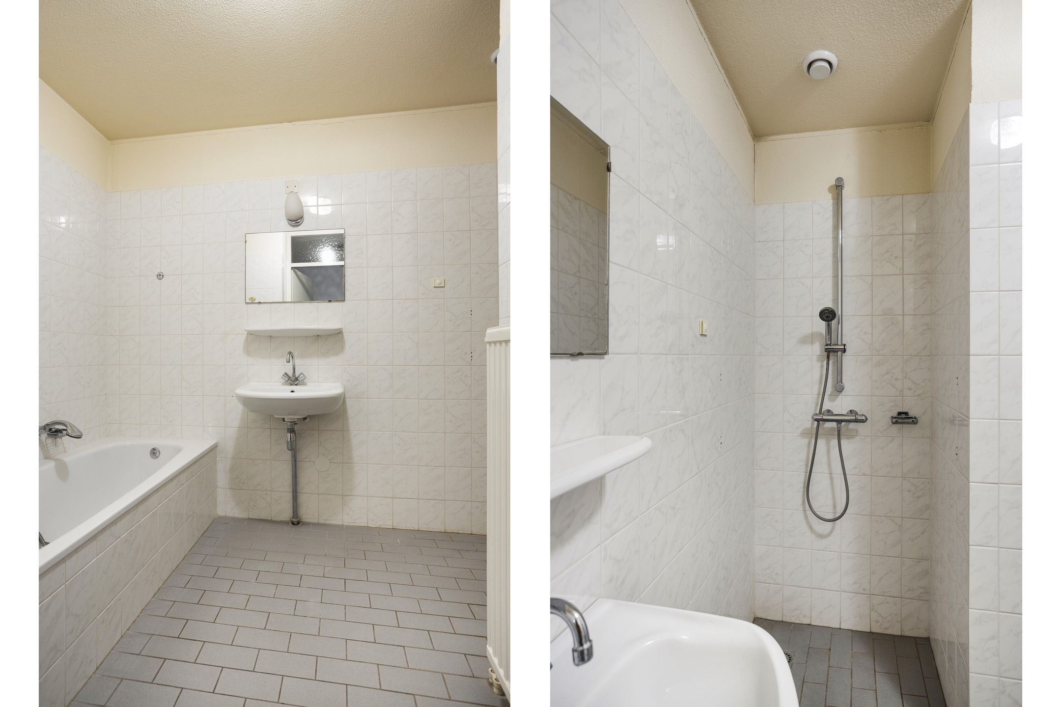Binnenkomst in de hal met toegang tot de diverse vertrekken. De woonkamer beschikt over meerdere raampartijen, waardoor u hier een mooi uitzicht heeft over de omgeving. Aansluitend bevindt zich de afsluitbare keuken, die in een hoek is opgesteld en is voorzien van een afzuigkap. Aansluitend aan de keuken bevindt zich de bijkeuken, waar u de opstelling voor de cv-installatie, de mv-unit en de aansluitingen voor de was apparatuur treft. Vanuit de woonkamer is het balkon bereikbaar, dat op het noorden is gelegen. Vanuit de hal zijn tevens de 2 slaapkamers bereikbaar, die alle ruimte bieden voor het plaatsen van een (tweepersoons)bed en een kledingkast. De badkamer is van vloer tot plafond betegeld in een rustige kleurstelling en is ingericht met een ligbad, een wastafel met planchet en spiegel, een radiator en een inloopdouche. Het separate toilet is in dezelfde stijl als de badkamer betegeld en is voorzien van een staand toilet en een fonteintje.