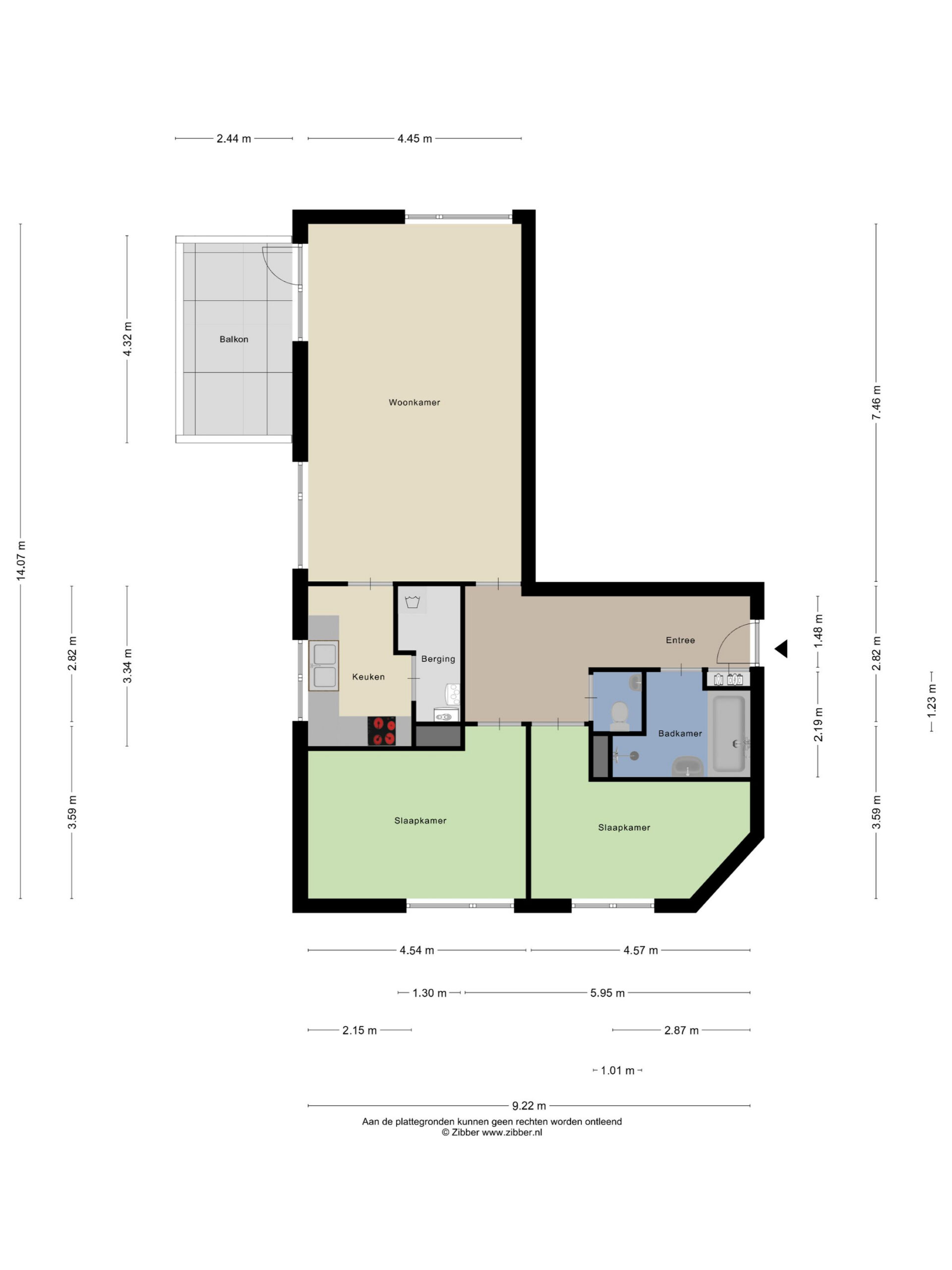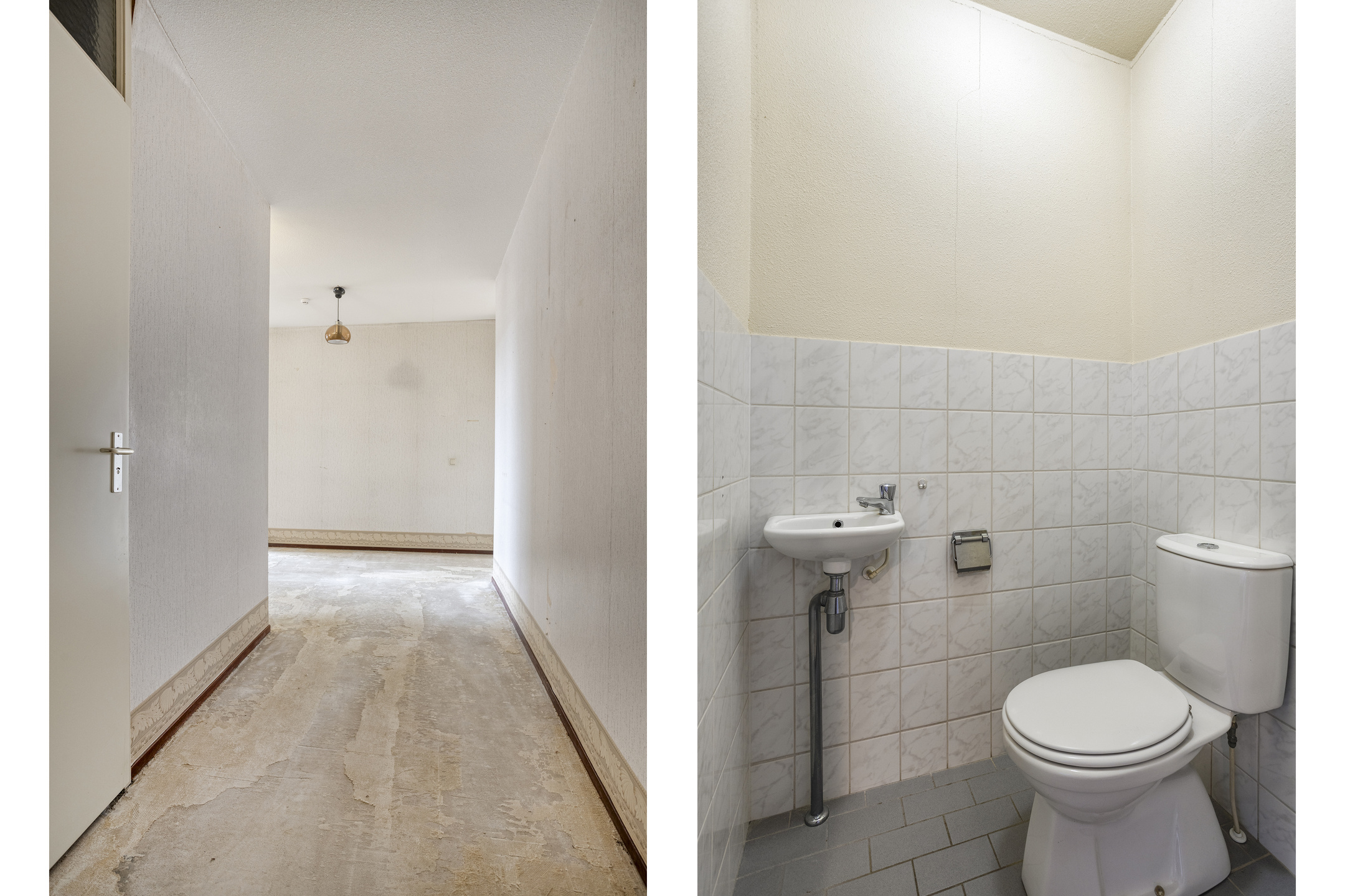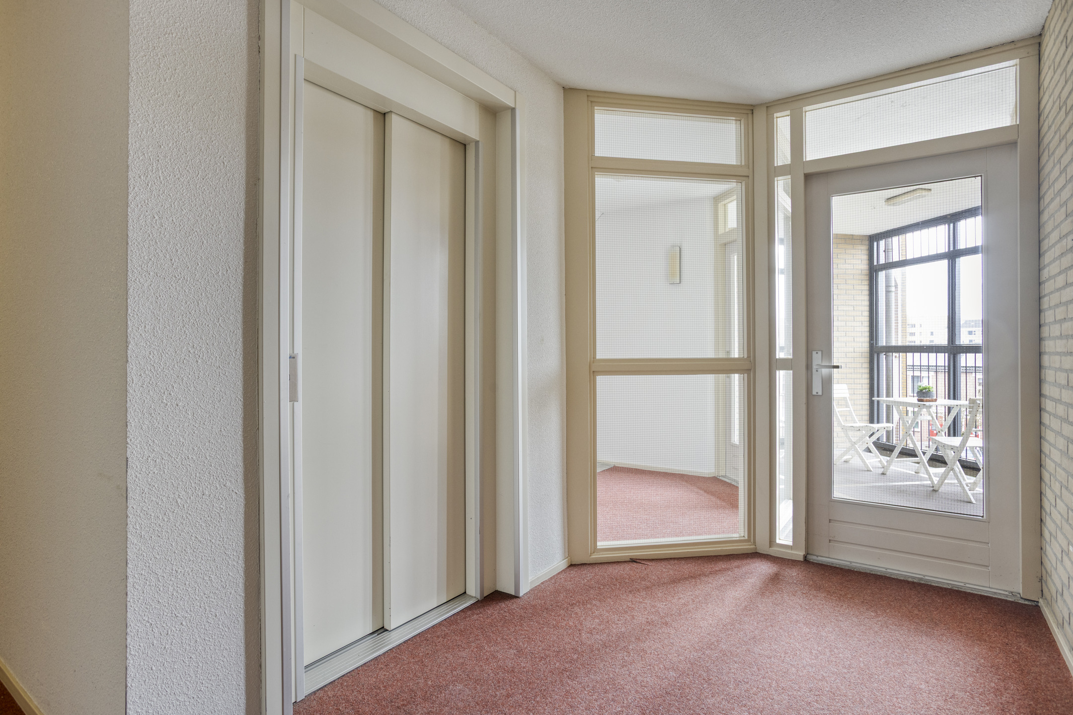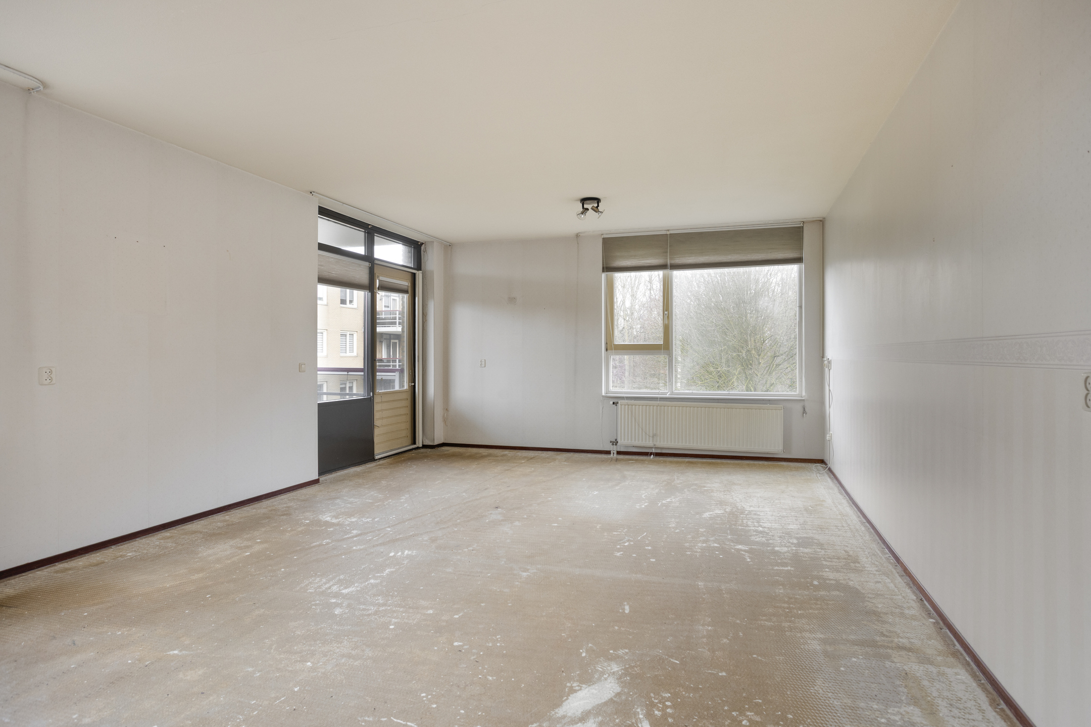 Binnenkomst in de hal met toegang tot de diverse vertrekken. De woonkamer beschikt over meerdere raampartijen, waardoor u hier een mooi uitzicht heeft over de omgeving. Aansluitend bevindt zich de afsluitbare keuken, die in een hoek is opgesteld en is voorzien van een afzuigkap. Aansluitend aan de keuken bevindt zich de bijkeuken, waar u de opstelling voor de cv-installatie, de mv-unit en de aansluitingen voor de was apparatuur treft. Vanuit de woonkamer is het balkon bereikbaar, dat op het noorden is gelegen. Vanuit de hal zijn tevens de 2 slaapkamers bereikbaar, die alle ruimte bieden voor het plaatsen van een (tweepersoons)bed en een kledingkast. De badkamer is van vloer tot plafond betegeld in een rustige kleurstelling en is ingericht met een ligbad, een wastafel met planchet en spiegel, een radiator en een inloopdouche. Het separate toilet is in dezelfde stijl als de badkamer betegeld en is voorzien van een staand toilet en een fonteintje.