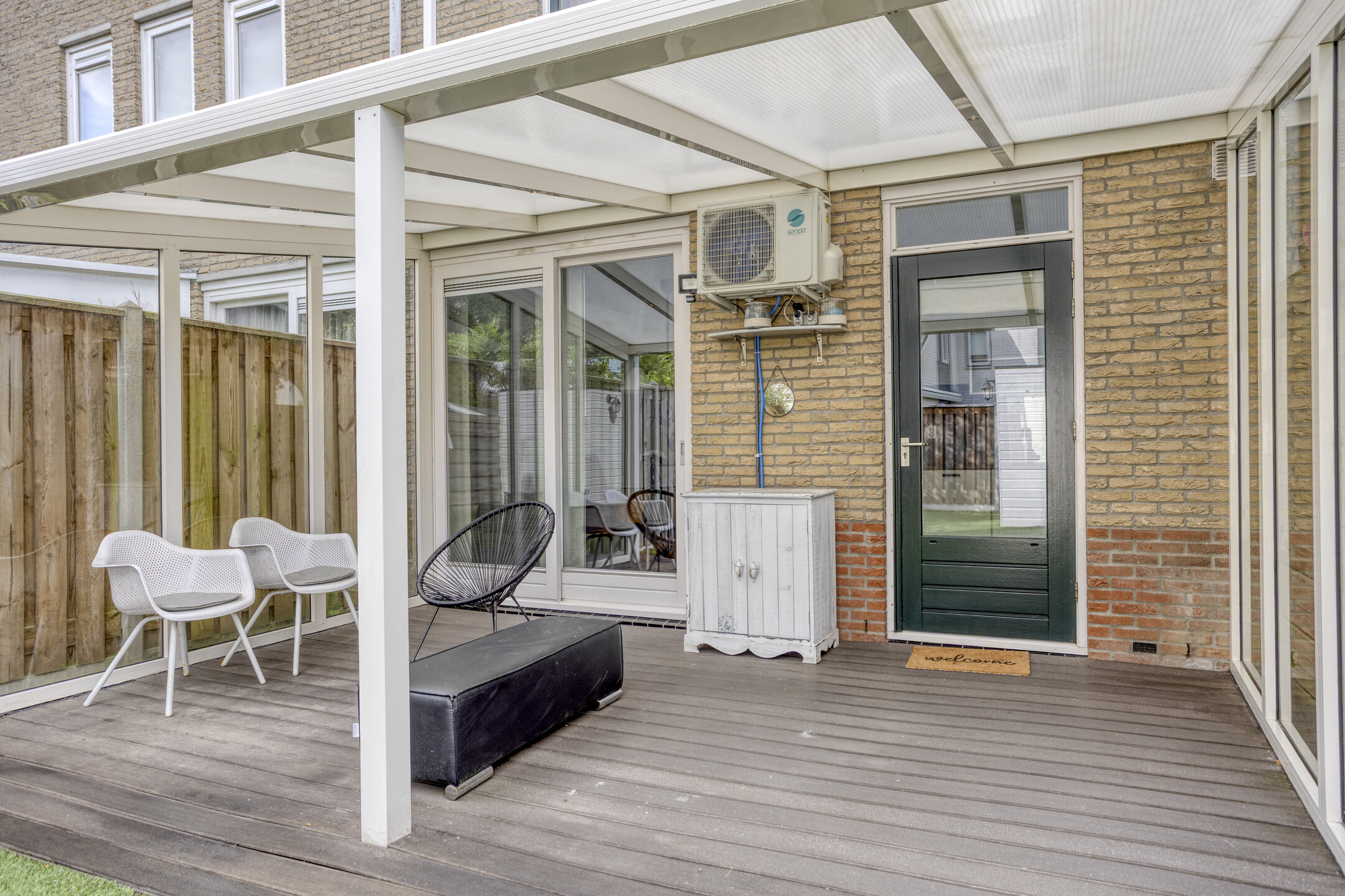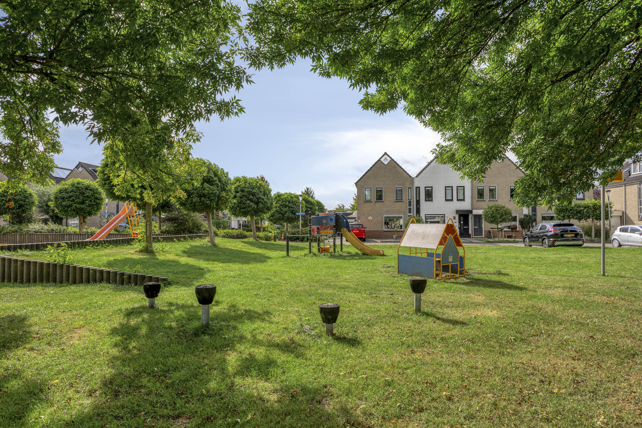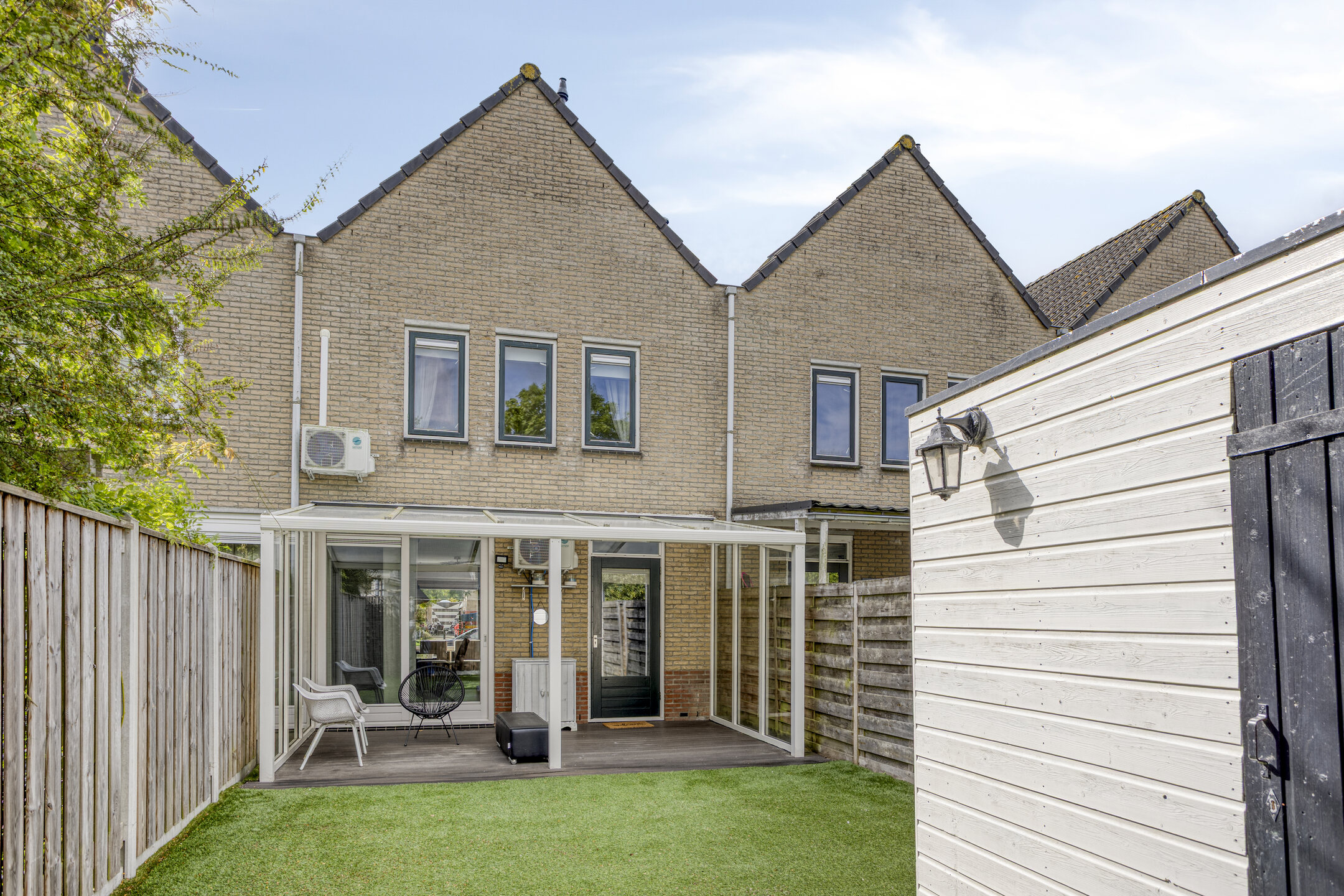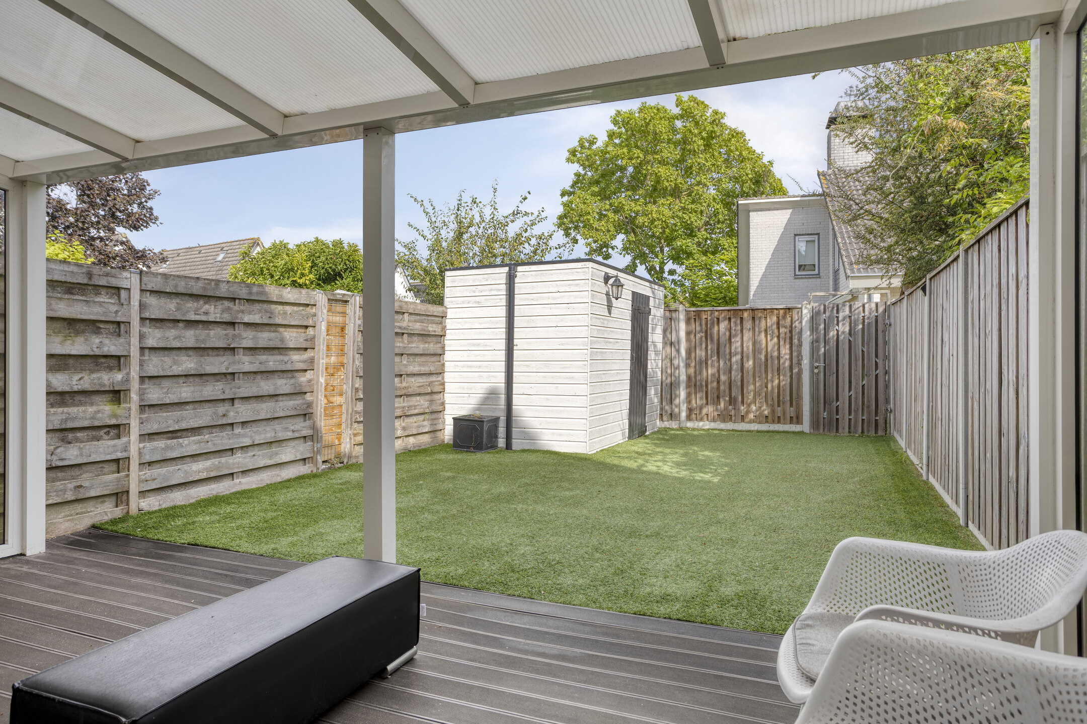In de onderhoudsarme voor- en achtertuin hoef je niet te werken, maar te genieten! Neem plaats onder de overkapping op de mindere dagen van het jaar of zet je stoel neer in het zonnetje in de voortuin. De voortuin is recent opnieuw aangelegd (2025) en heeft een verzorgd uiterlijk. De achtertuin is op het noorden gesitueerd, waardoor je het relatief koel kunt houden op de zomerse dagen. De achtertuin is verder voorzien van kunstgras, een afsluitbare achterom en een vrijstaande, houten berging die beschikt over elektra.