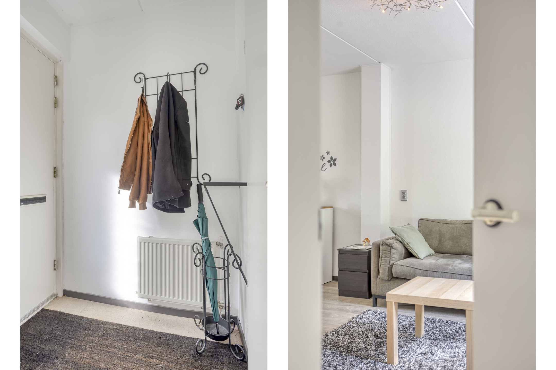 Binnenkomst in de hal met de garderobe, de meterkast en...