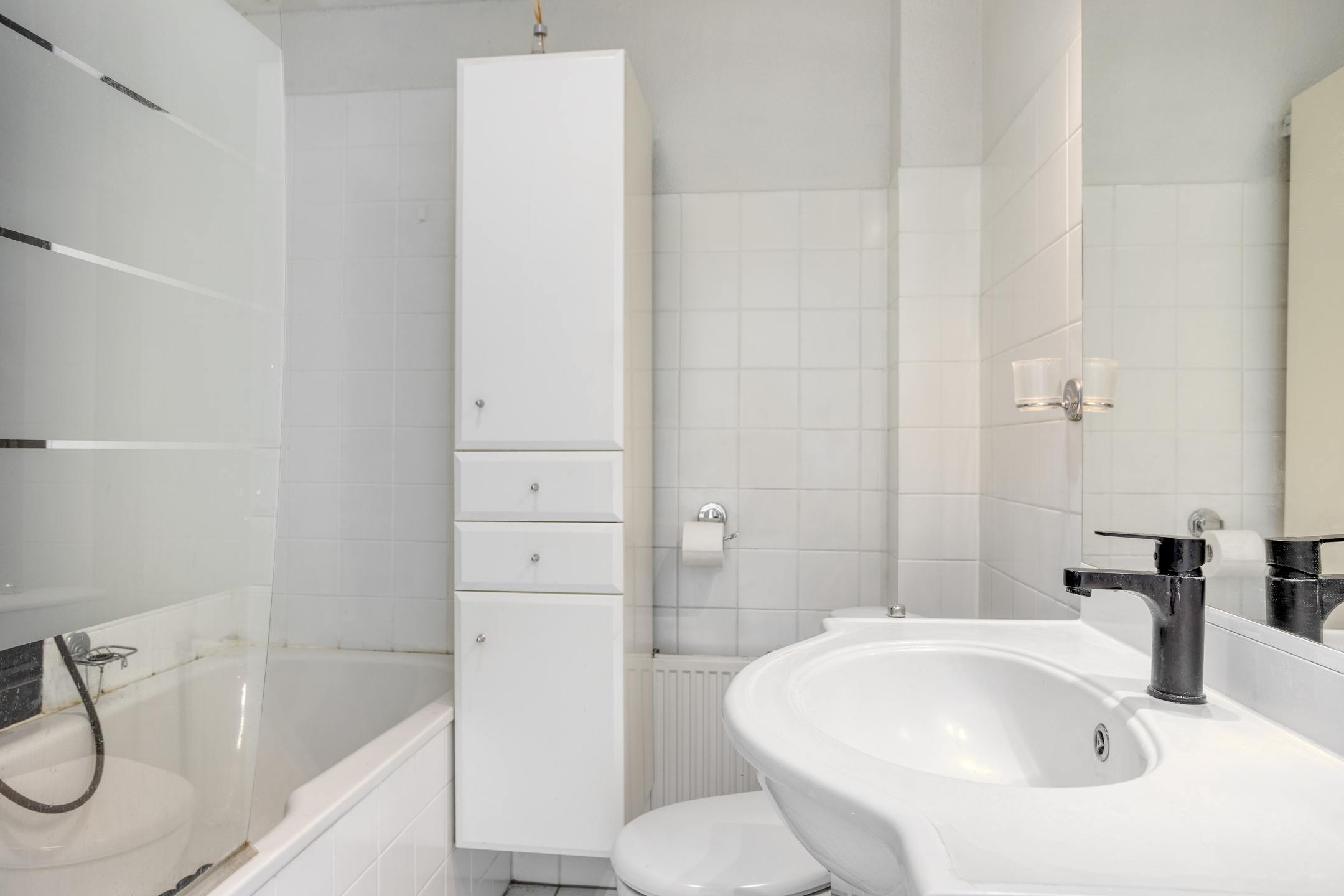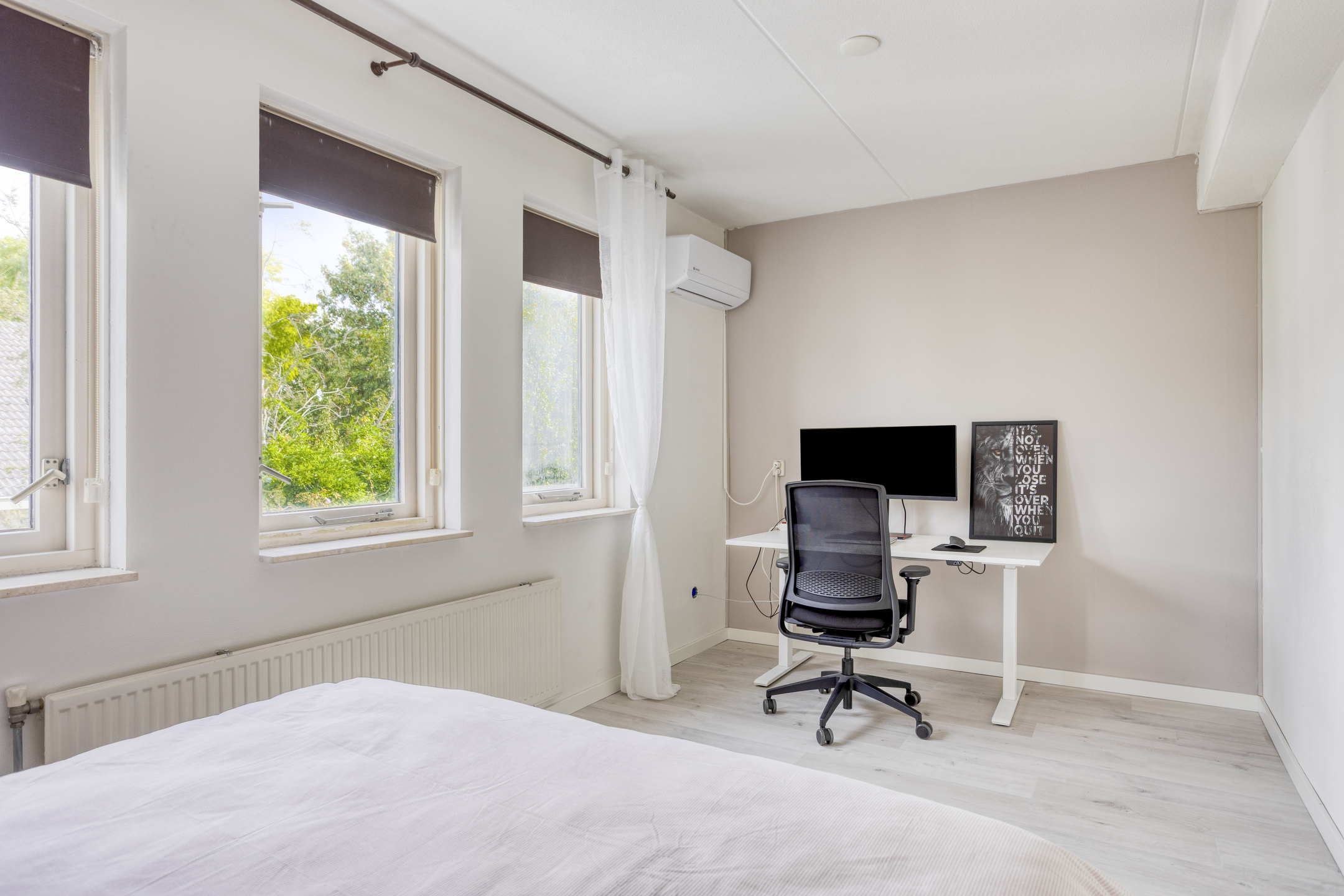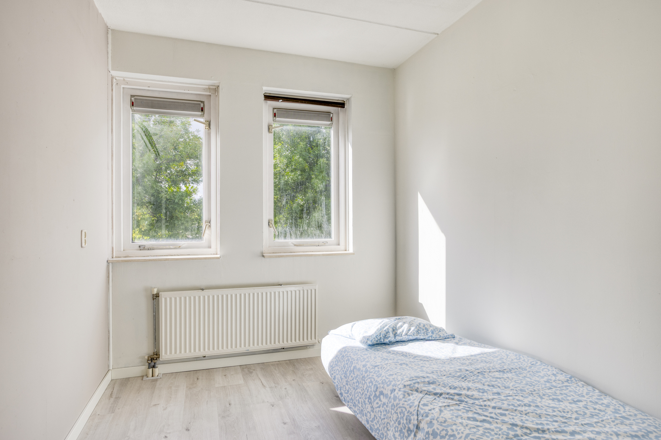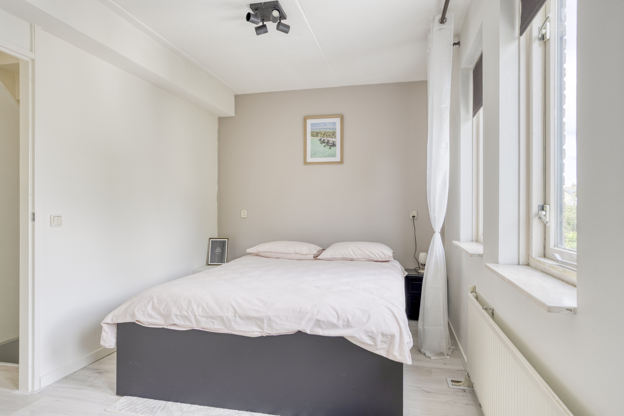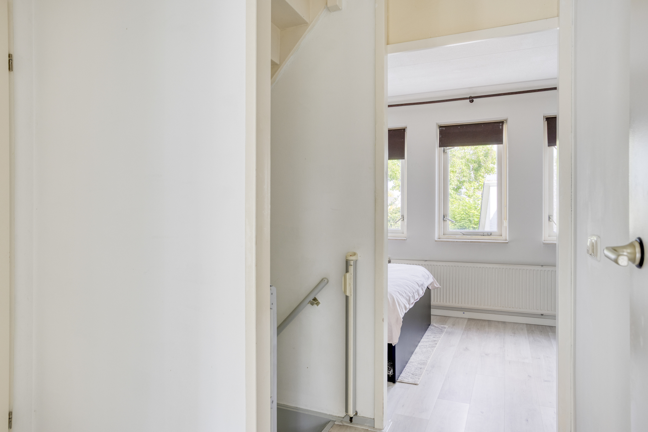 Vanaf de overloop zijn de 3 slaapkamers, de vaste trapopgang naar de 2e verdieping en de badkamer bereikbaar. De grootste slaapkamer bevindt zich aan de achterzijde van de woning en is over de gehele breedte gelegen. Ruimte genoeg dus voor een tweepersoonsbed én een royale kledingkast! Fijne extra: deze slaapkamer beschikt over airconditioning (kan tevens verwarmen). De overige 2 slaapkamers zijn aan de voorzijde gelegen en beschikken over veel daglichttoetreding. De slaapkamers en de overloop beschikken over eenzelfde, recent gelegde laminaatvloer (2025) wat het geheel een rustige uitstraling geeft. De badkamer is betegeld in een lichte kleurstelling en is ingericht met een ligbad met douchefunctie, een staand toilet, een wandkast, een radiator en een wastafel met meubel.