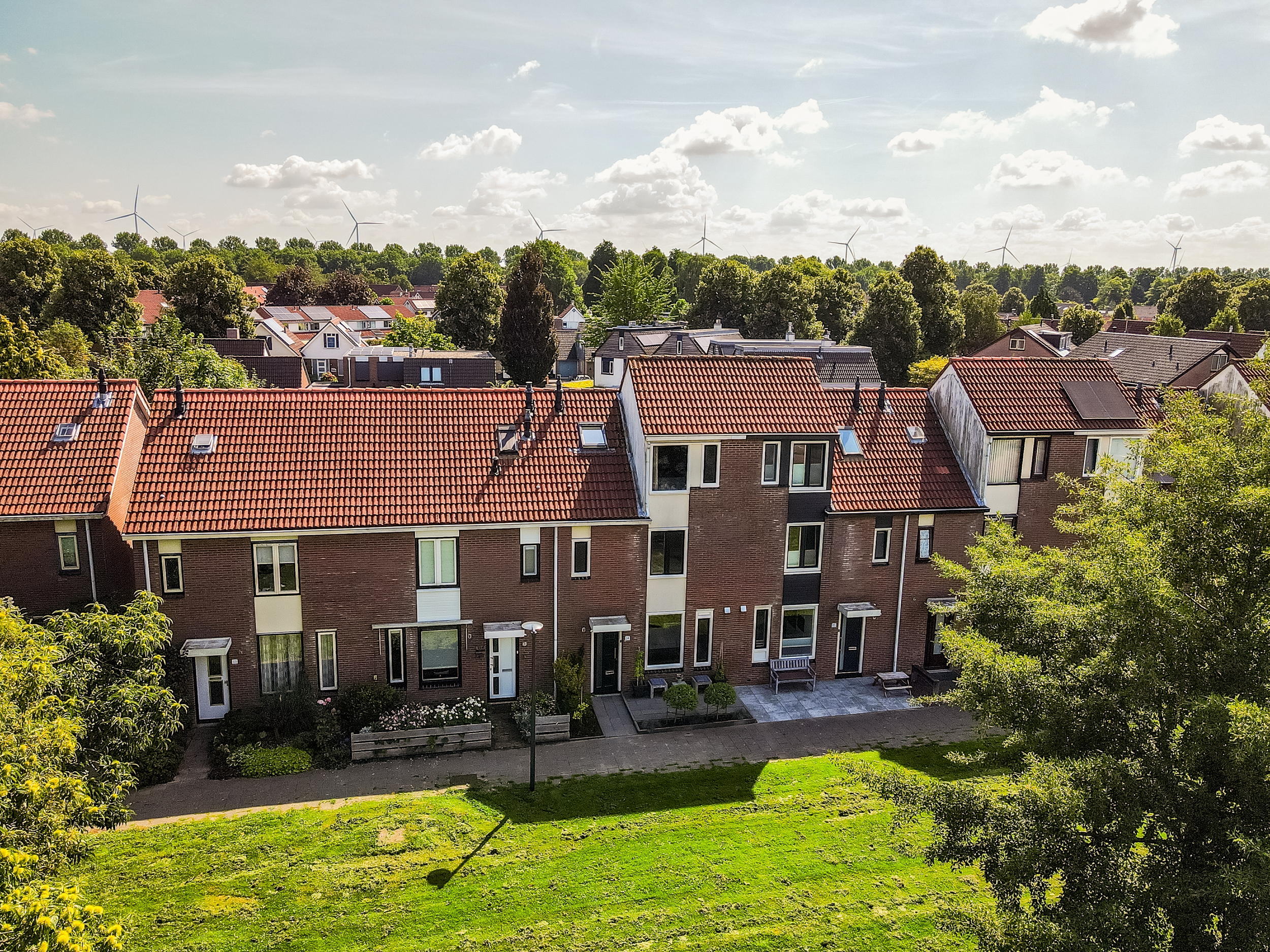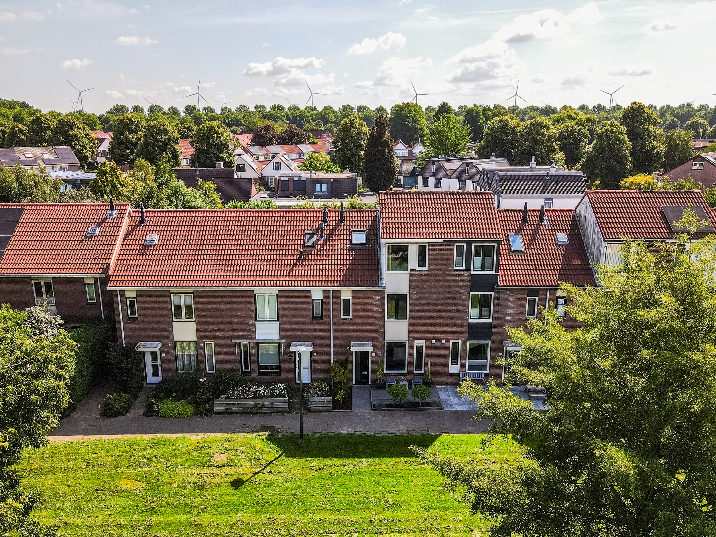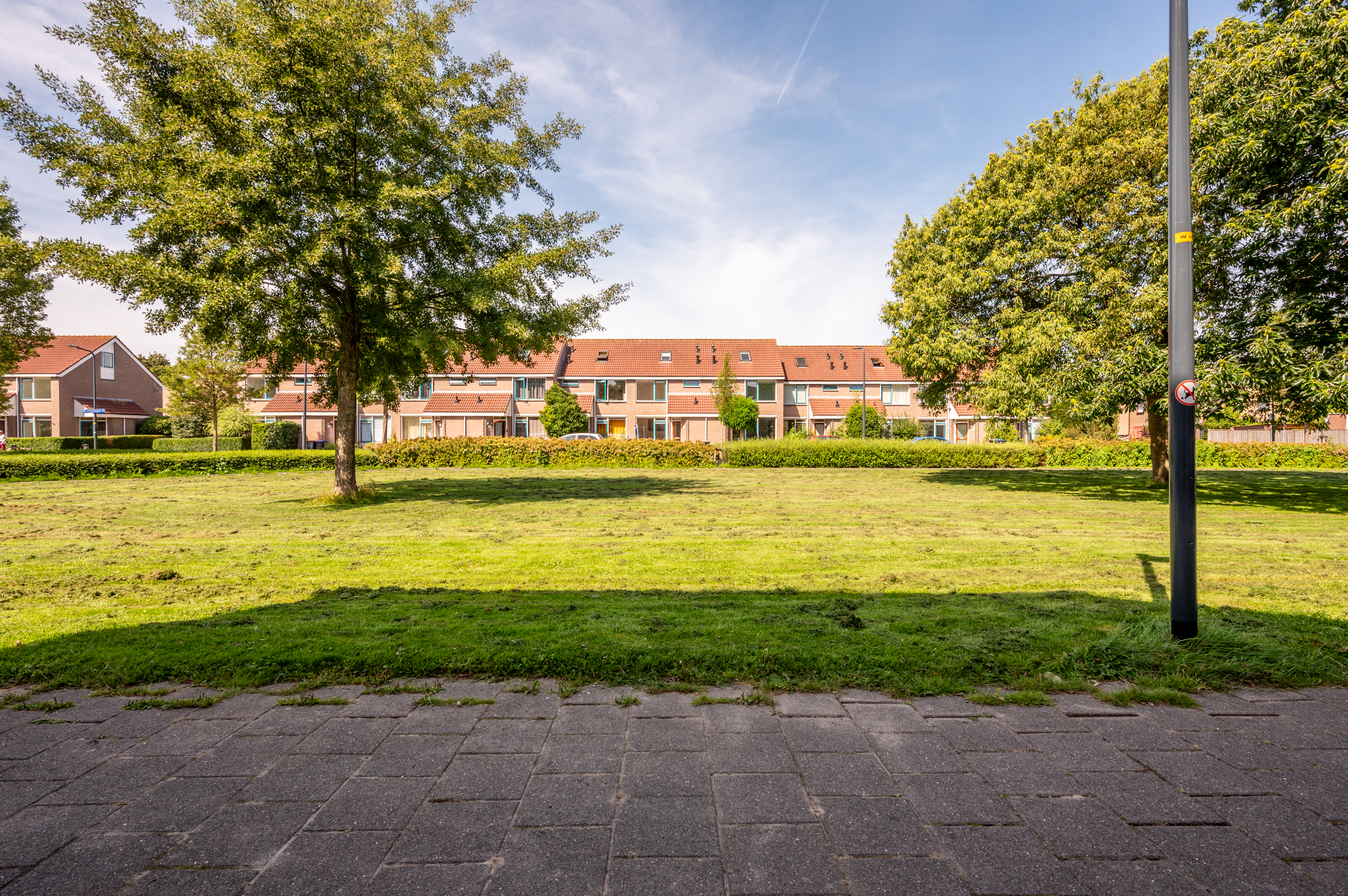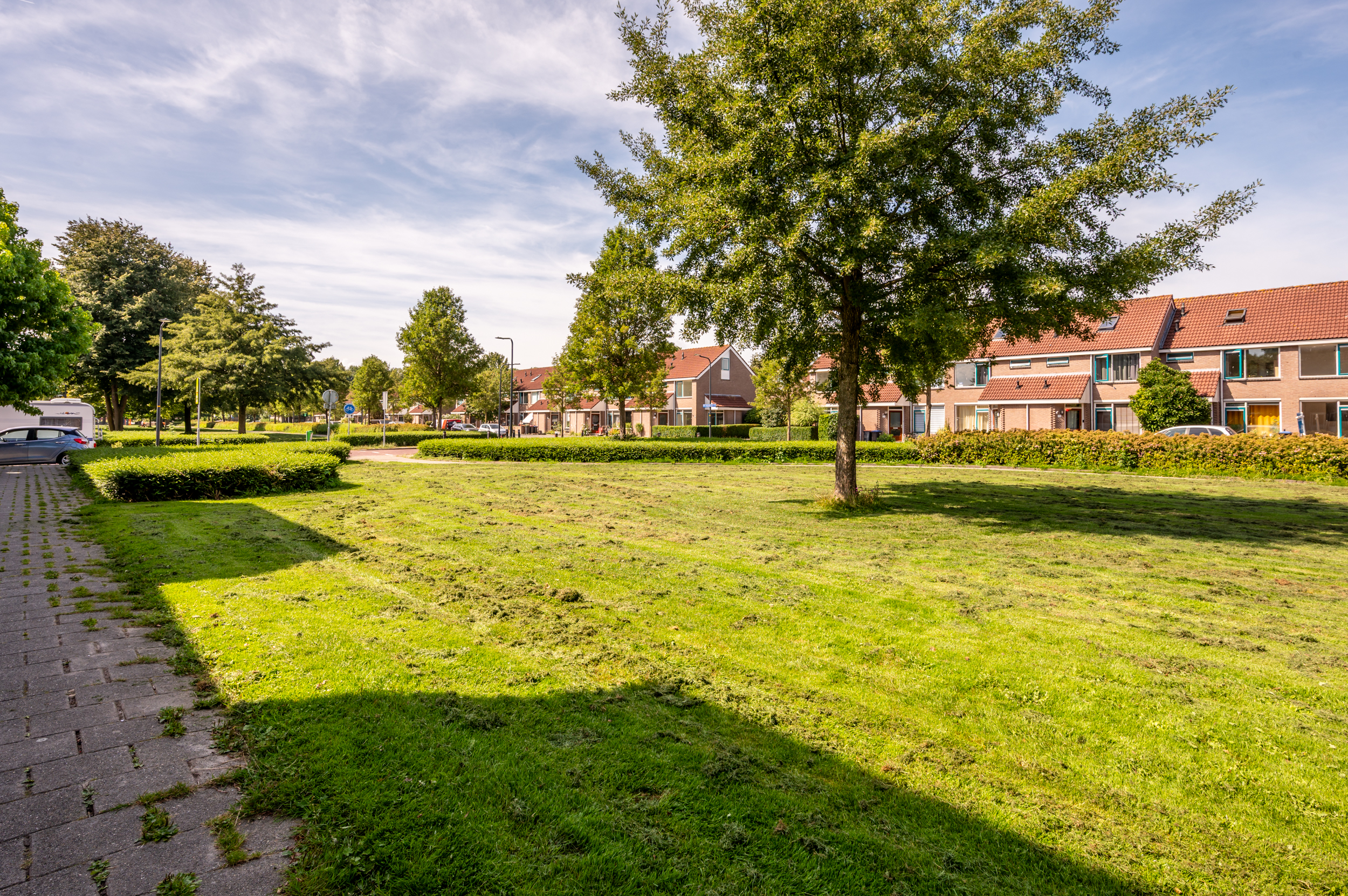 De tuin is netjes onderhouden en biedt terrassen aan zowel de voor- als achterzijde. Zo kies je zelf of je liever in de zon of in de schaduw zit. Verder is de tuin aangelegd met vaste beplanting, gras en bestrating. Achterin staat een ruime berging met overkapping, ideaal om bijvoorbeeld de containers uit het zicht te plaatsen. Via de achterom kom je op de parkeerplaats terecht waar je gemakkelijk je auto parkeert.