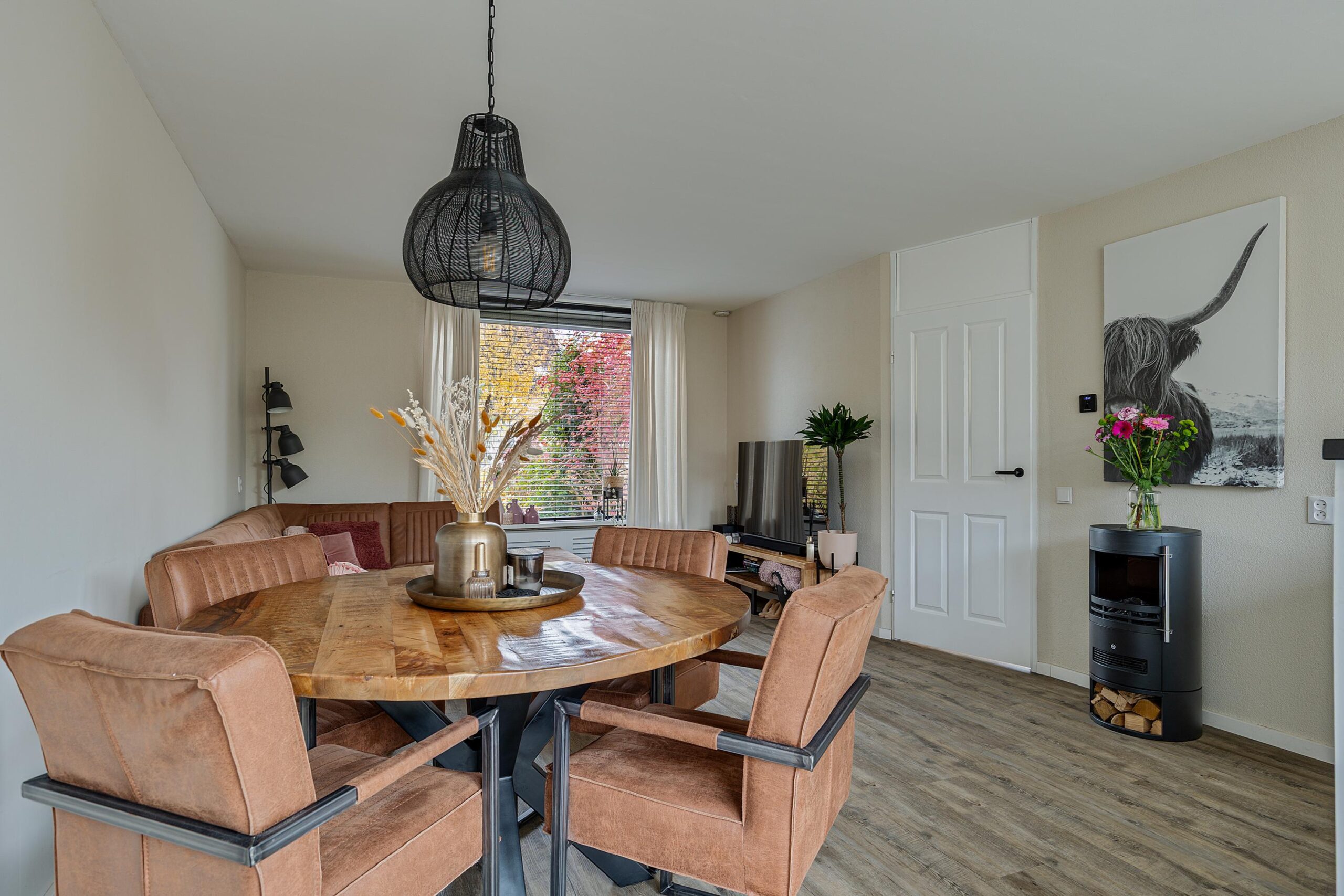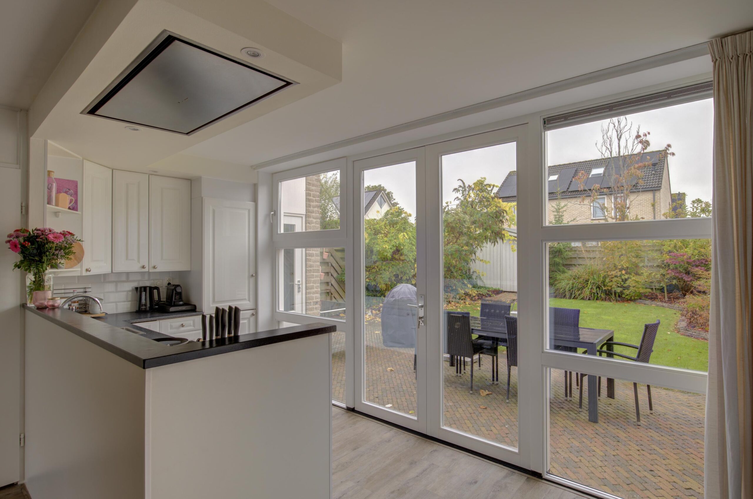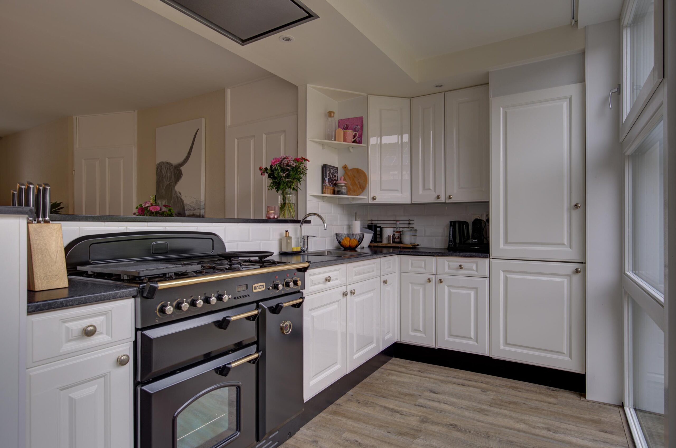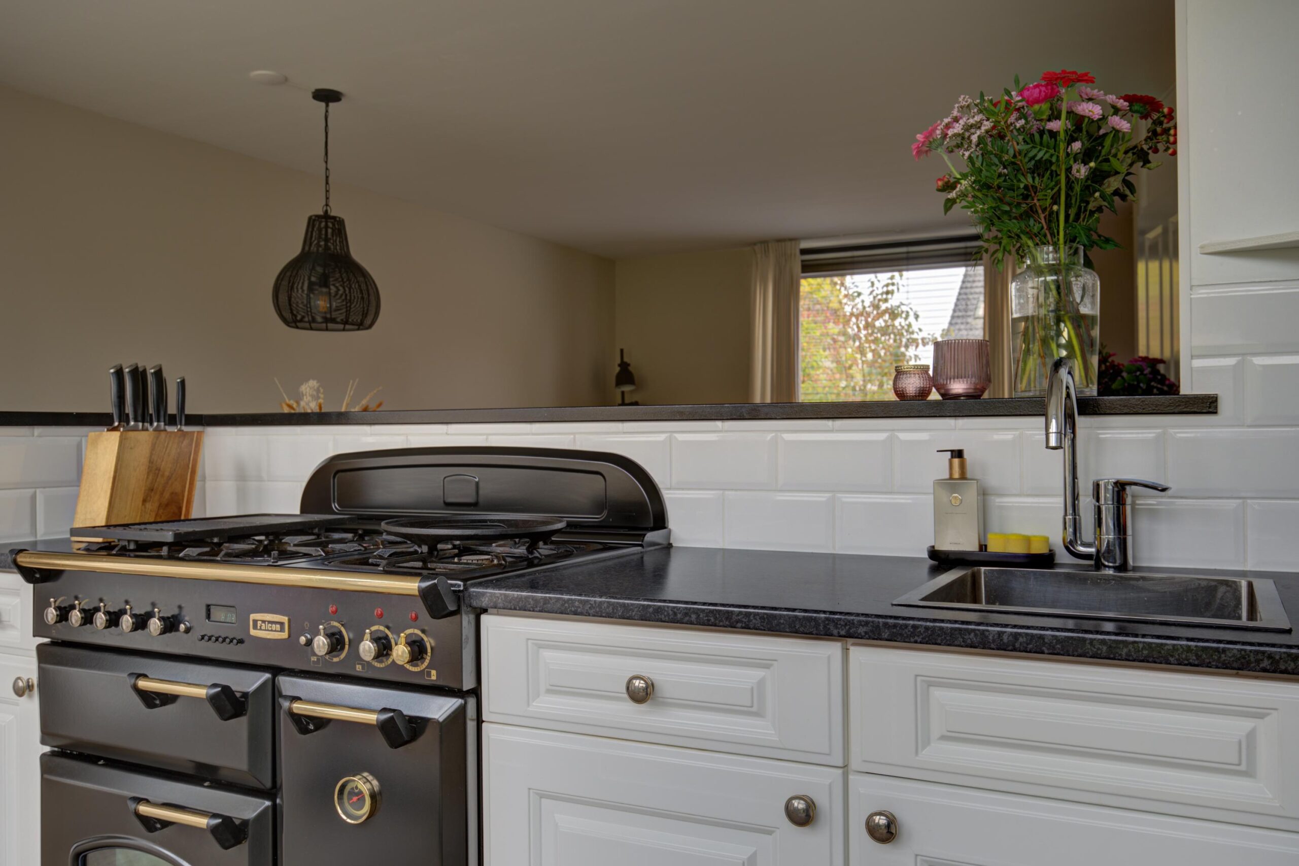 Stap de sfeervolle woonkamer binnen met strak afgewerkte wanden, een stijlvolle pvc-vloer die doorloopt door de gehele woning, wat een fijne en rustige uitstraling geeft. Aan de straatzijde vind je de zithoek, die dankzij de diepe en groene voortuin zorgt voor veel privacy en een fijn uitzicht. In het midden van de woonkamer is ruimte genoeg voor een grote eettafel waar je gezellig kunt tafelen en in directe verbinding staat met de open, tuingerichte keuken. Wat een fantastische lichtinval heb je hier! De recent vernieuwde achterpui, met veel glas en voorzien van openslaande deuren, zorgt voor een prachtige verbinding met de tuin. De keuken is geplaatst in een L-opstelling en ingericht met een koel-vriescombinatie, een spoelbak, een vaatwasser, in plafond ingebouwde afzuiging en een luxe gasfornuis met maar liefst 3 ovens; ideaal als je graag kookt voor een groot gezelschap. Verder is er nog een handige trapkast voor extra bergruimte.