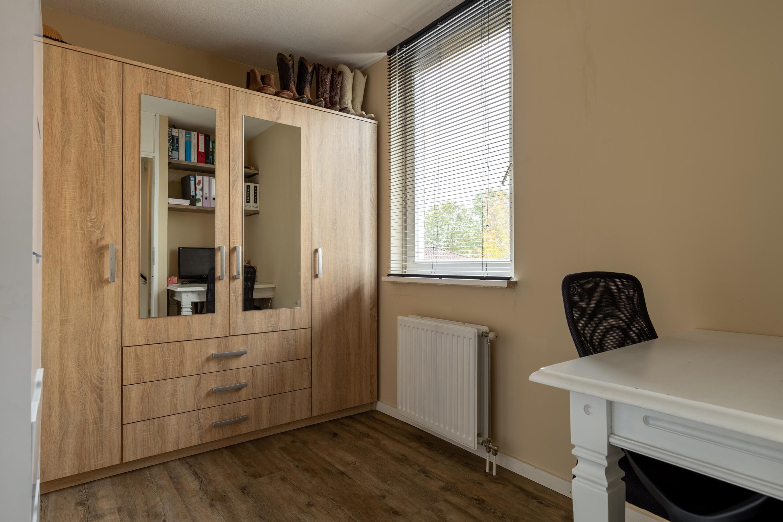 Je kunt hier werkelijk alle kanten op: wordt het een thuiswerkplek, hobbyruimte of juist de 4e slaapkamer? Alles is mogelijk. Hier vind je ook de cv-ketel (2024) en de wasmachineaansluiting, beiden netjes weggewerkt in inbouwkasten. Achter de knieschotten en in de vaste kasten is aanvullende bergruimte aanwezig.