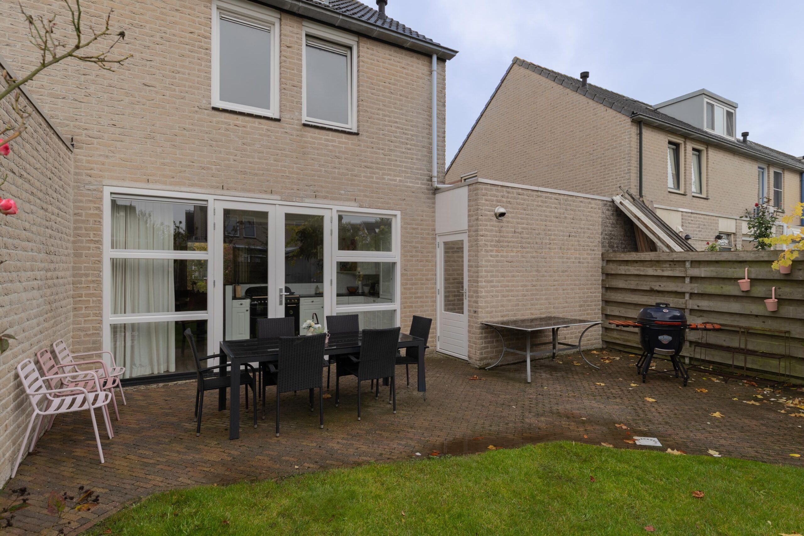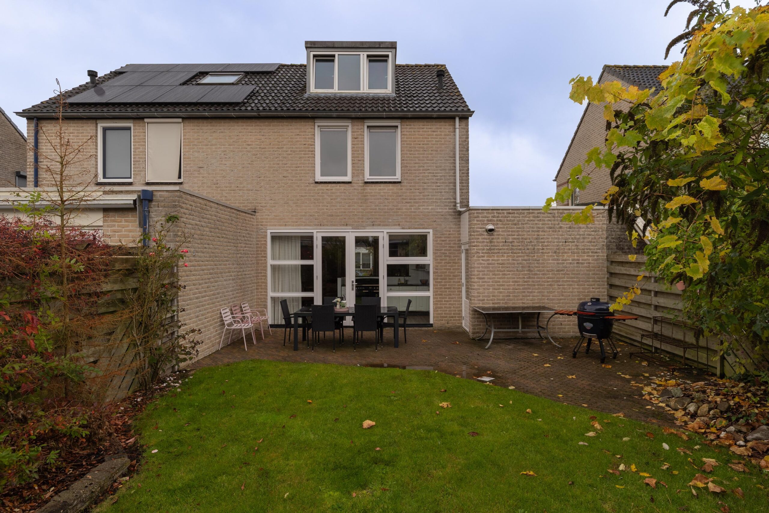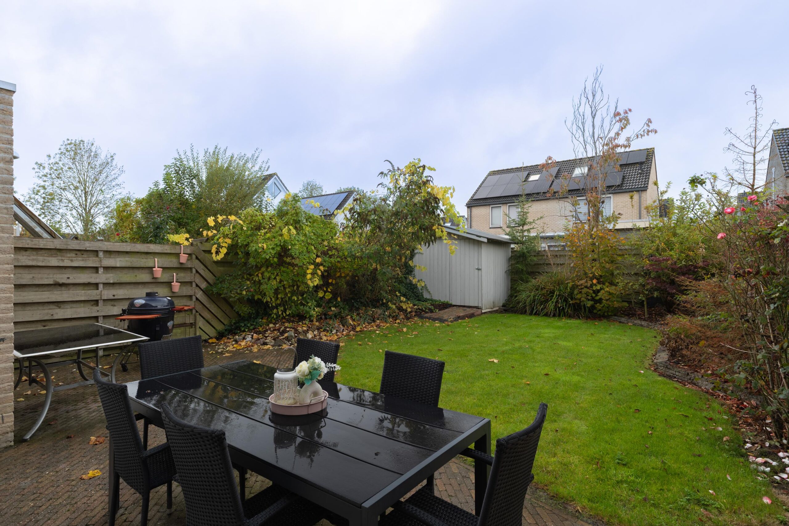 Stap de royale achtertuin in en geniet! Dankzij het ruime formaat vind je hier altijd wel een plekje in de zon. De tuin is ingericht met vaste beplanting, gras en bestrating. Achterin de tuin staat een praktische berging voor tuingereedschap, tuinkussens of de grasmaaier. Grenzend aan de woning bevindt zich een terras waar je een ruime eettafel kwijt kunt, ideaal voor lange zomeravonden. Door de speelse indeling loop je vanuit de tuin zo de keuken binnen en kook je dus niet alleen gemakkelijk voor binnen, maar ook voor buiten. Tot slot heb je via de tuin toegang tot de garage, voorzien van een kanteldeur.