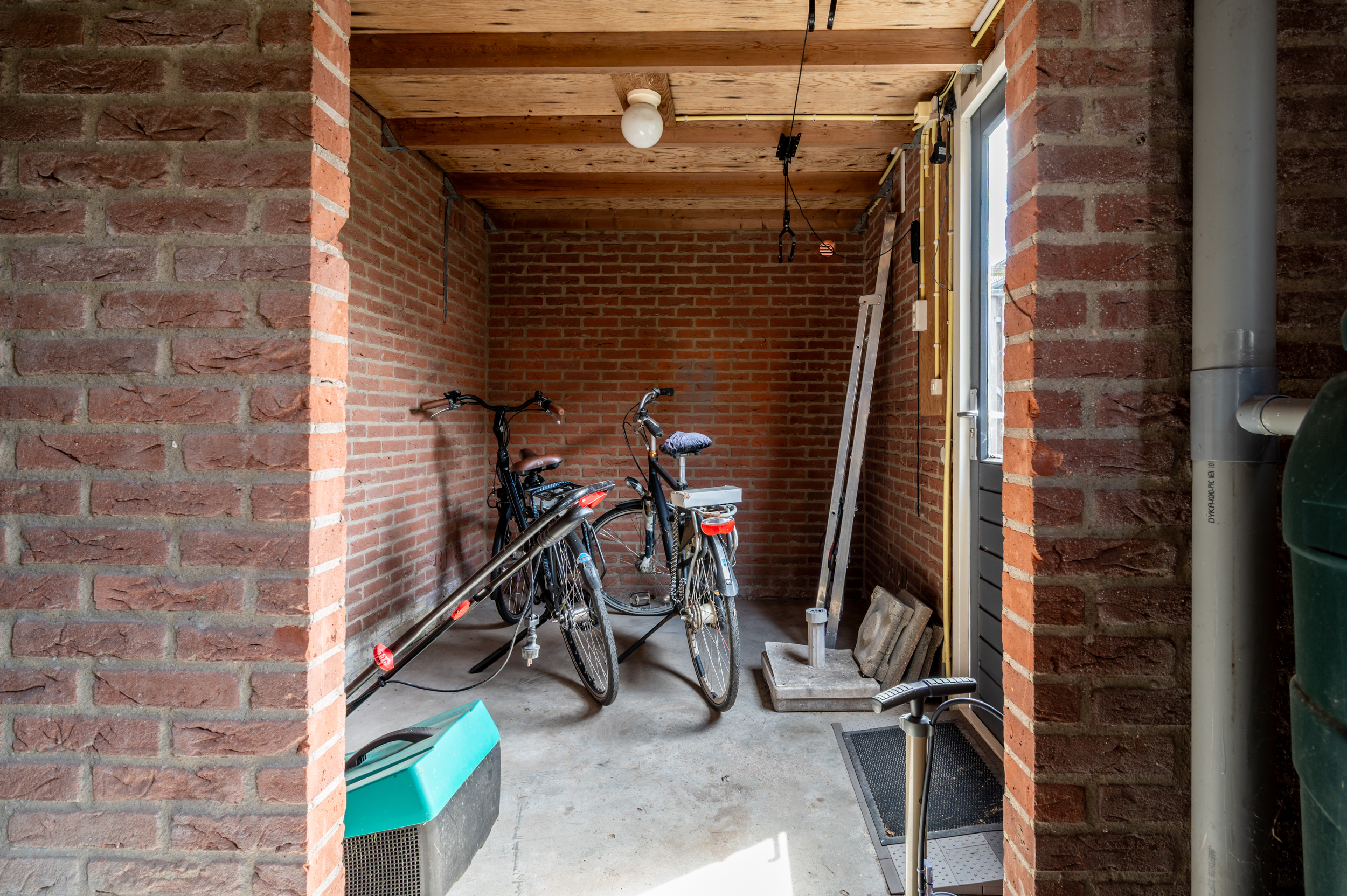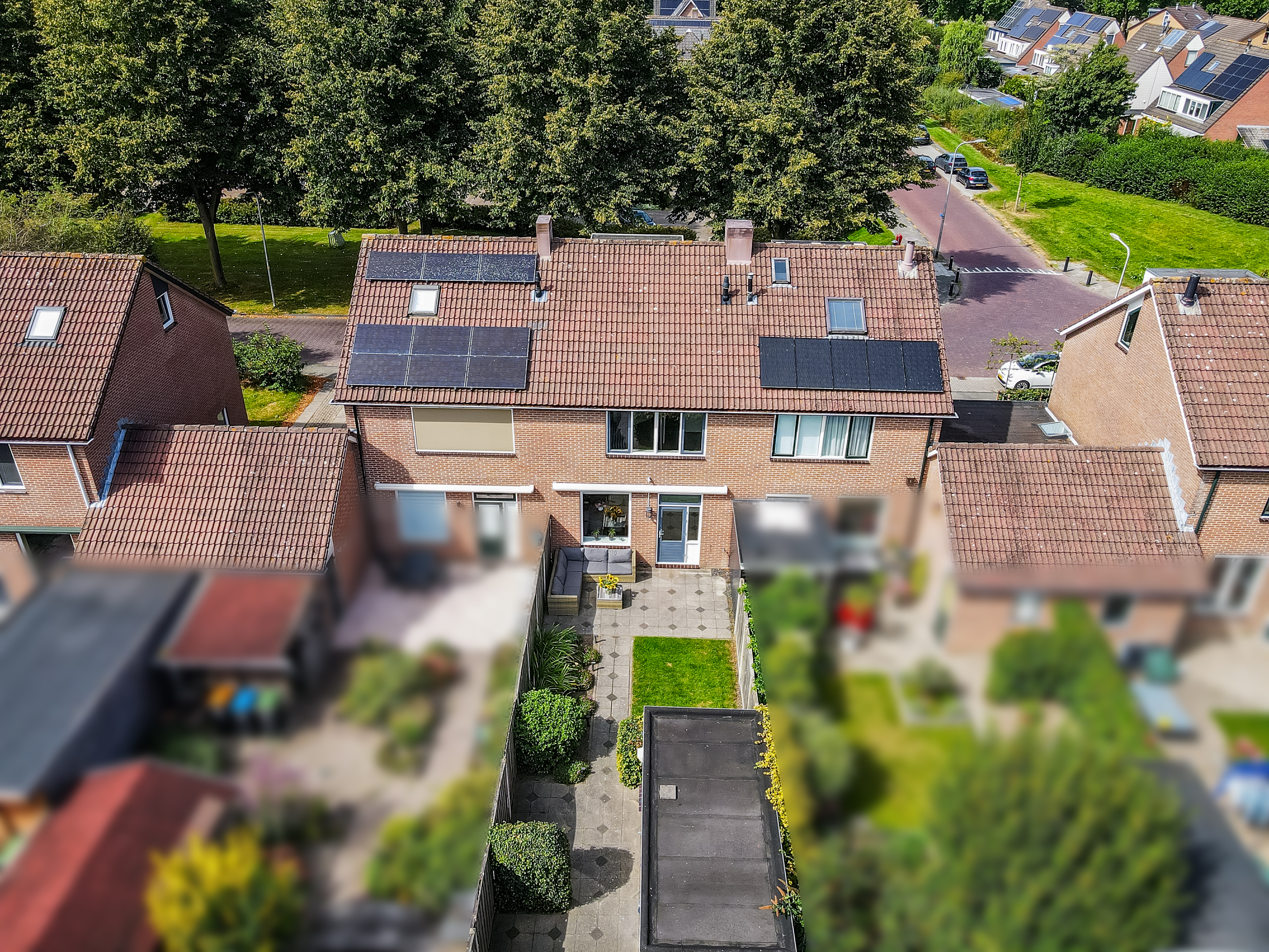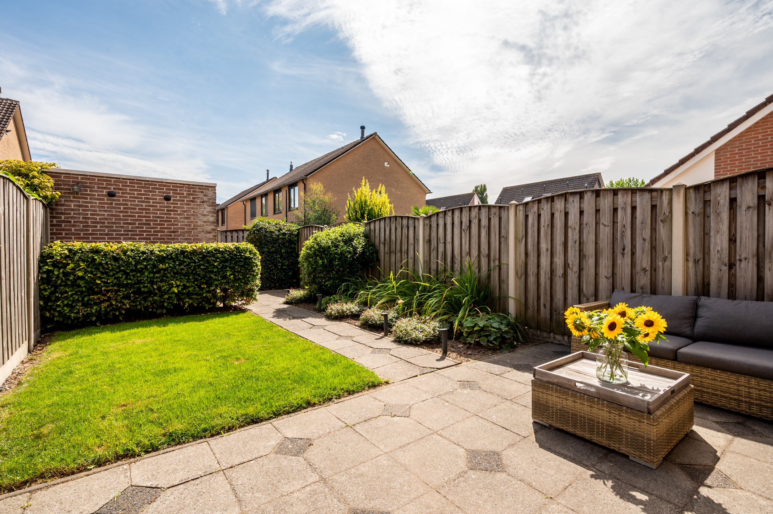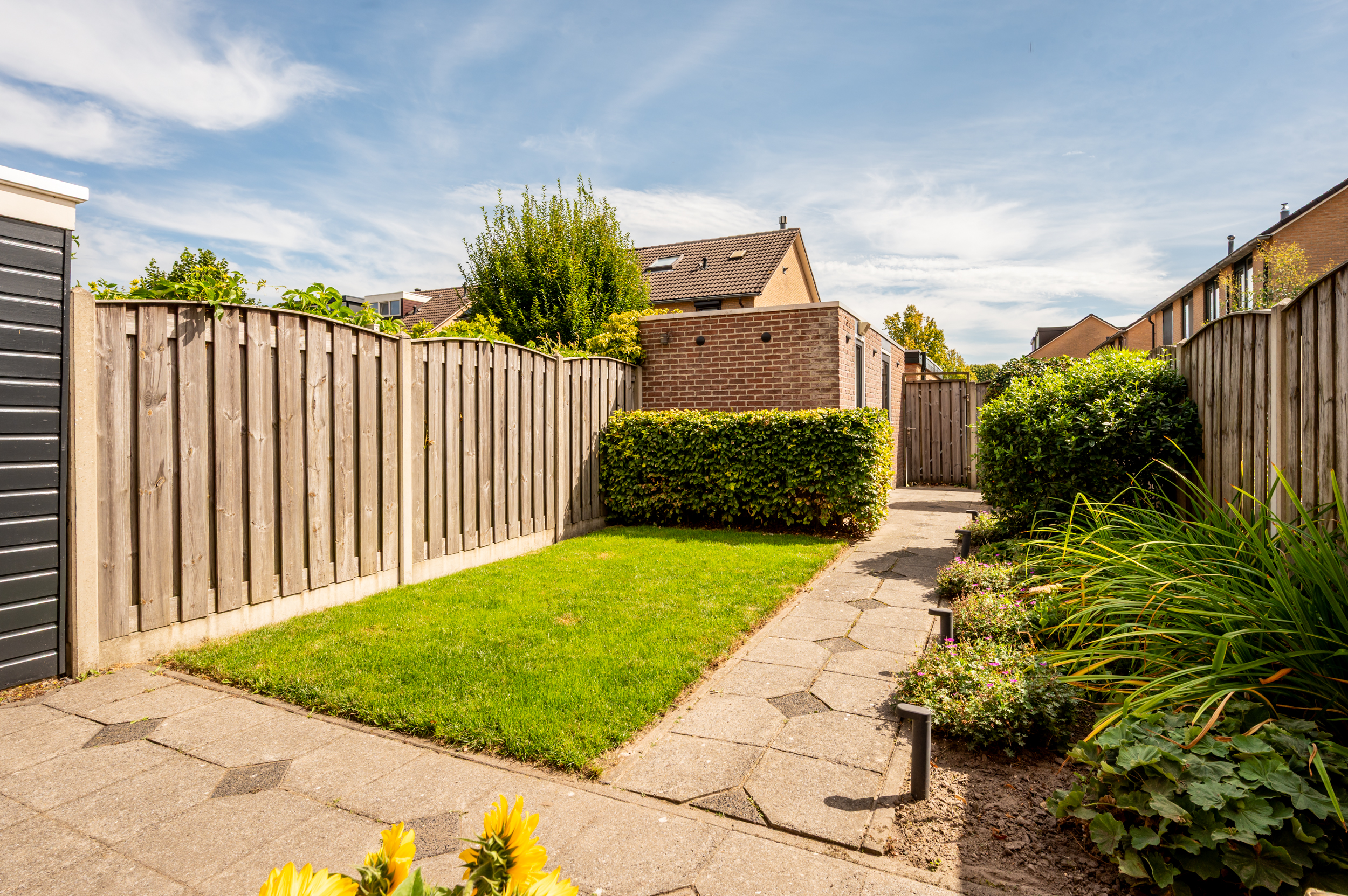 Vanuit de keuken stap je de fraai aangelegde tuin in. Deze is voorzien van bestrating, gras en vaste beplanting, wat zorgt voor een groene en natuurlijke uitstraling. Achter in de tuin staat een royale berging die is uitgebreid en daardoor veel extra opslagruimte biedt. Via de achterom is de tuin eenvoudig bereikbaar, bijvoorbeeld met de fiets. Aan de woningzijde bevindt zich een verzorgd terras waar je heerlijk kunt vertoeven. Wordt het net iets te warm? Dan biedt het elektrisch bedienbare zonnescherm de perfecte uitkomst.