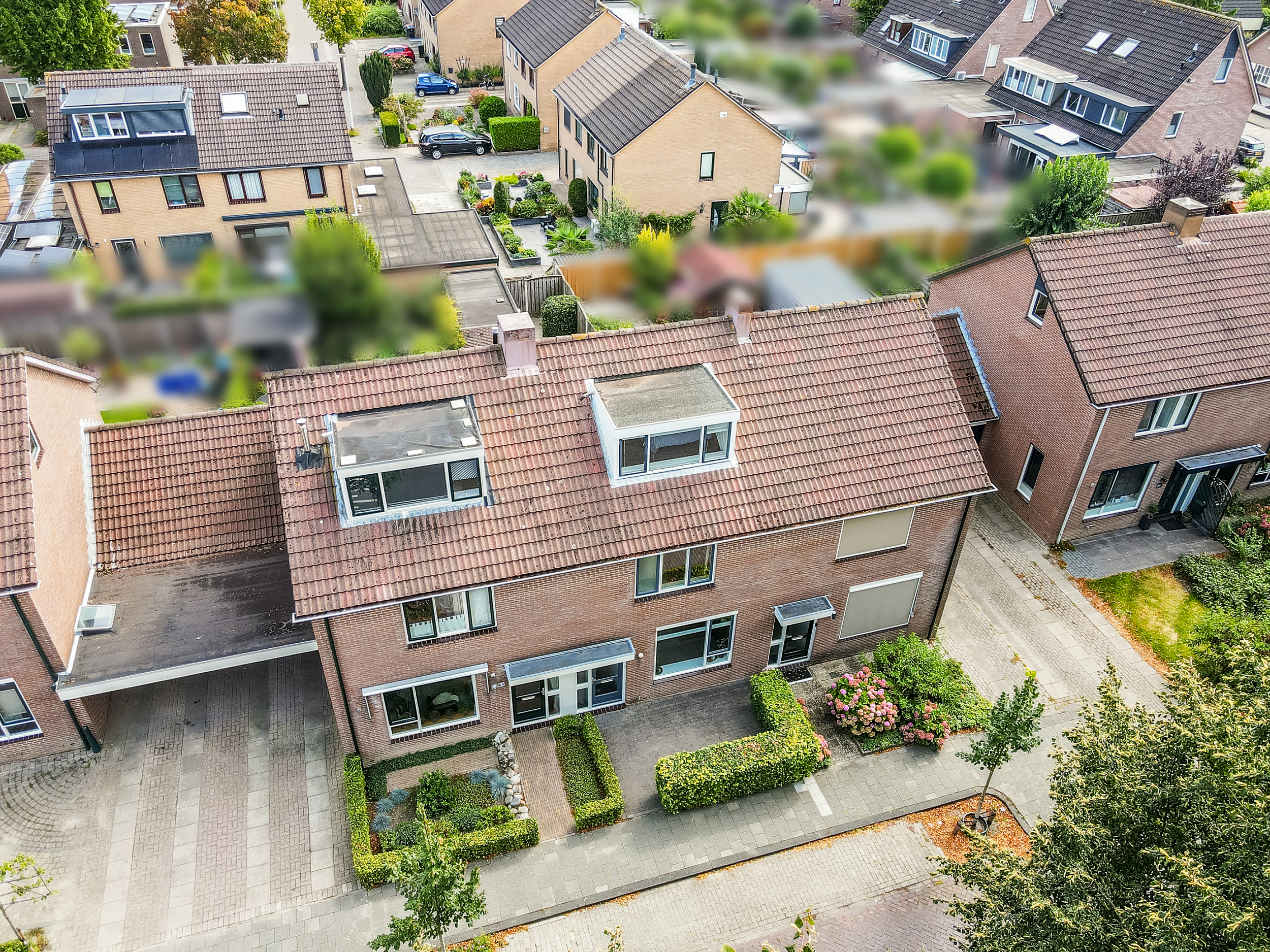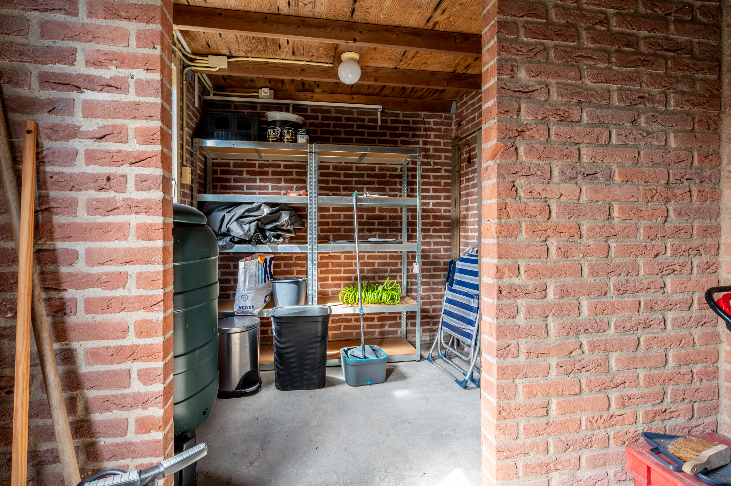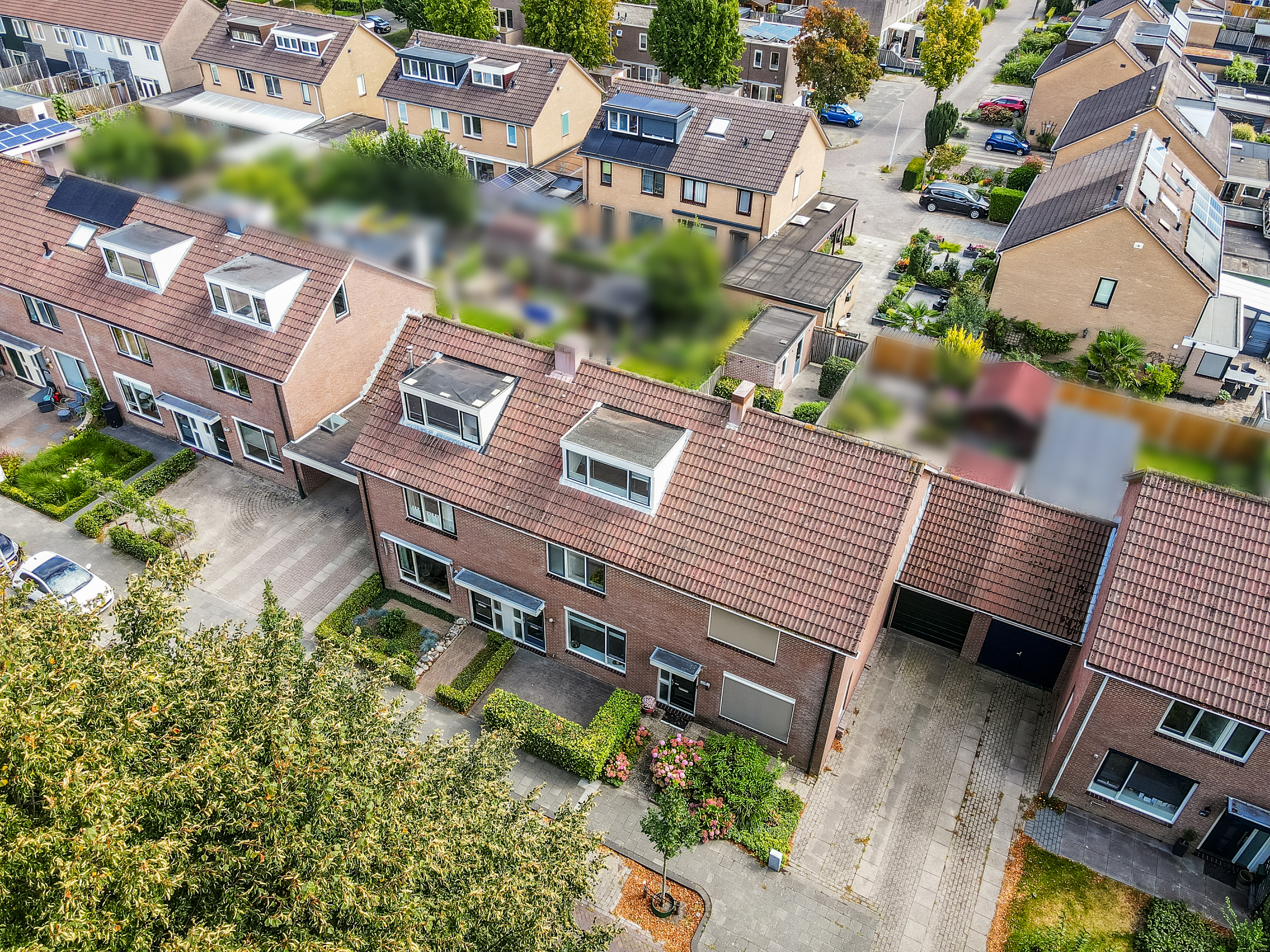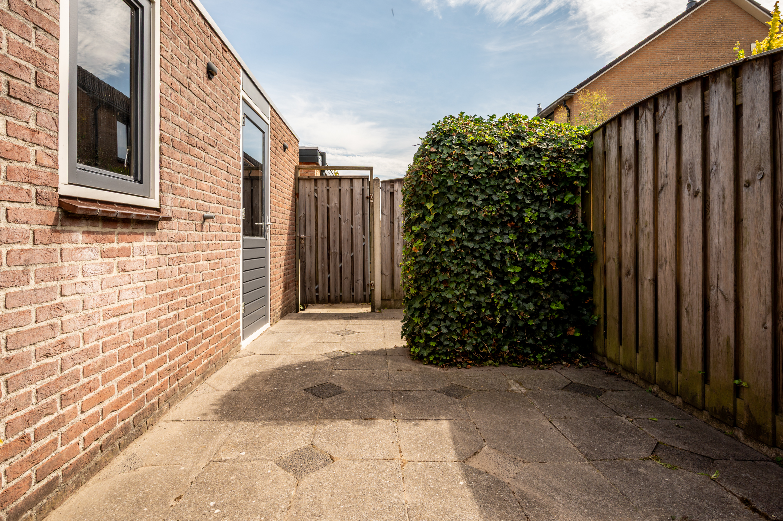Vanuit de keuken stap je de fraai aangelegde tuin in. Deze is voorzien van bestrating, gras en vaste beplanting, wat zorgt voor een groene en natuurlijke uitstraling. Achter in de tuin staat een royale berging die is uitgebreid en daardoor veel extra opslagruimte biedt. Via de achterom is de tuin eenvoudig bereikbaar, bijvoorbeeld met de fiets. Aan de woningzijde bevindt zich een verzorgd terras waar je heerlijk kunt vertoeven. Wordt het net iets te warm? Dan biedt het elektrisch bedienbare zonnescherm de perfecte uitkomst.