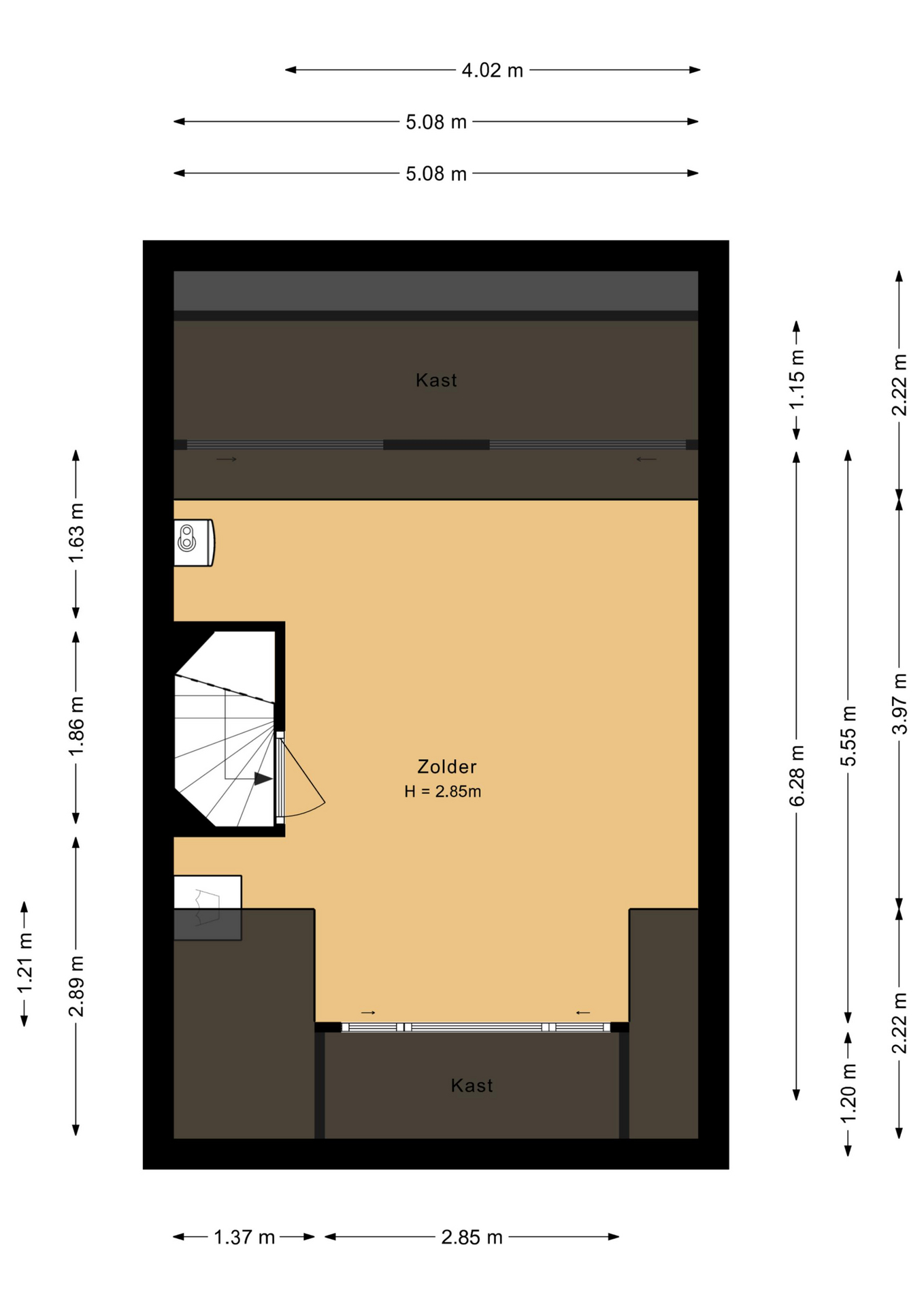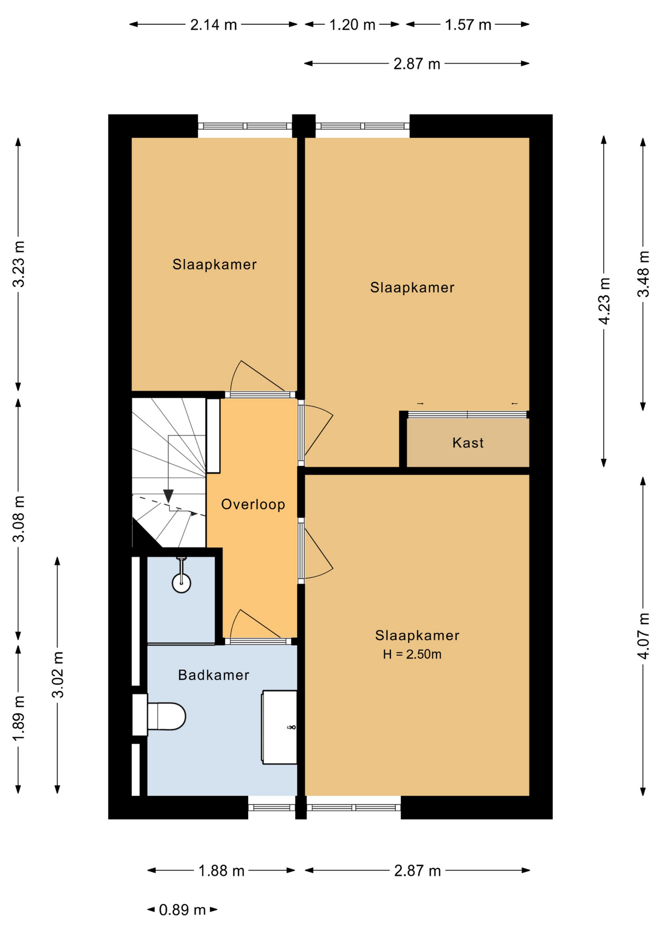 Via de vaste trapopgang bereik je de tweede verdieping. Boven aan de trap tref je een deur die toegang biedt tot de tweede verdieping. Dankzij de dakkapel is dit een royale ruimte waar je nog alle kanten mee op kunt. Een vierde slaapkamer? Of toch liever een werk- en/of hobbykamer? Alles is hier mogelijk.