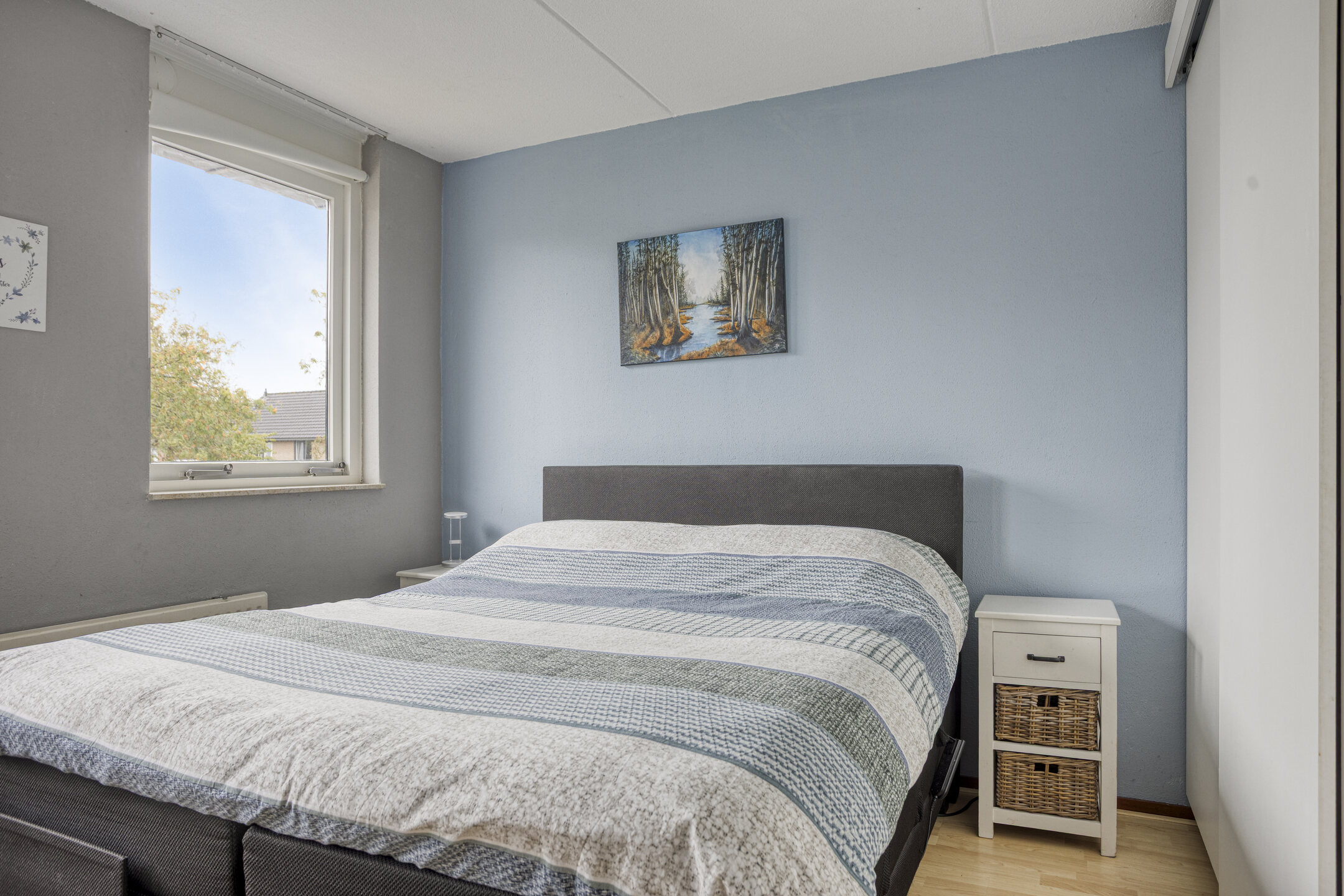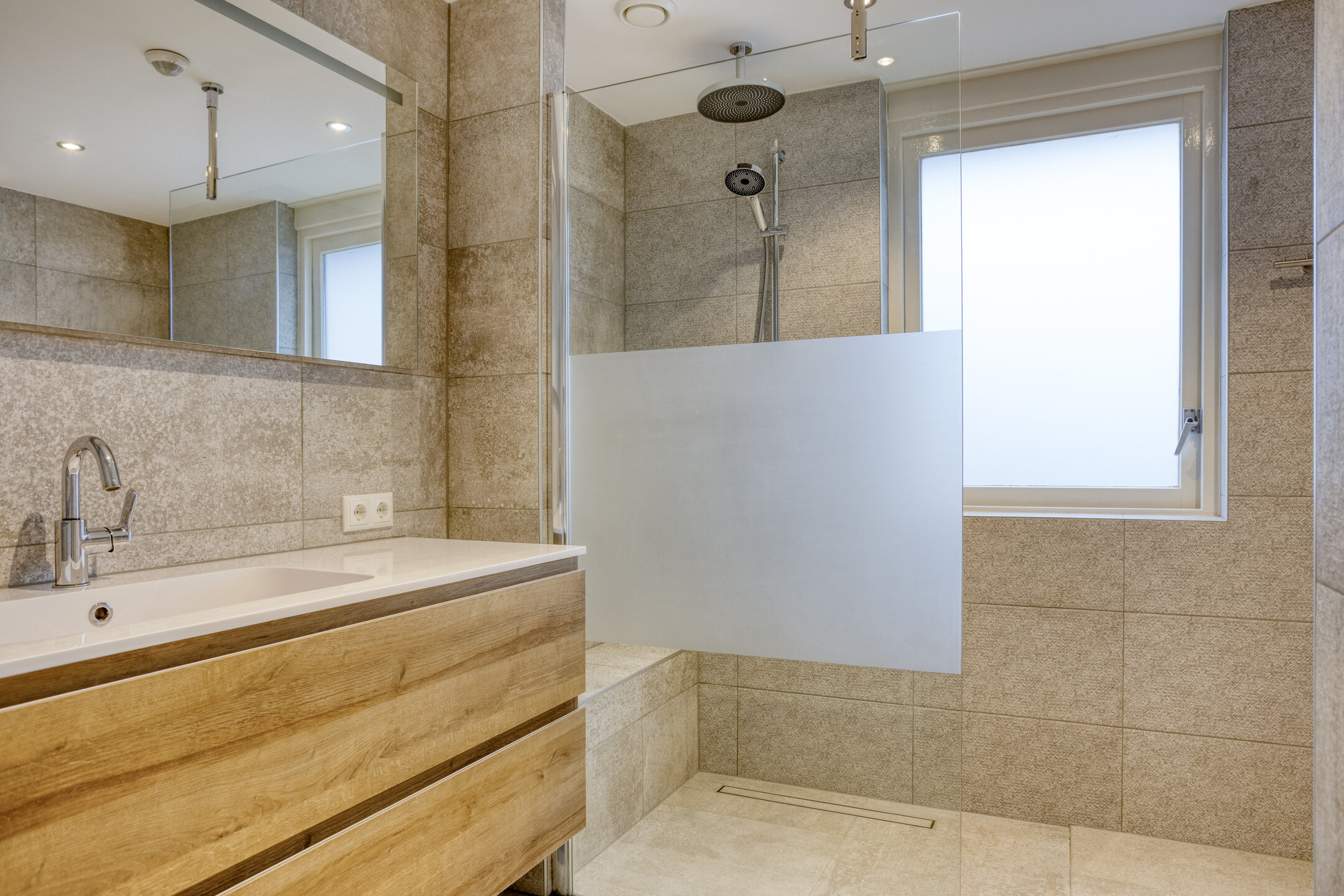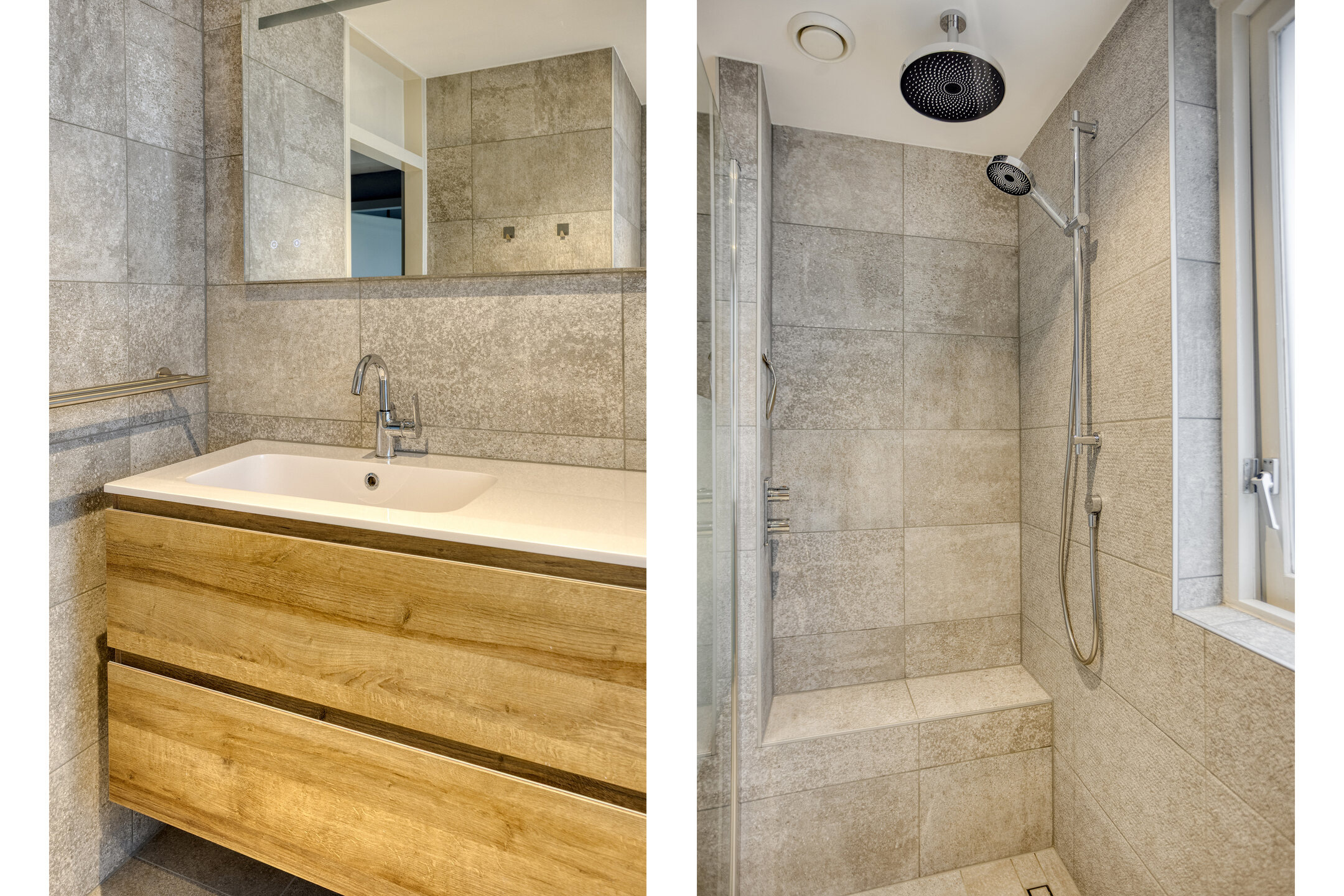 Vanaf de overloop zijn de 3 slaapkamers, een vaste kast, de badkamer en de vaste trap naar de 2e verdieping bereikbaar. Alle 3 de slaapkamers zijn lekker ruim en goed in te delen met een (tweepersoons)bed en een kledingkast. De in 2024 vernieuwde badkamer is betegeld in natuurtinten en is ingericht met een inloopdouche met een regendouche, inbouwkranen, een glazen wand en draingoot, een wastafel met meubel, een verwarmde spiegel en een zwevend toilet. Fijne extra: de vloer wordt dankzij de aanwezige retourleidingen comfortabel warm!