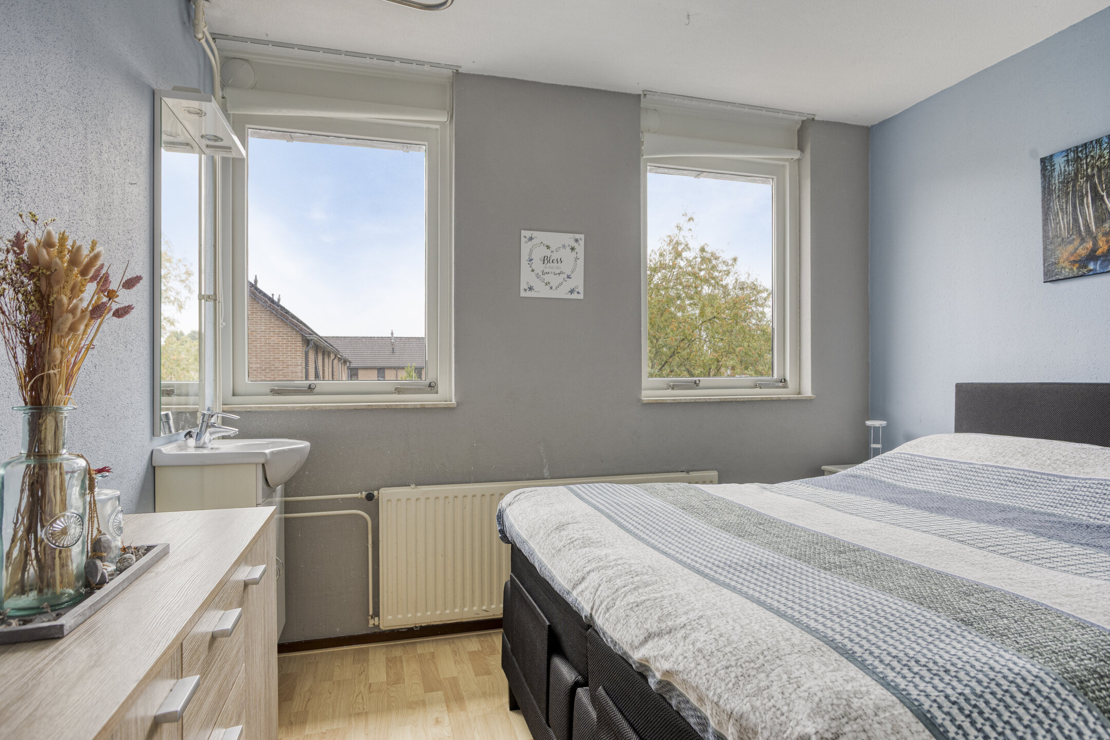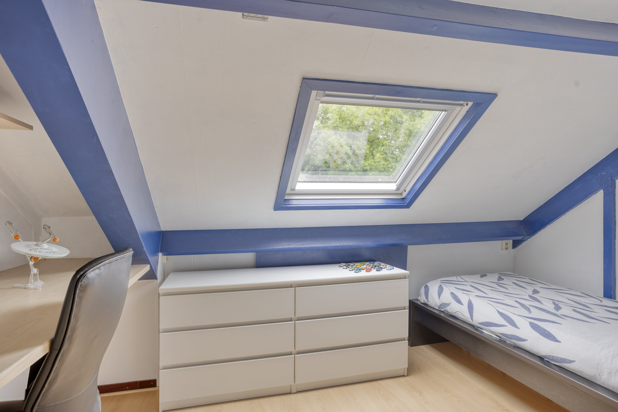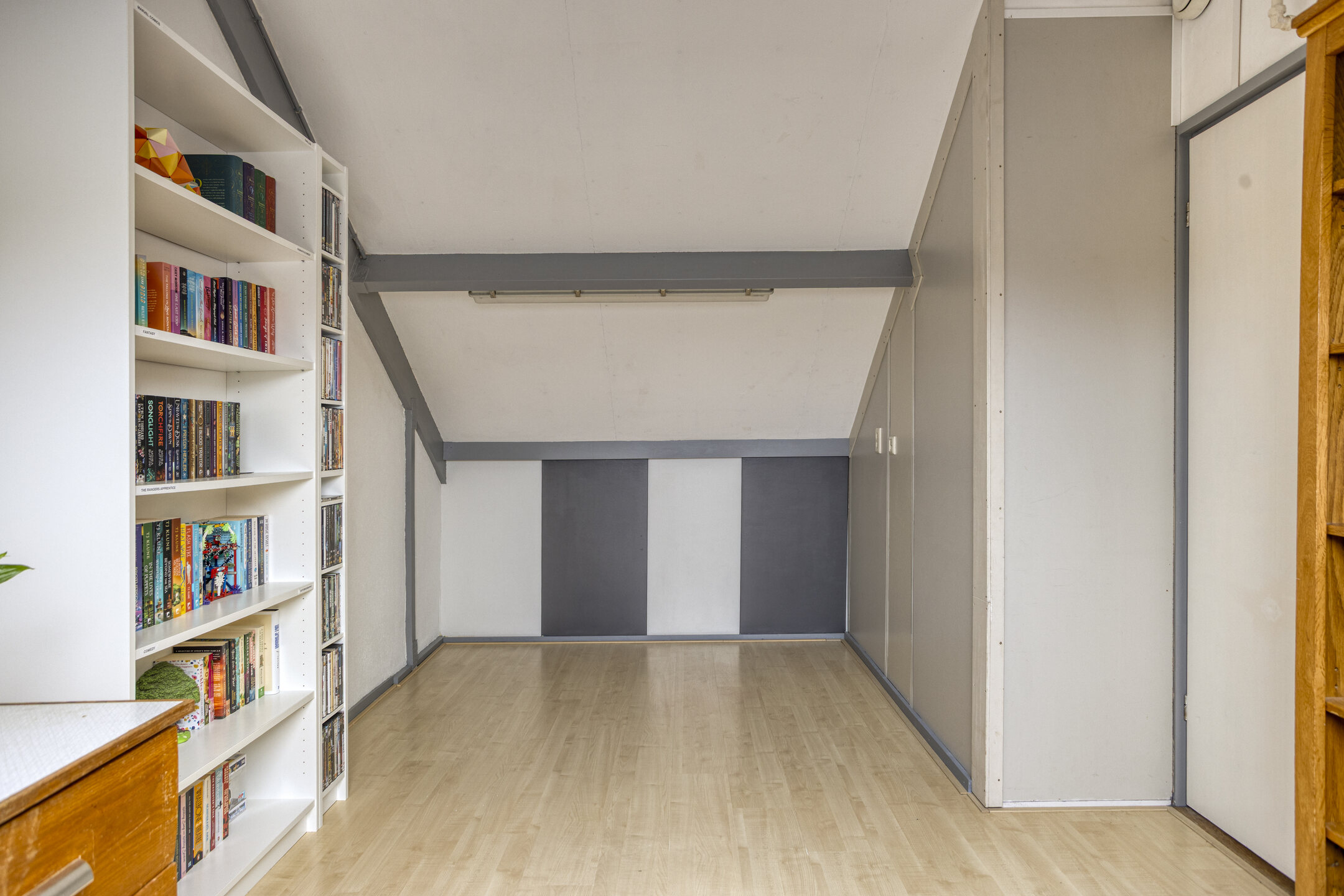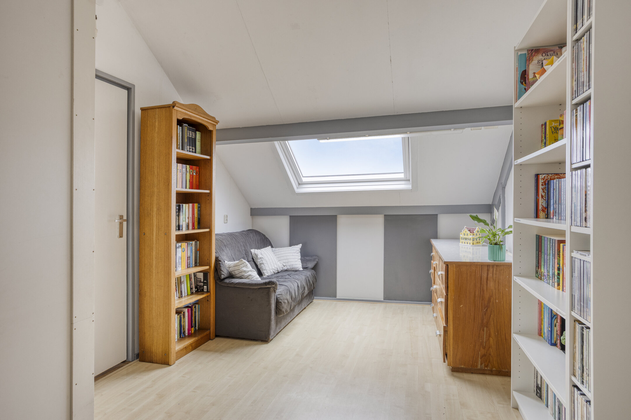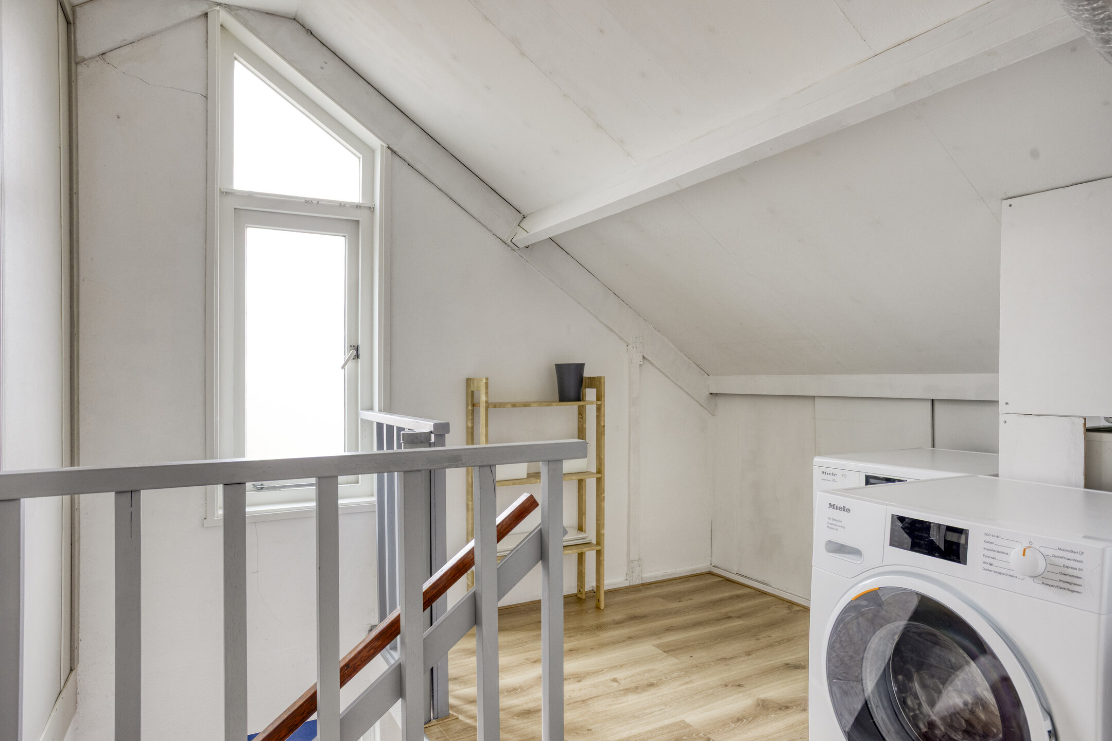 Neem de vaste trap en je bereikt de voorzolder, waar vanuit je toegang hebt tot de overige 2 (slaap)kamers. Ter plaatse van de voorzolder tref je de aansluitingen voor de was- en droogapparatuur, de opstelling voor de cv-installatie (2023), de WTW-unit (2014), de omvormer voor de zonnepanelen en de mv-unit. Beide (slaap)kamers beschikken over een groot Velux dakraam en een laminaatvloer. Ideaal voor die extra slaap- of werkfunctie!
