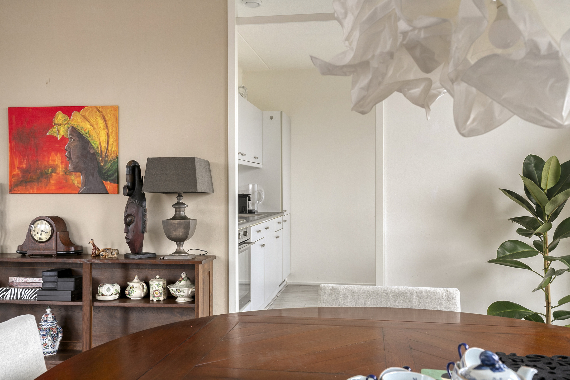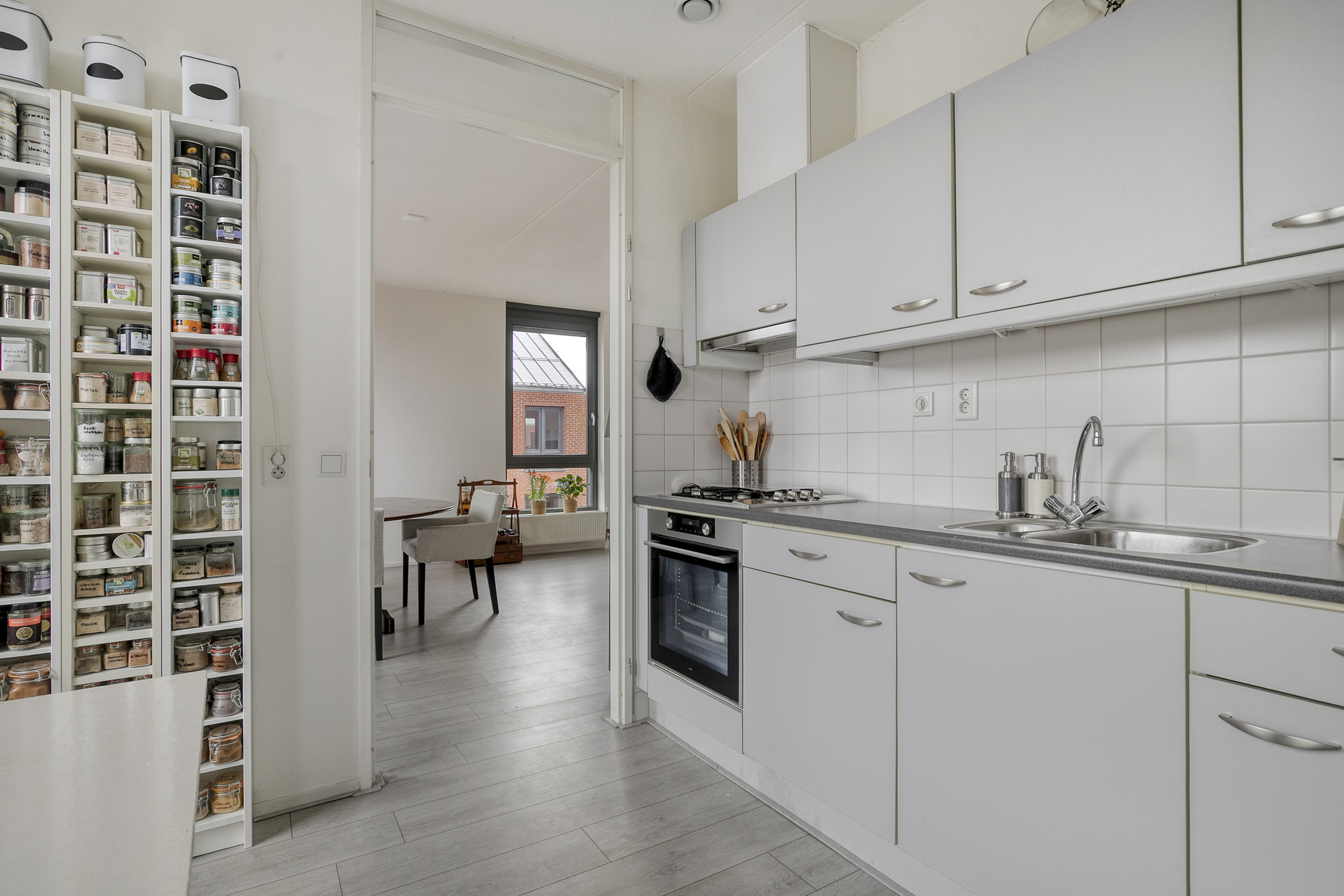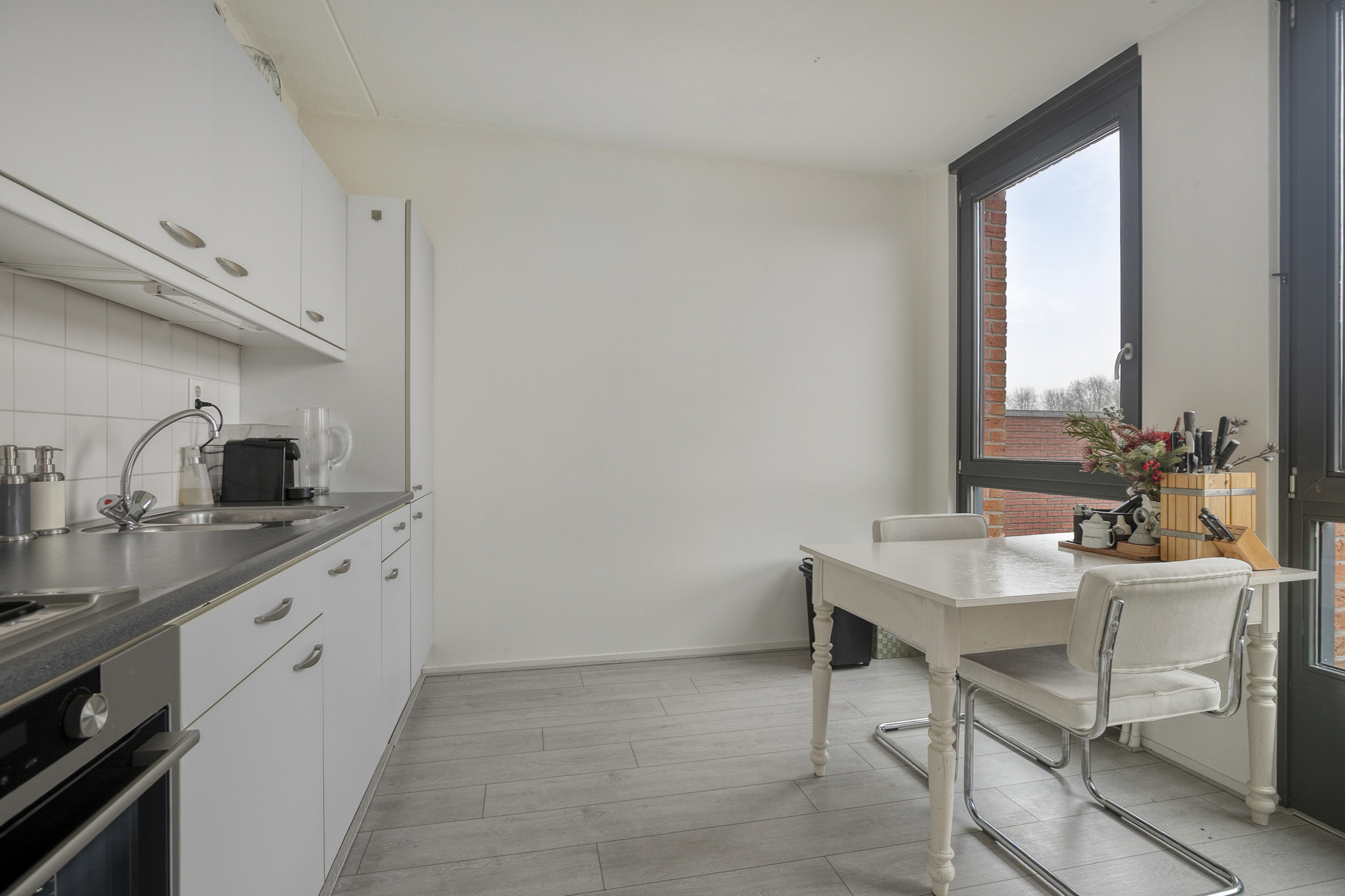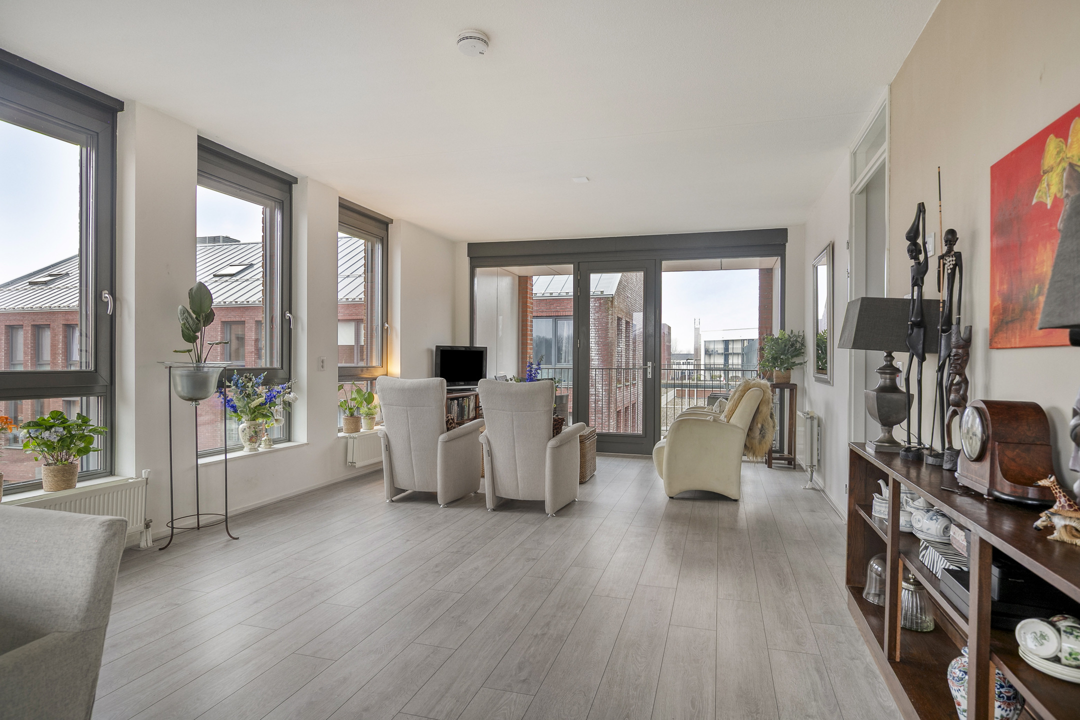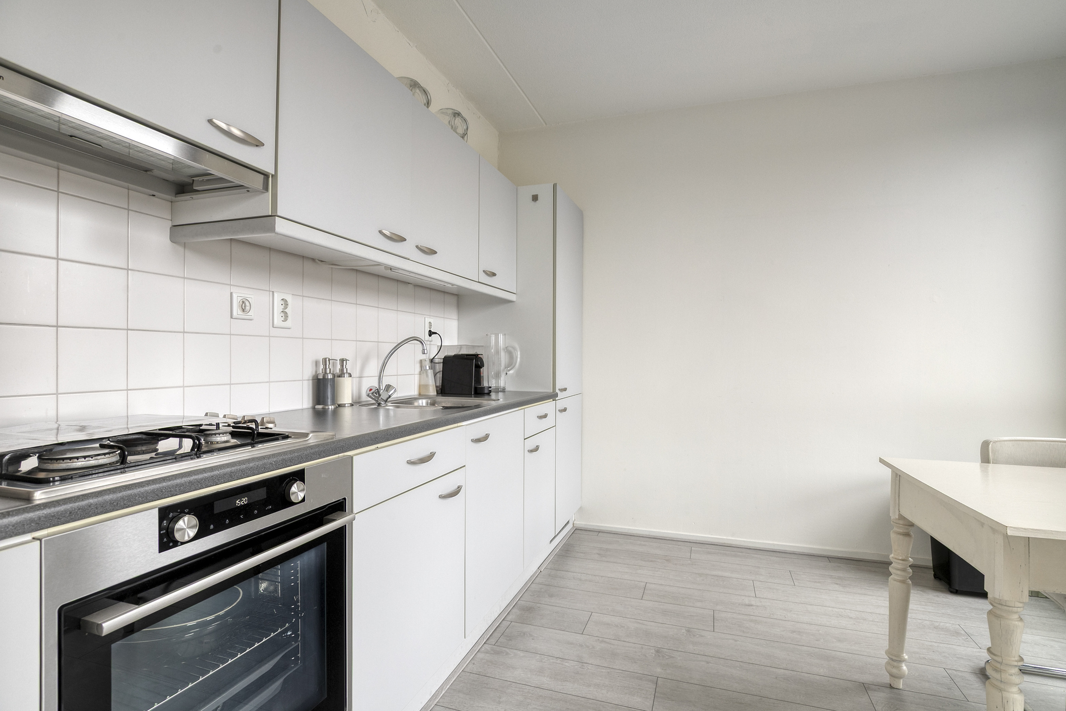 Het gehele appartement is strak afgewerkt met een doorlopende laminaatvloer, wat zorgt voor een rustige en uniforme uitstraling. In combinatie met de grote raampartijen maakt dit het appartement licht en verzorgd.