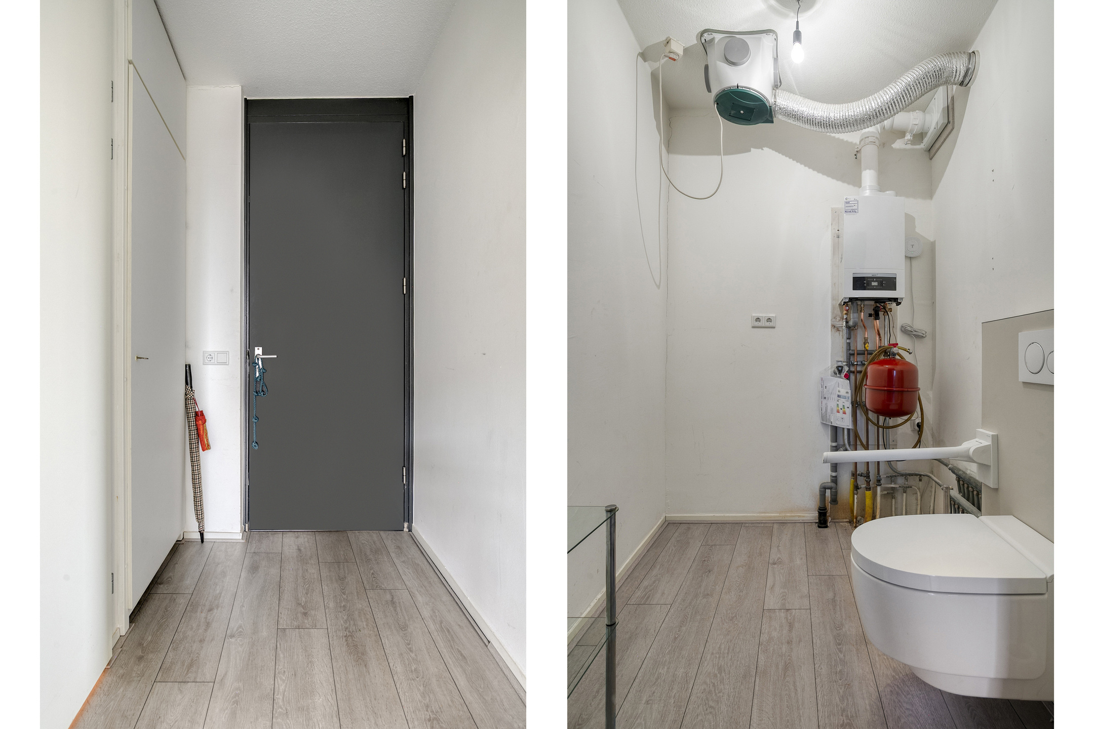 De toiletruimte is slim verplaatst naar de voormalige stookruimte. Hierdoor is er extra ruimte gecreëerd en voelt het geheel comfortabeler aan. In deze ruimte bevinden zich tevens de cv-ketel (2025) en de mv-unit en vooralsnog de aansluiting voor de wasmachine. De oorspronkelijke toiletruimte is nog aanwezig en biedt, met enkele kleine aanpassingen, de mogelijkheid om hier een aparte wasruimte te realiseren met wasmachineaansluiting.