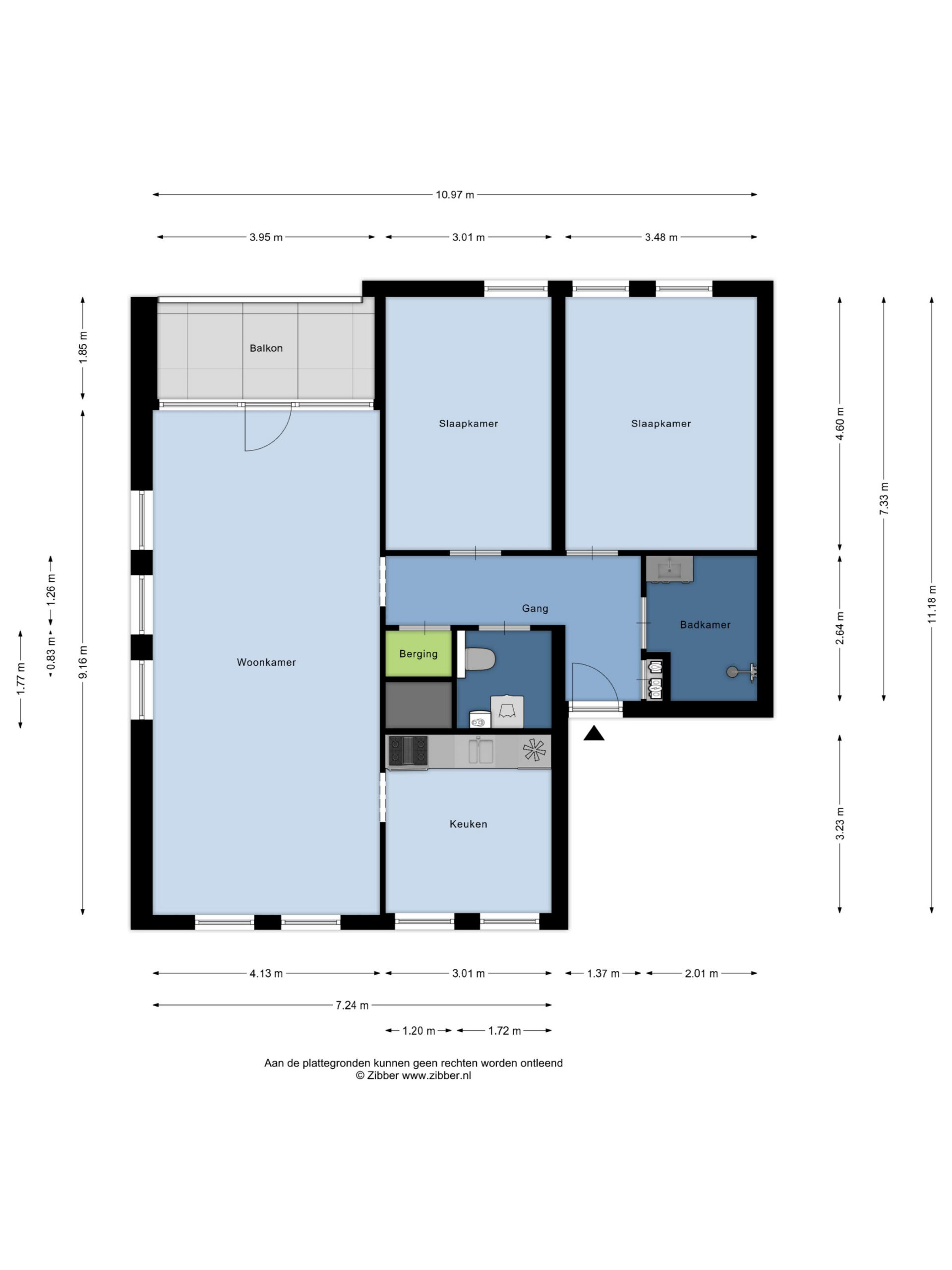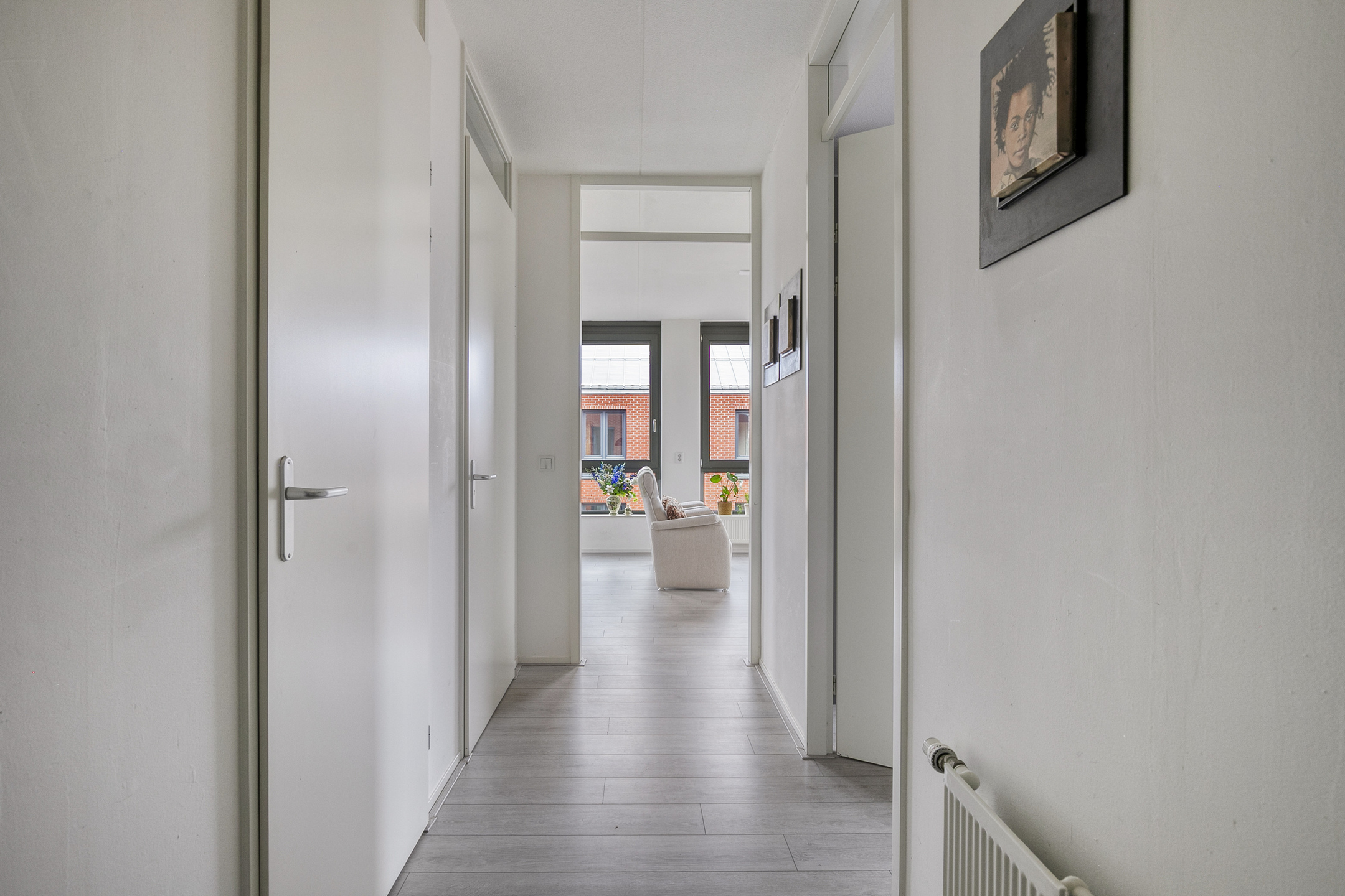 Bij binnenkomst in het appartement valt direct de ruime L-vormige hal op, die toegang biedt tot alle vertrekken. Vanuit de entree loopt de indeling logisch en praktisch door de woning.