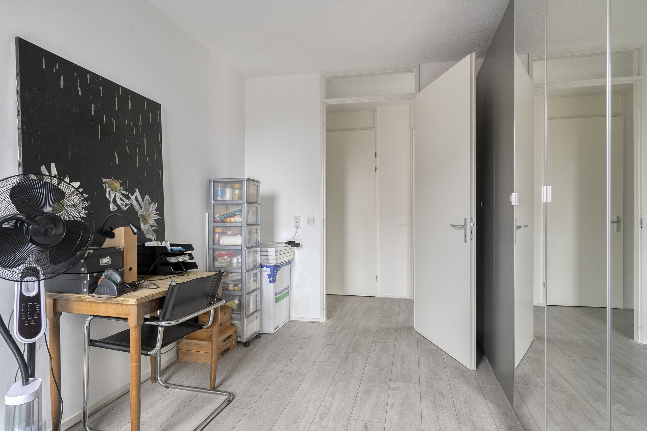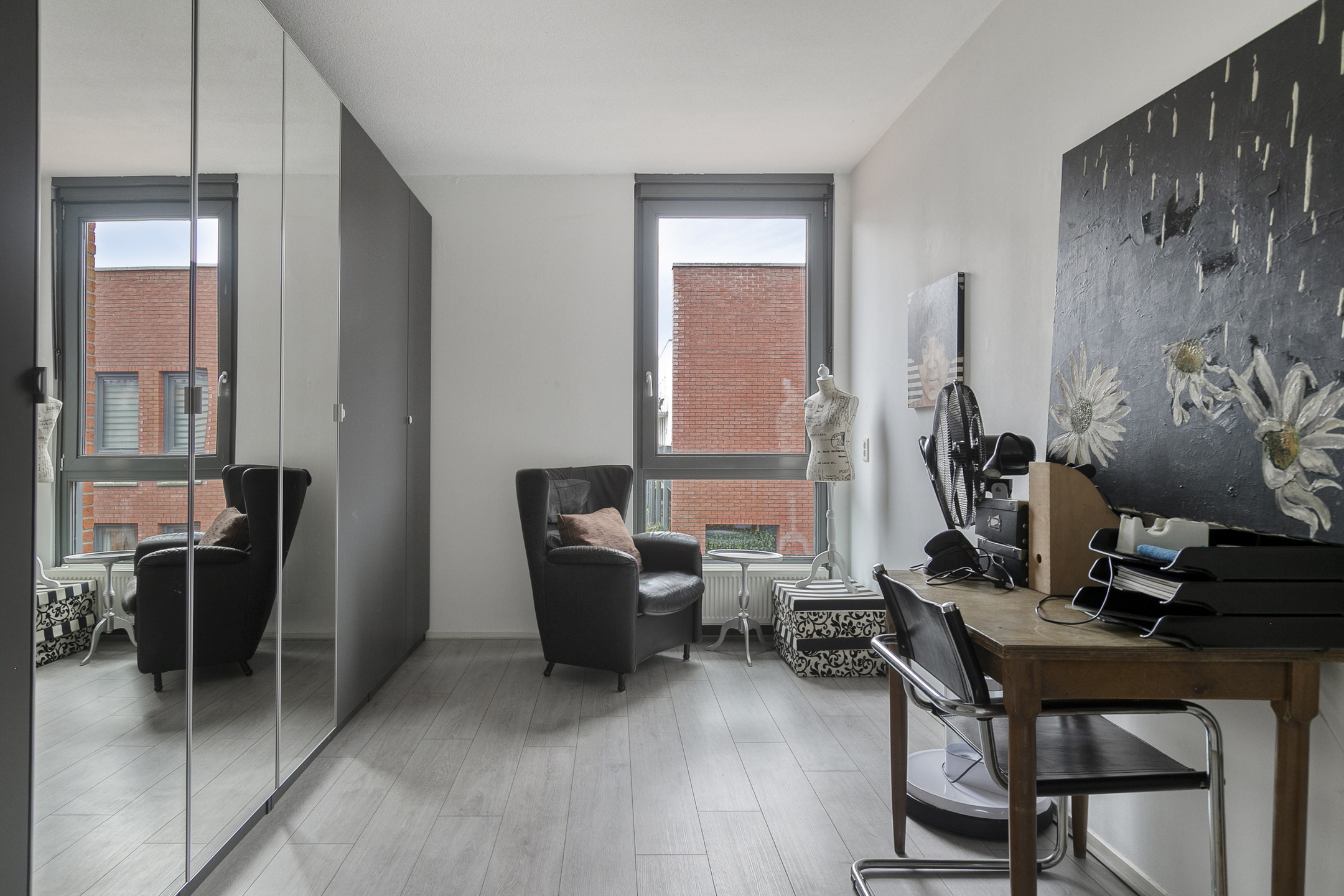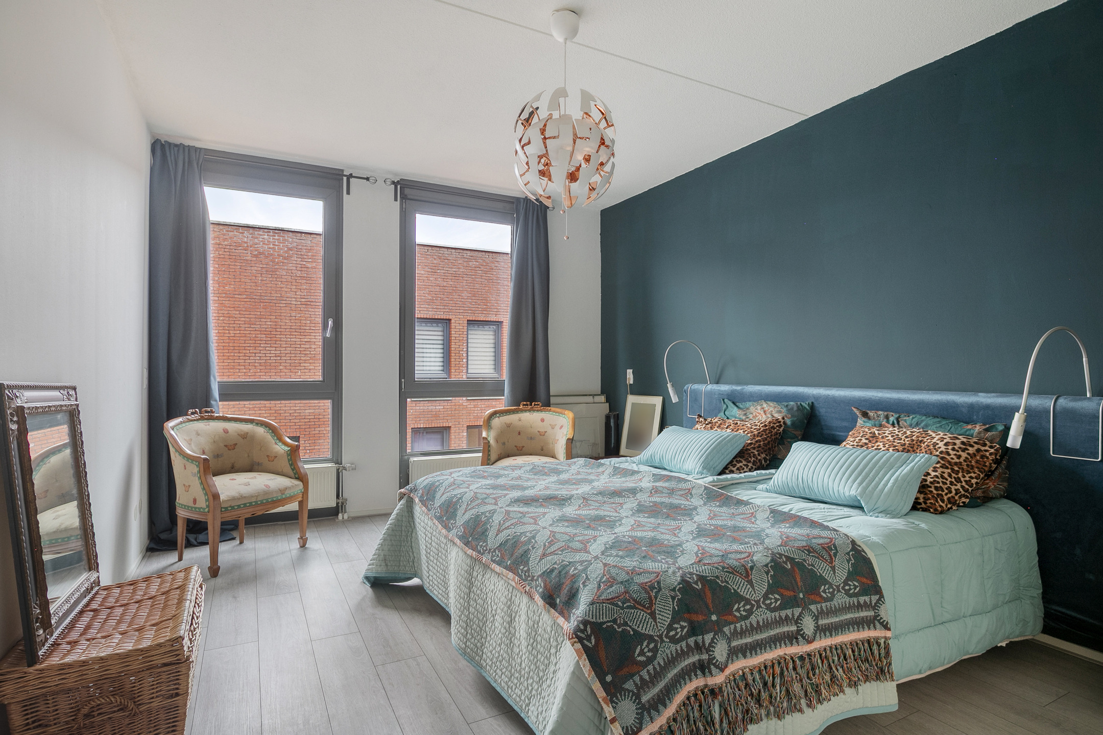 Verderop in de hal bevinden zich de twee slaapkamers. Beide kamers hebben een royaal formaat en zijn flexibel in te delen als hoofdslaapkamer, werkkamer of logeerkamer. Dankzij de grote ramen is hier sprake van een fijne lichtinval.
