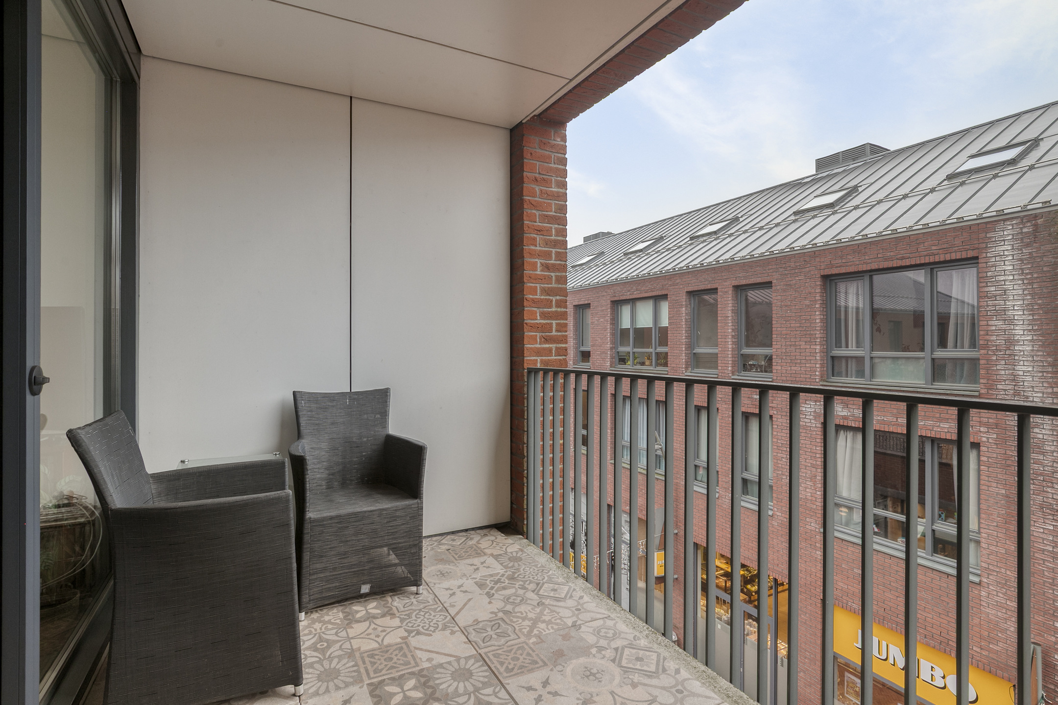 Vanuit de woonkamer stap je zo het op het zuiden gelegen balkon op. Hier geniet je optimaal van de zon. De Portugese tegels geven het balkon een sfeervolle en unieke uitstraling. Er is voldoende ruimte voor een comfortabel zitje, zodat je hier heerlijk kunt ontspannen met een kop koffie.