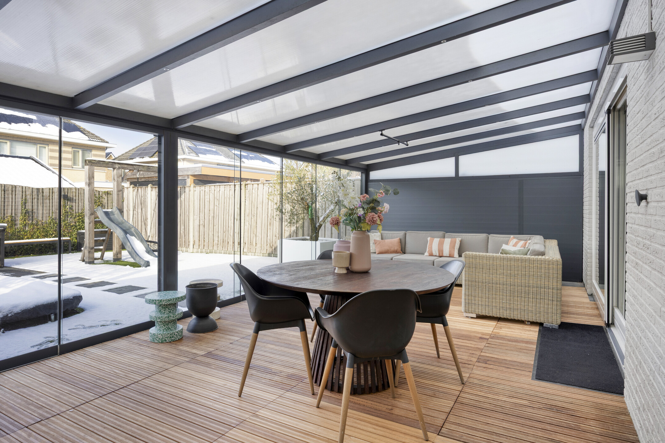 * Zeer ruime overkapping aanwezig, afsluitbaar middels glazen deuren