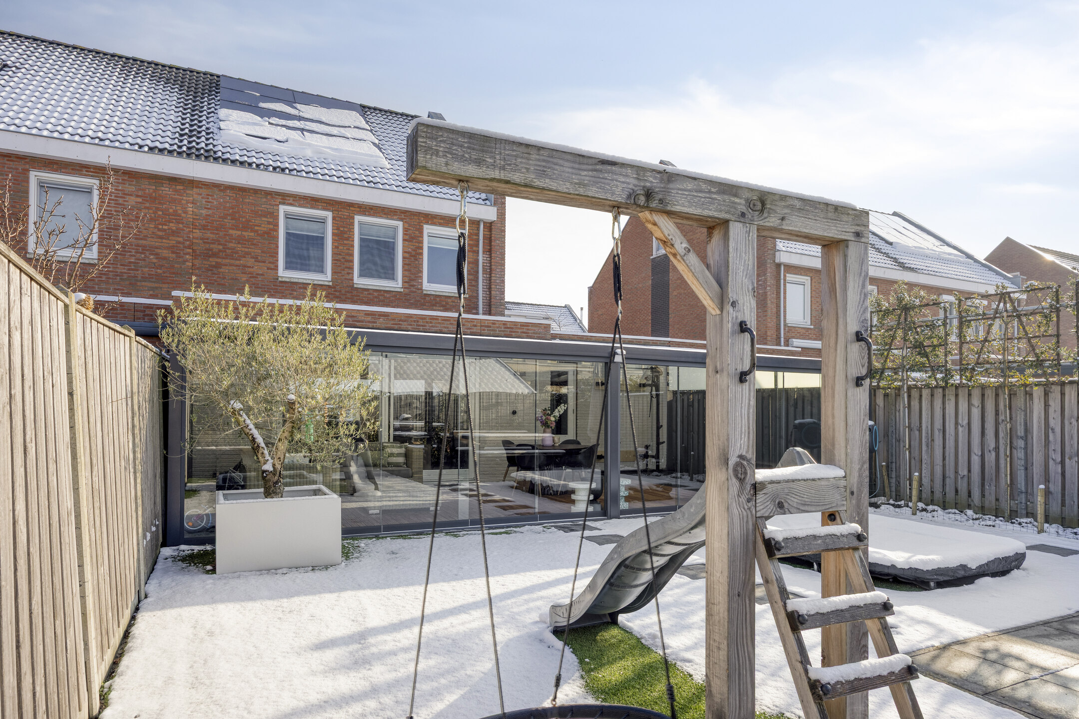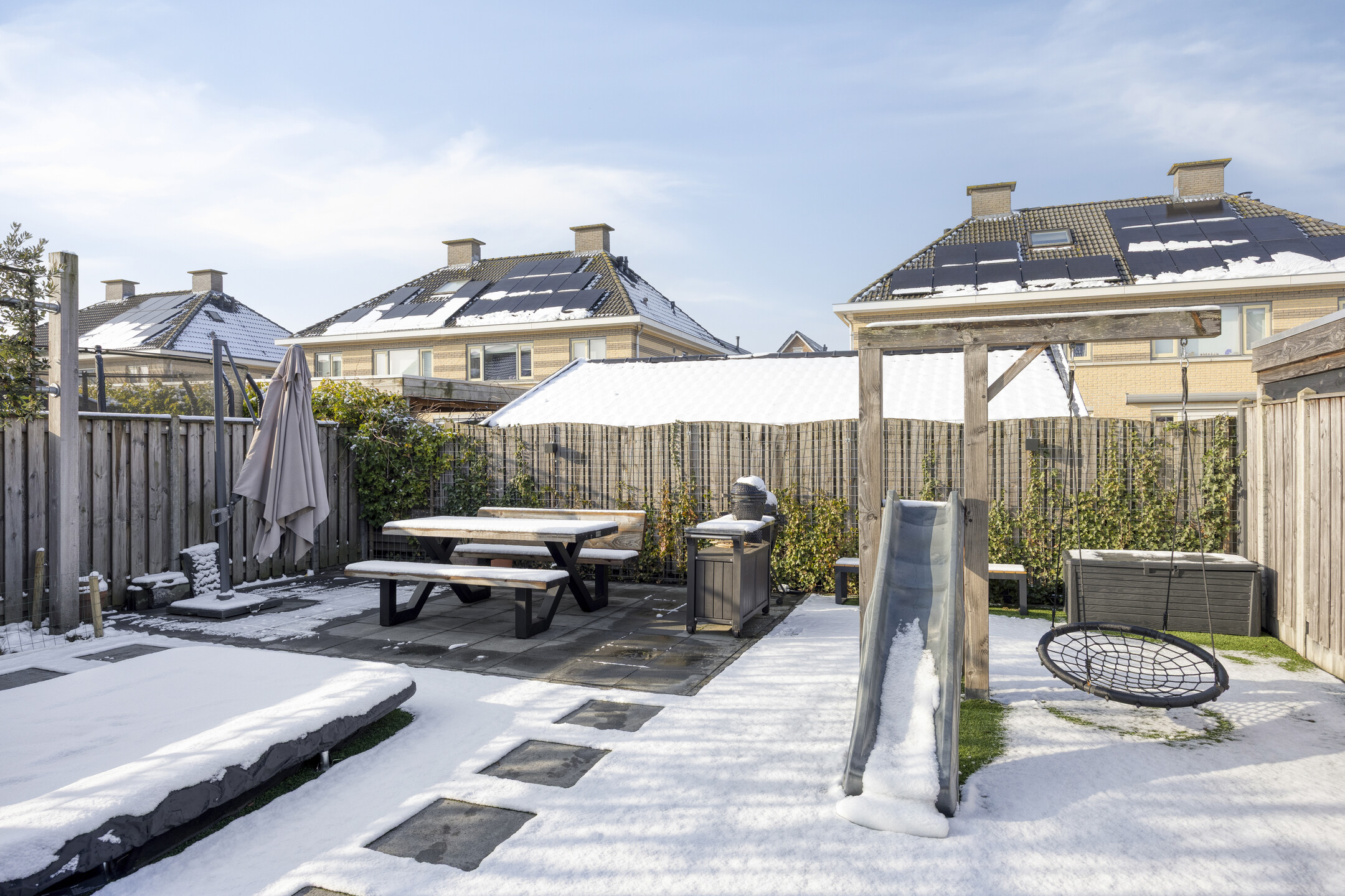 De achtertuin, die op het noordwesten is gesitueerd, is heerlijk breed en biedt alle ruimte voor het organiseren van tuinfeestjes en barbecues. In de overkapping is het tot in de late uurtjes heerlijk toeven en de tuin is verder aangelegd met kunstgras, beplanting en bestrating.