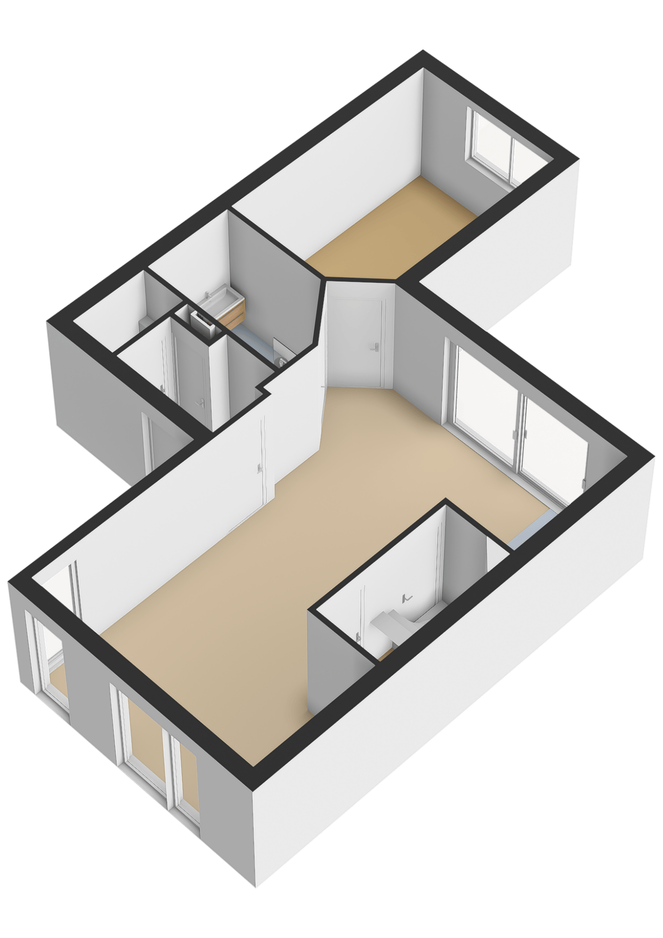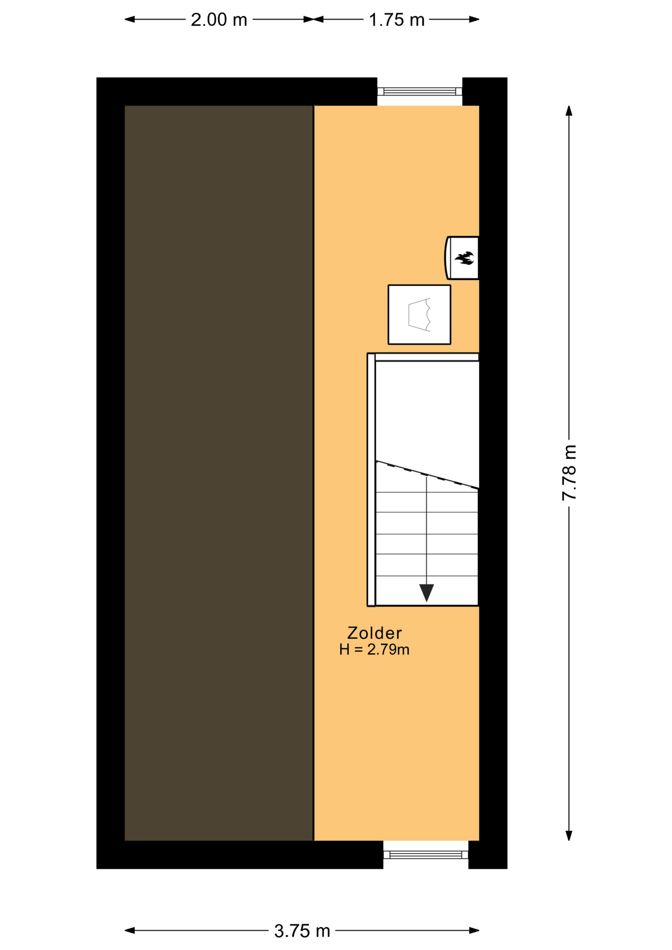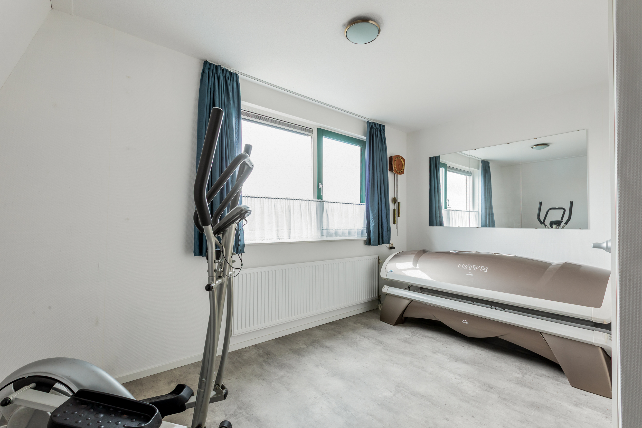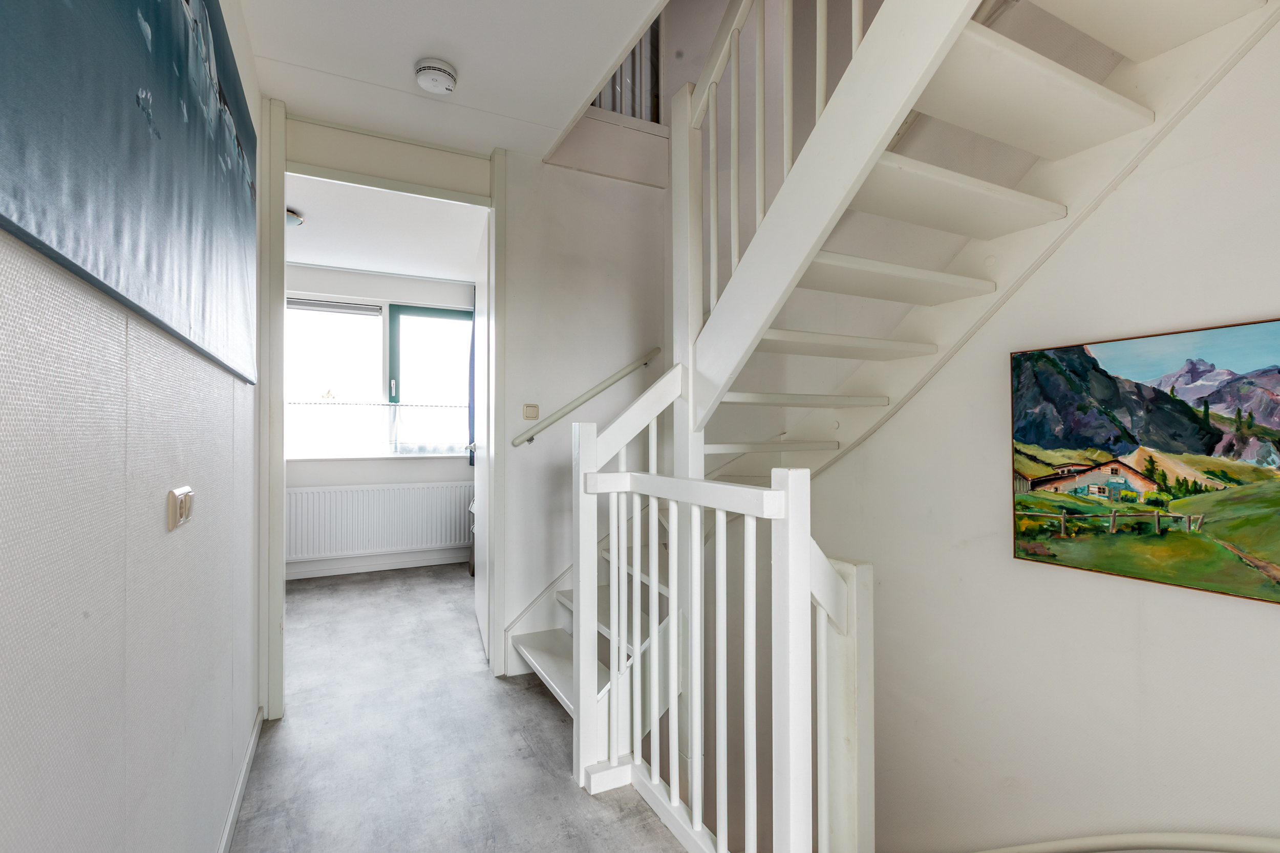 Maak gebruik van de vaste trap en je bereikt de zolderverdieping, die op dit moment ingericht is als 1 grote open ruimte. Dankzij een raam in zowel de voor- als achtergevel beschik je reeds over natuurlijke daglichttoetreding, waardoor je hier gemakkelijk een fijne hobby- of werkplek realiseert. Je treft hier tevens een vinylvloer, de opstelling voor de cv-installatie, de omvormer voor de zonnepanelen, de mv-unit en de aansluitingen voor de was- en droogapparatuur.