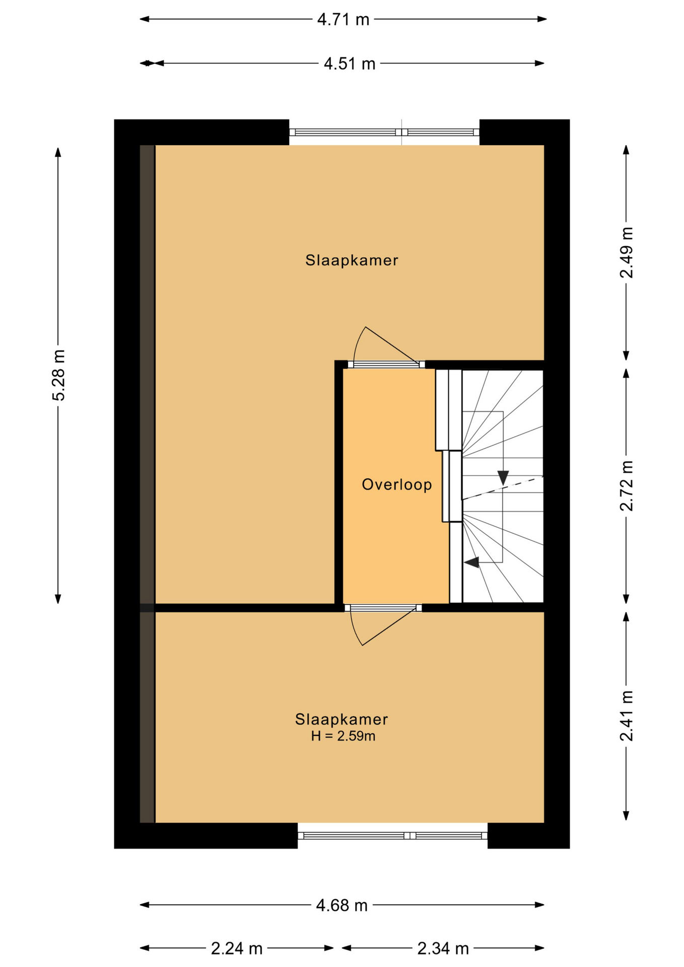 Maak gebruik van de afgesloten trapopgang vanuit de woonkamer en je bereikt de overloop van de 1e verdieping. Vanuit hier zijn de 2 slaapkamers en de trapopgang naar de zolderverdieping bereikbaar. De slaapkamers zijn beiden over de volle breedte van de woning gesitueerd en daardoor zeer ruim. Perfect als logeer- of hobbykamer! Beide slaapkamers en de overloop beschikken over een vinylvloer.