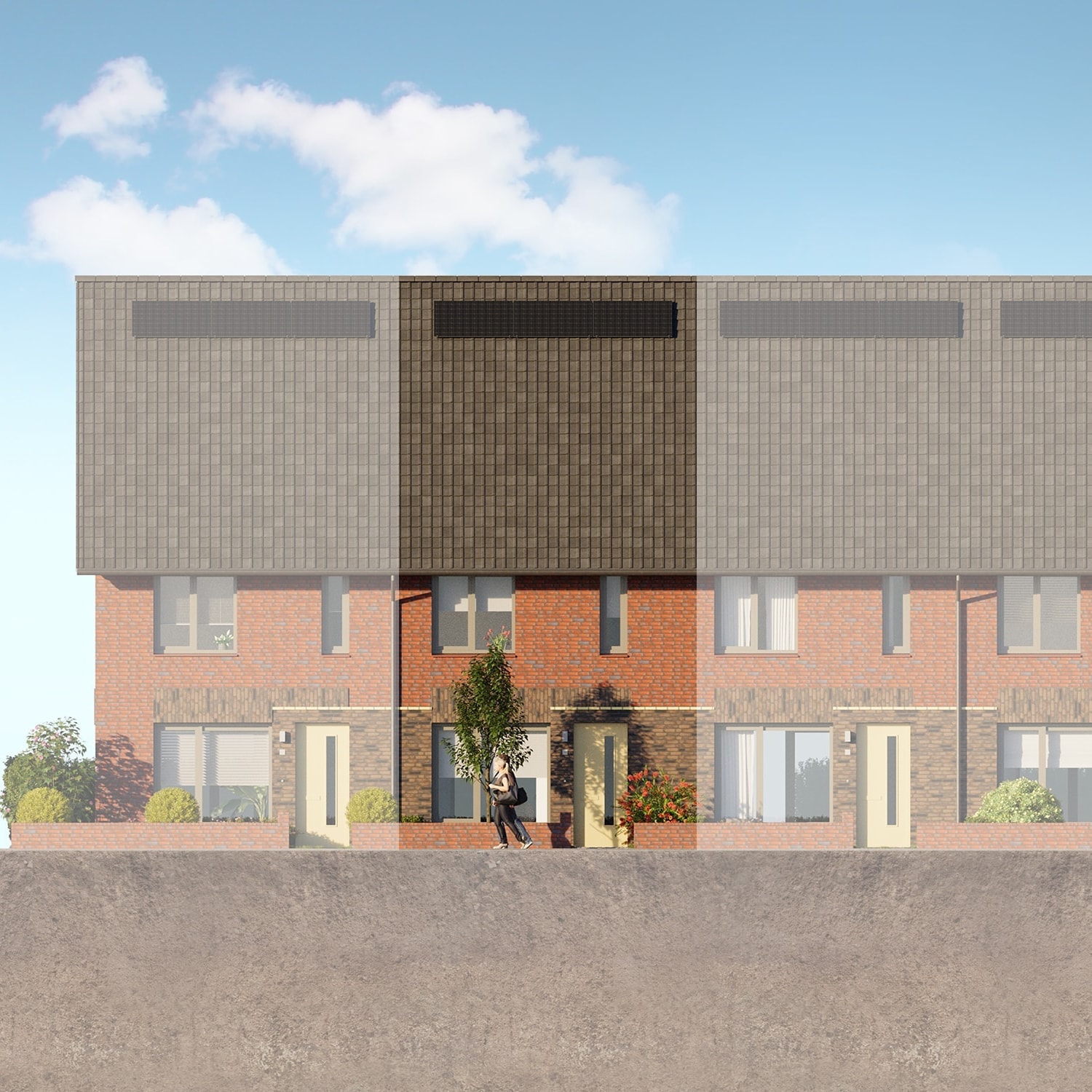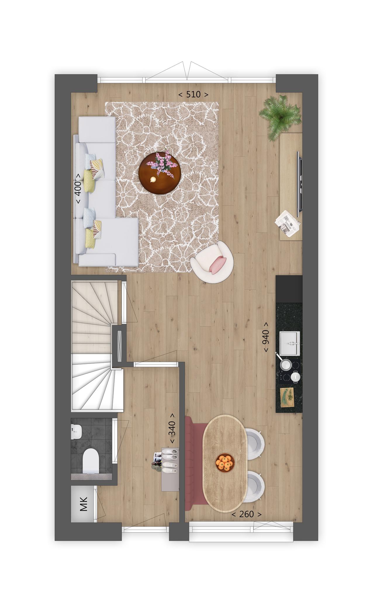 De tussenwoningen bieden een praktische indeling, met een ruime woonkamer en een nette tuin. Dankzij de compacte en slim ingedeelde opzet zijn deze woningen ideaal voor starters of jonge gezinnen. Bovendien profiteer je van lage energiekosten: de woningen zijn uitgerust met de meest moderne duurzame installaties, waaronder een bodemwarmtepomp. Deze verbruikt minder energie dan een luchtwarmtepomp en zorgt in de zomer bovendien voor verkoeling.