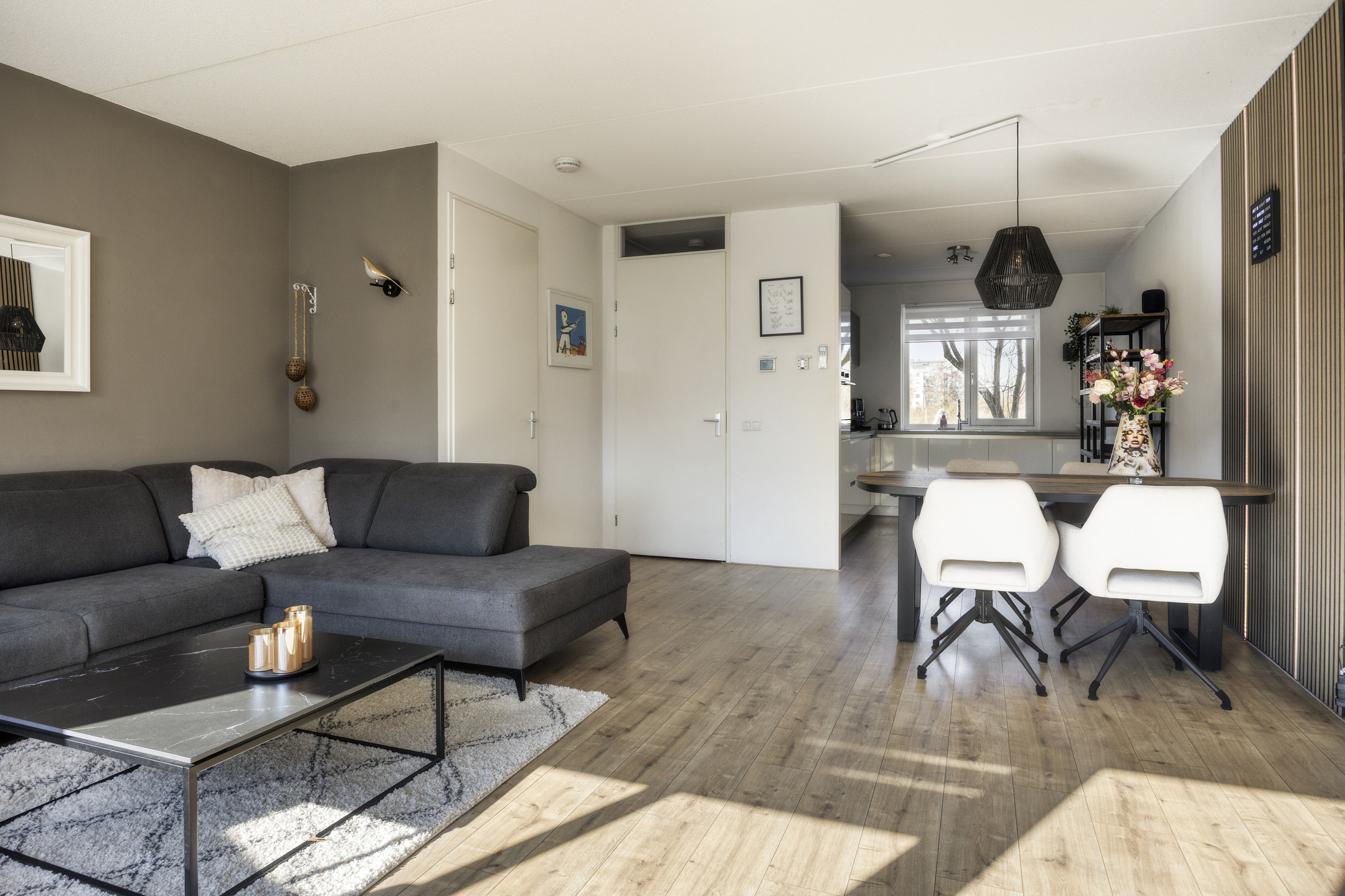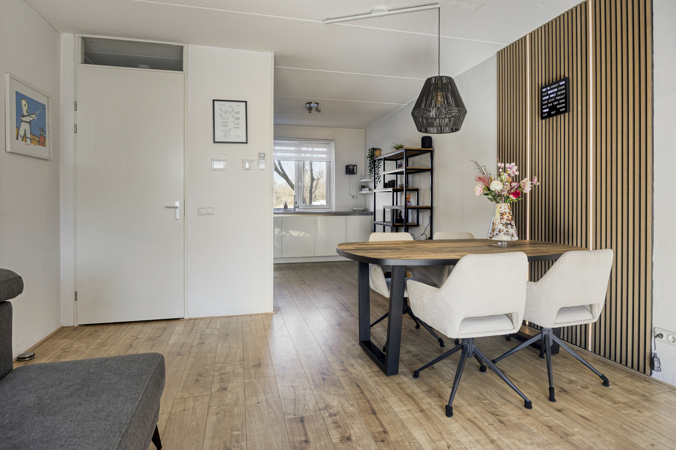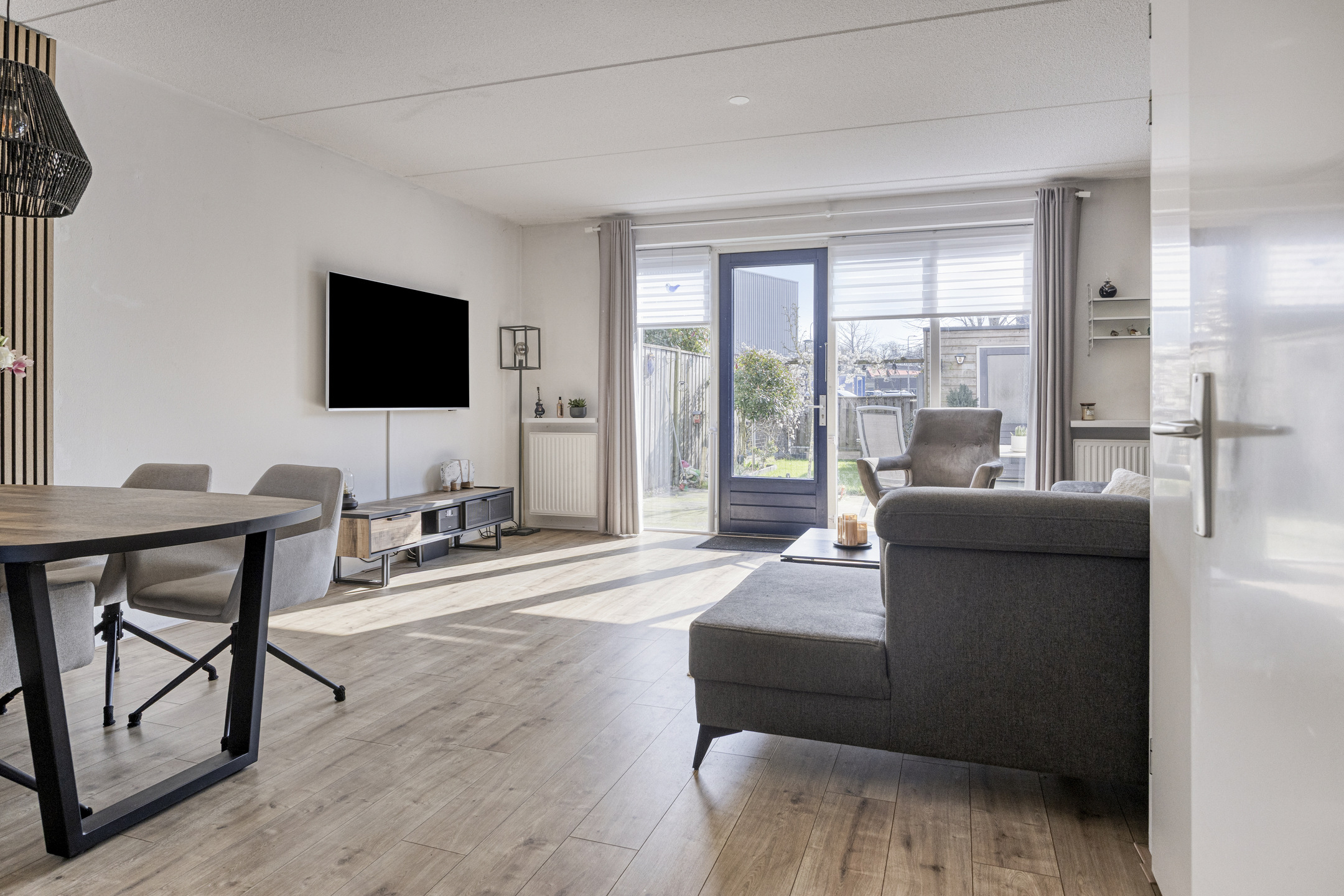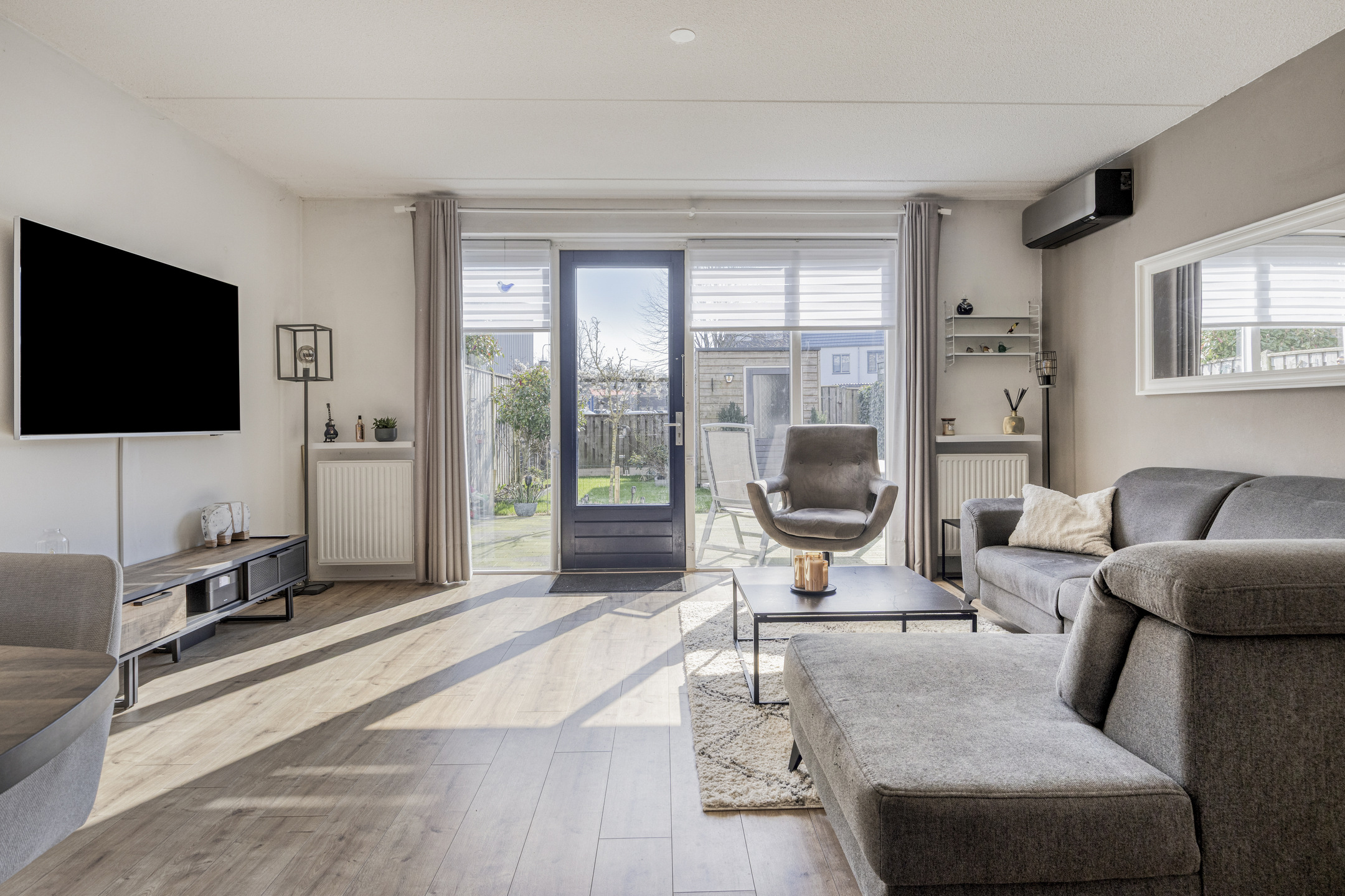 Lopend langs het water stap je de voortuin in, waar het direct genieten is. Neem plaats, ontspan en kijk uit over de voorbijvarende boten. Je komt binnen in de hal met de meterkast, de trapopgang naar de 1e verdieping, de toegang tot de woonkamer en de toiletruimte, die is betegeld in een rustige kleurstelling en is voorzien van een zwevend toilet en een fonteintje. Bij binnenkomst in de woonkamer is de zonnige ligging aan de achterzijde hetgeen wat meteen opvalt. Wat een daglicht! Dankzij de grote raampartijen voelt de ruimte heerlijk open aan en sta je direct in verbinding met de tuin. Hier heb je voldoende ruimte voor het plaatsen van een comfortabele zithoek en verder tref je hier een airconditioning (2025, kan tevens verwarmen), een praktische trapkast, een deur naar de tuin en een nette laminaatvloer. De eethoek staat in open verbinding met de hoekkeuken, die aan de voorzijde van de woning is gesitueerd. De kleuren van de keuken zijn modern en rustig en de aanwezige inbouwapparatuur betreft een koel-/vriescombinatie, een vaatwasser, een combimagnetron, een 4-pits inductiekookplaat en een RVS afzuigschouw. Wat het geheel écht bijzonder maakt, is het prachtige uitzicht op het water vanuit de keuken.