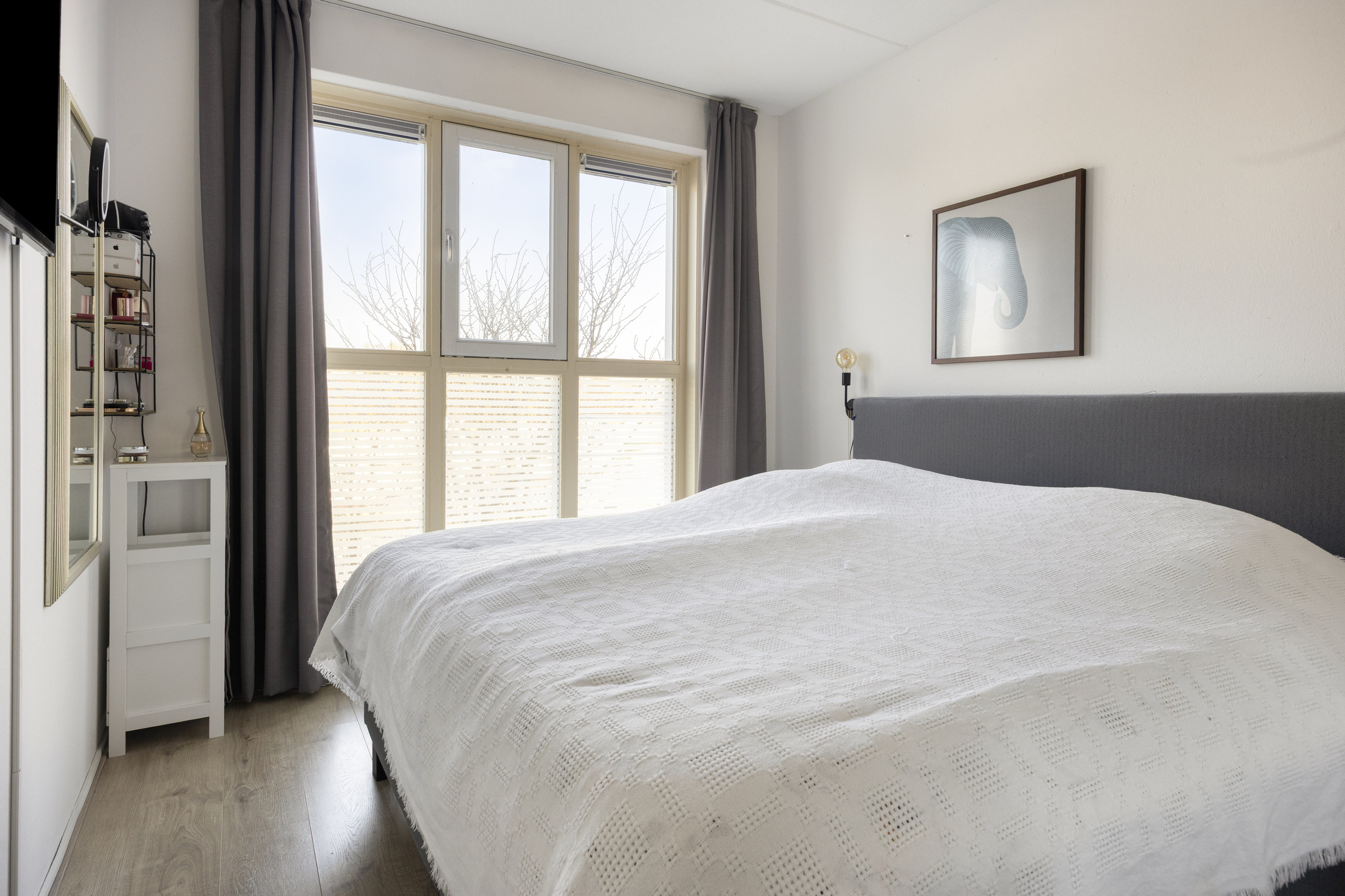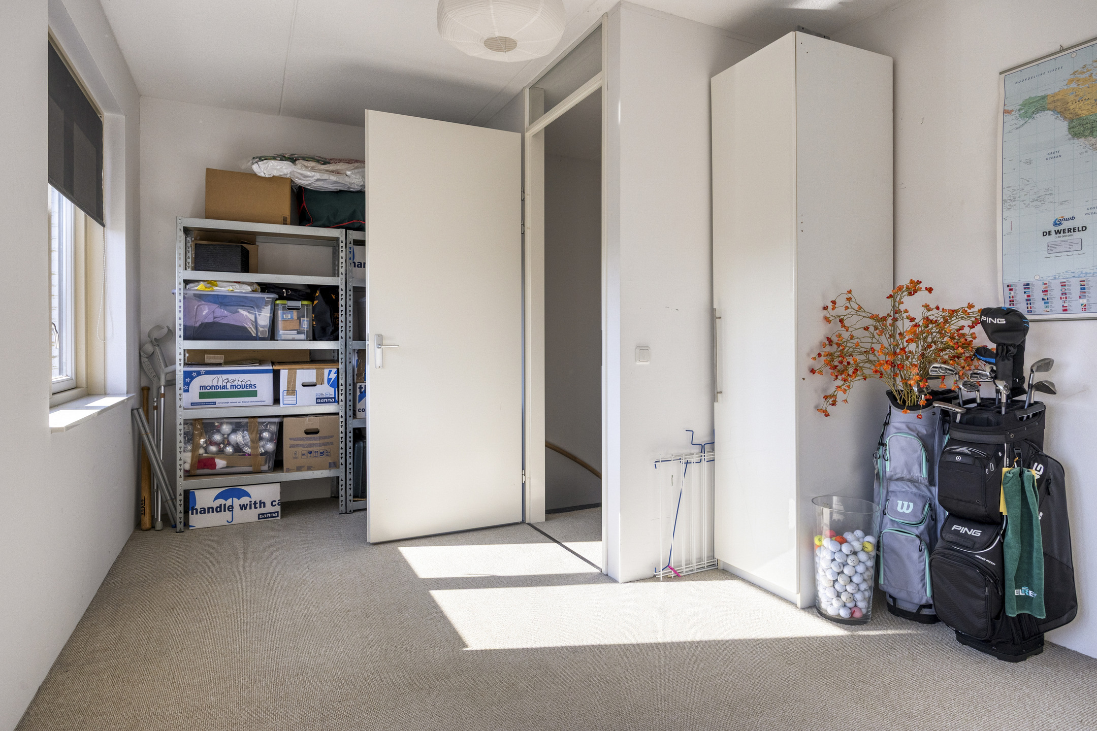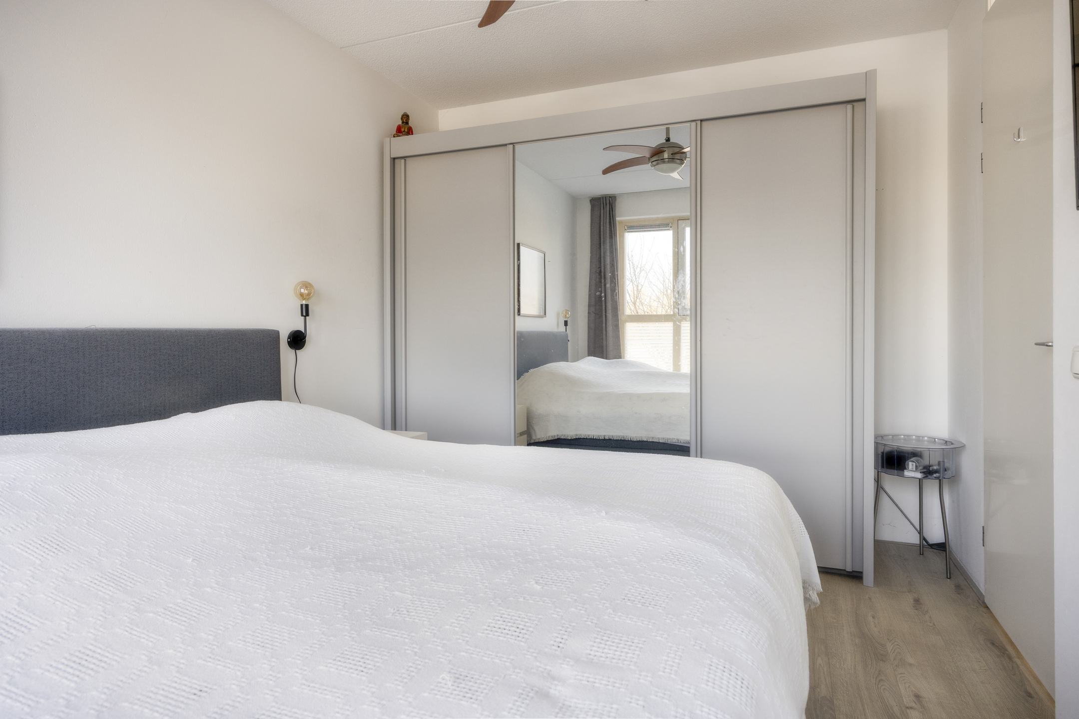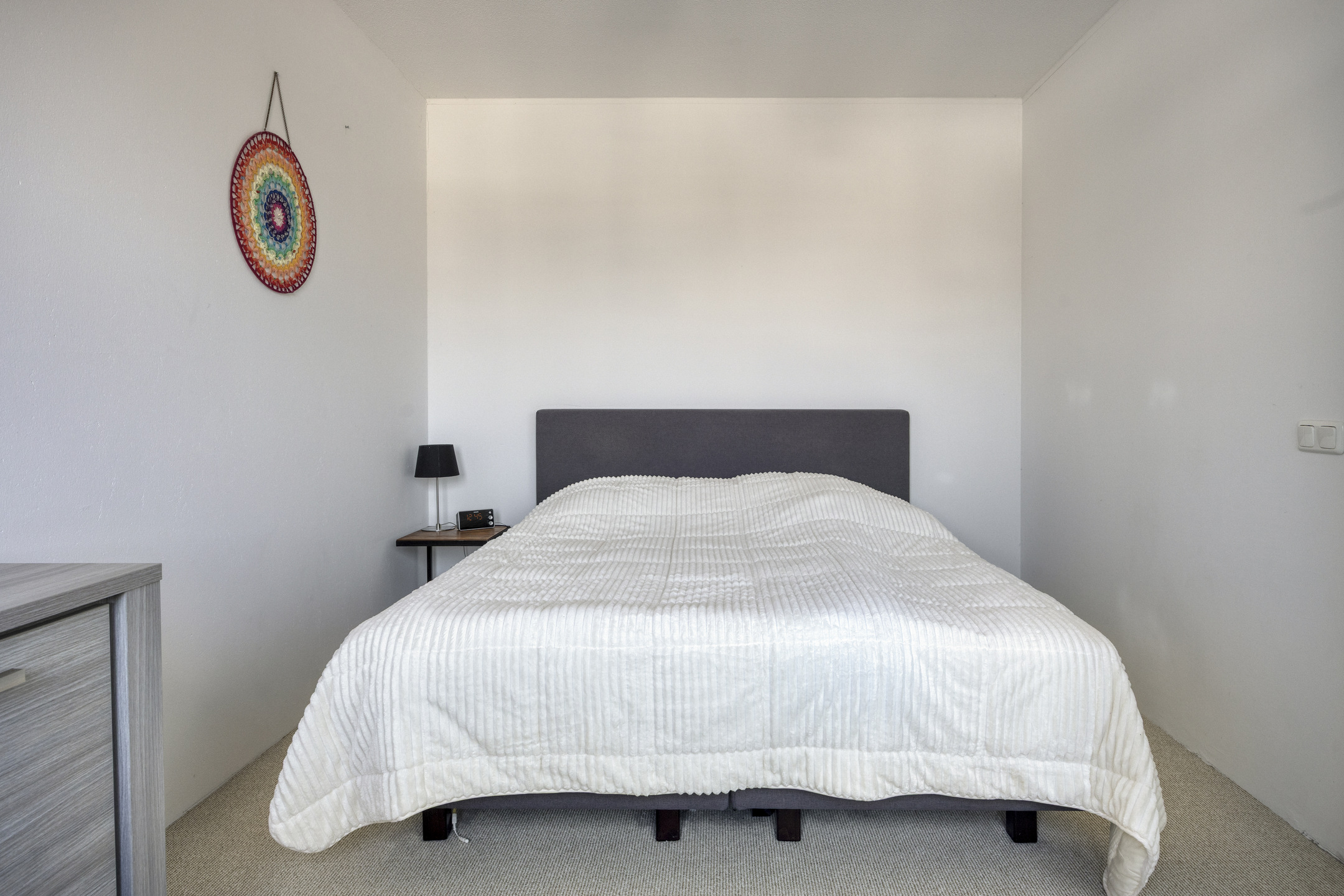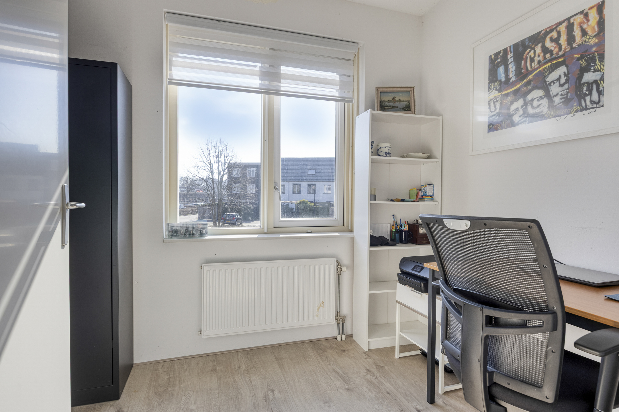 Vanaf de overloop zijn de 3 slaapkamers, de badkamer en de vaste trap naar de 2e verdieping bereikbaar. De slaapkamers kennen allemaal een praktische indeling en beschikken over grote raampartijen. De grootste slaapkamer is aan de voorzijde gelegen. De ramen in deze kamer lopen nagenoeg door tot de grond, waardoor je ook vanuit hier van een prachtig uitzicht geniet. De gehele verdieping is afgewerkt met eenzelfde laminaatvloer, wat het geheel een rustige uitstraling geeft. De badkamer is van vloer tot plafond betegeld in een nette kleurstelling en is ingericht met een inloopdouche met glaswanden, een tweede zwevend toilet, een designradiator, 2 wastafels en planchetten.