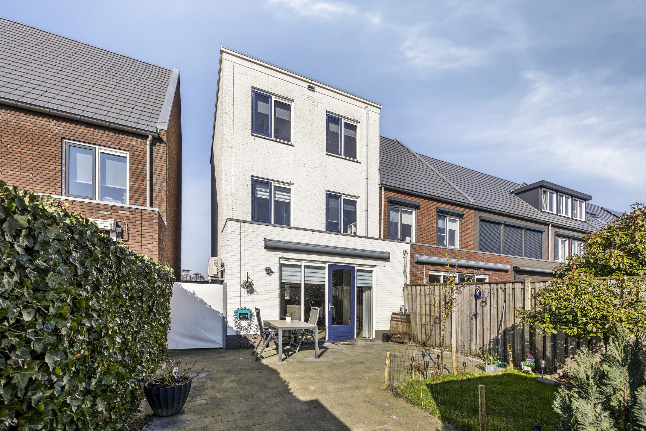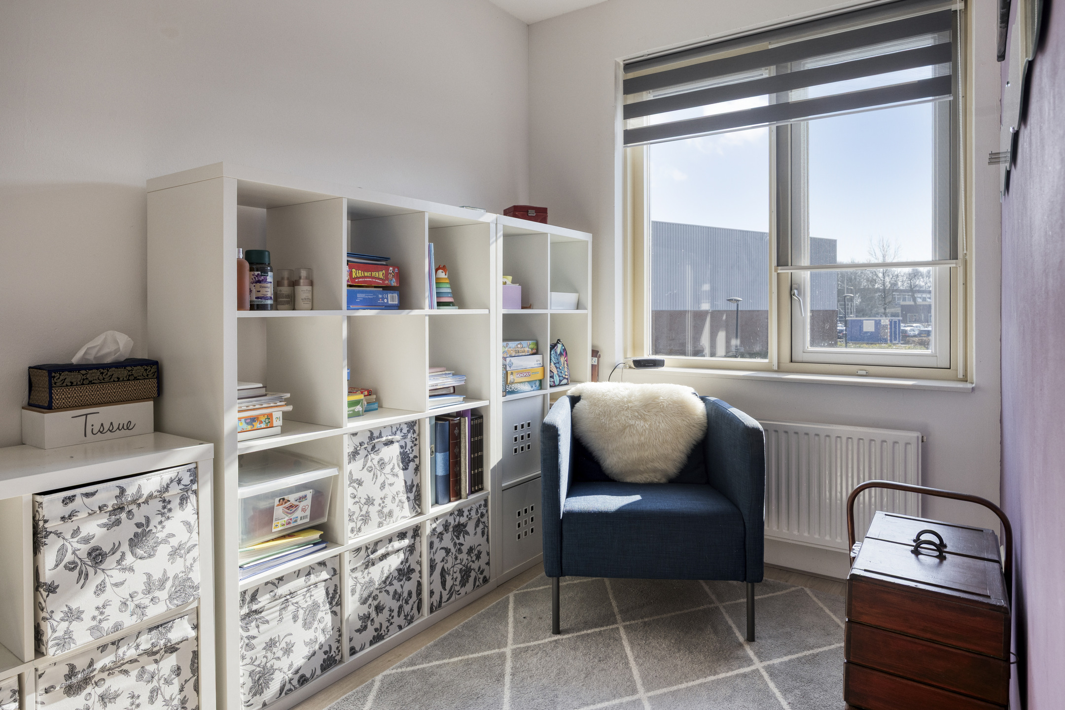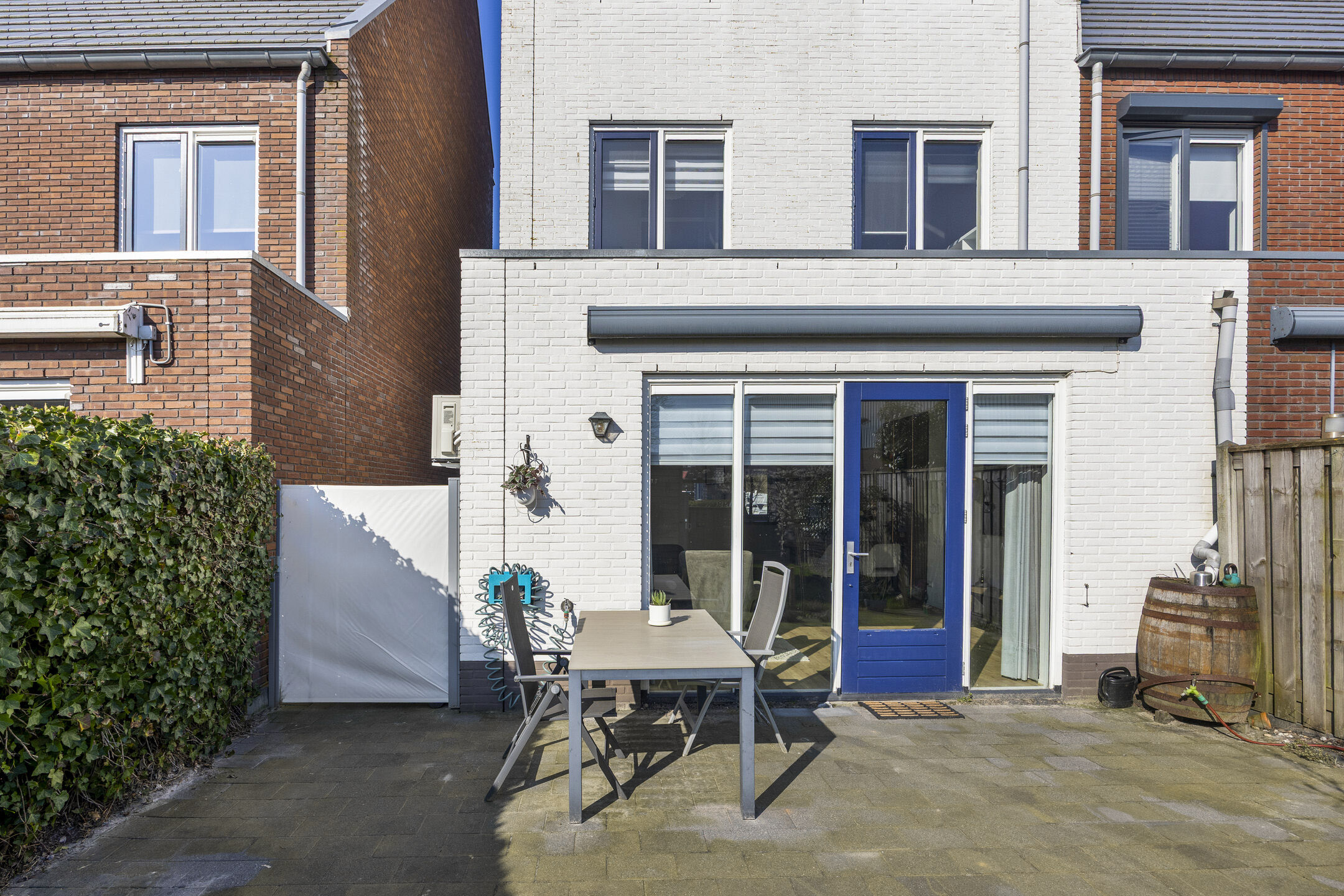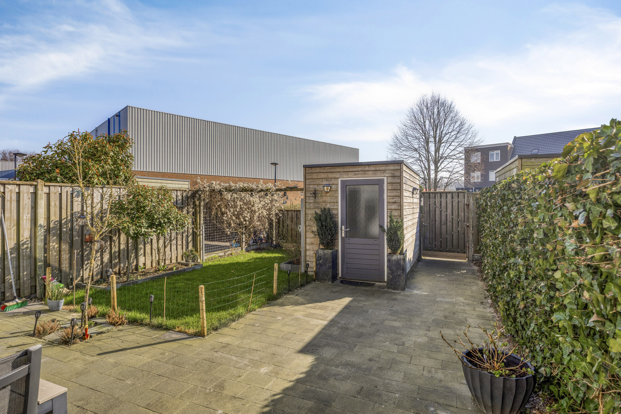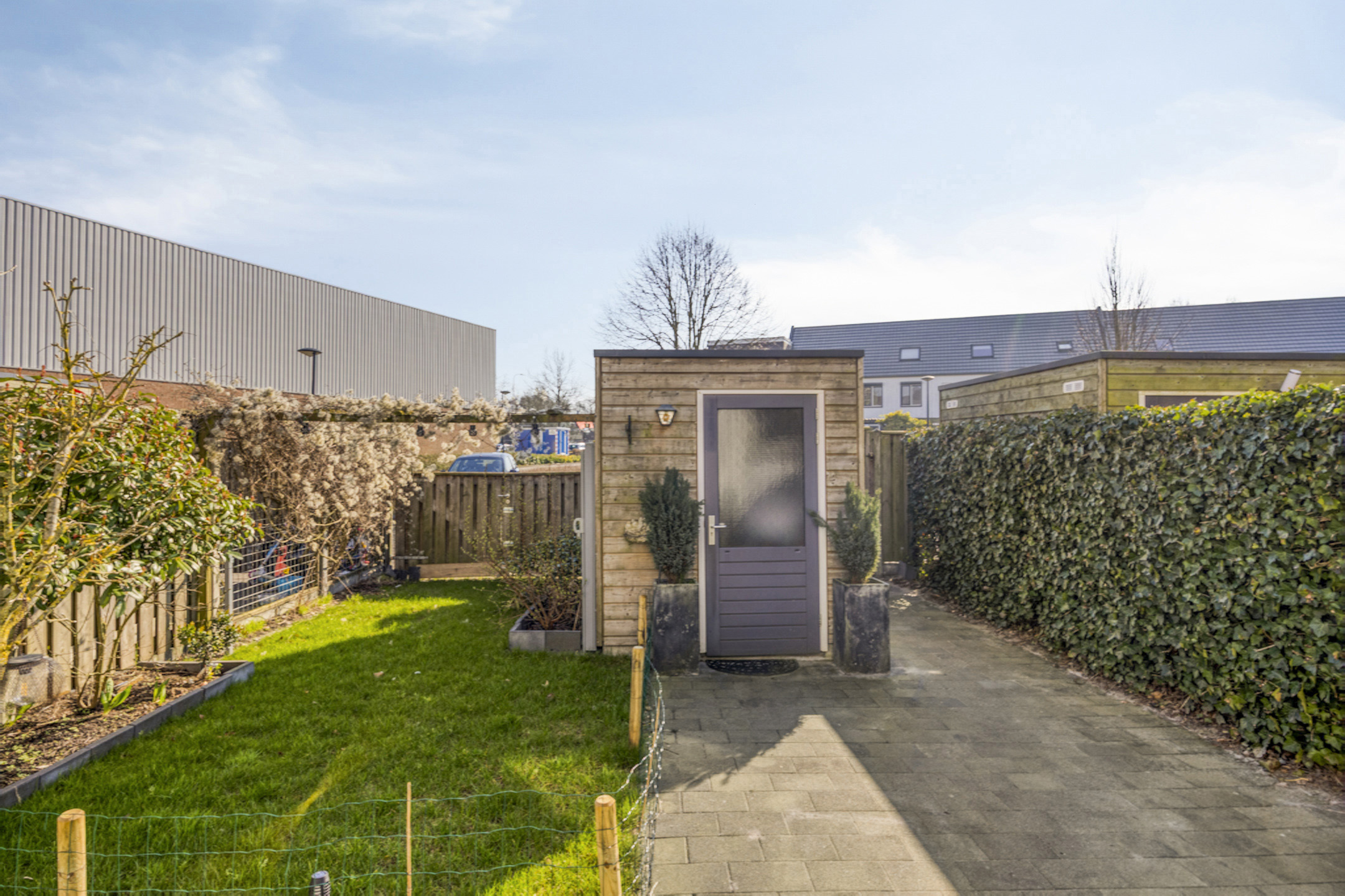 Vanuit de woonkamer stap je hier zo de zonnige tuin in! Met de ligging op het zuiden kun je al vroeg in het jaar genieten van de lente. Wordt het toch wat te warm? Dan maak je met een druk op de knop gebruik van het elektrische zonnescherm. De tuin is aangelegd met een stukje gras, beplanting en bestrating. De berging (voorzien van elektra) leent zich perfect voor het stallen van de fiets en tuingereedschap. Fijne extra: deze woning beschikt over een afsluitbare achterom. Dankzij de lage, dubbele deuren kan je er hier ook voor kiezen de auto op eigen terrein te parkeren.