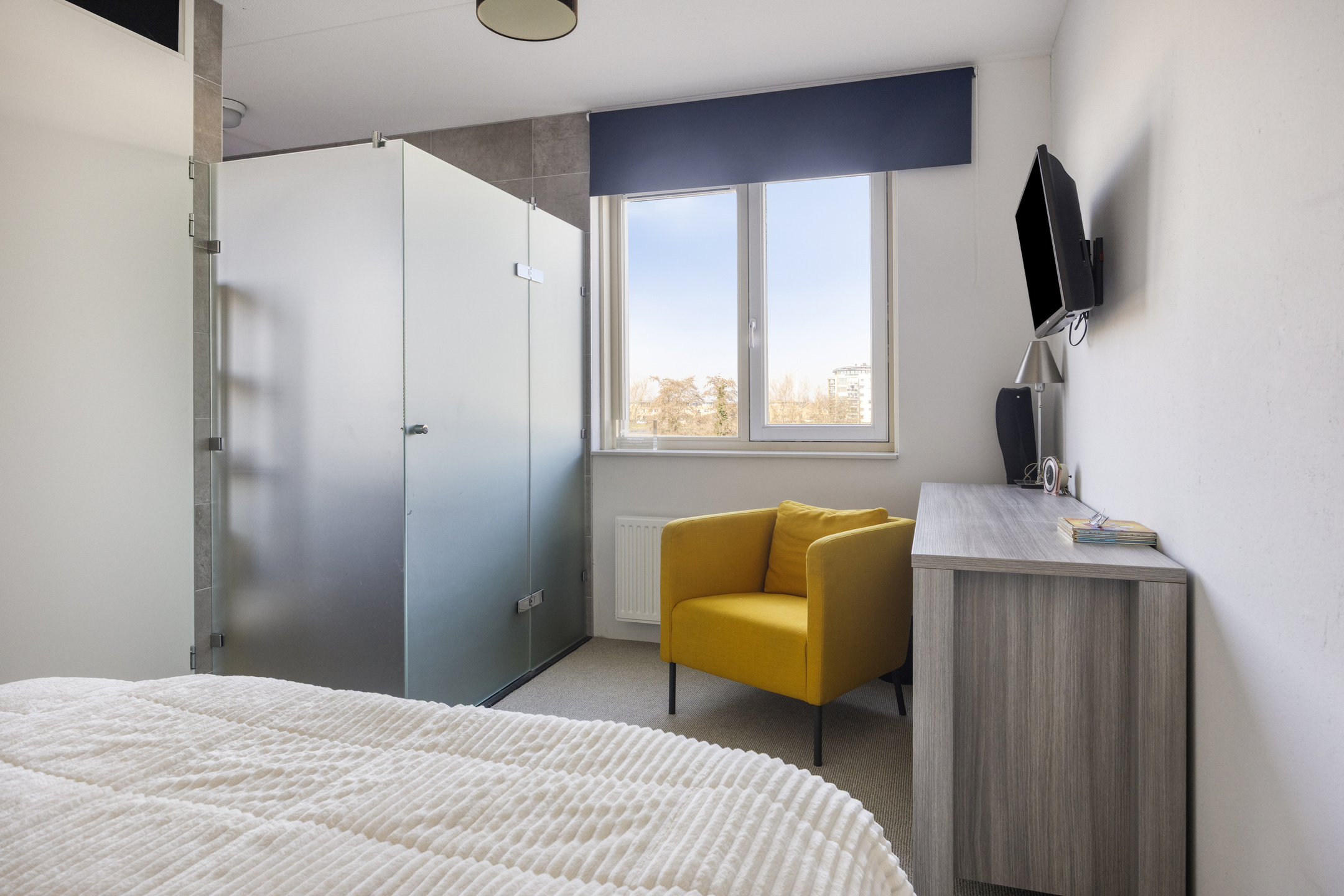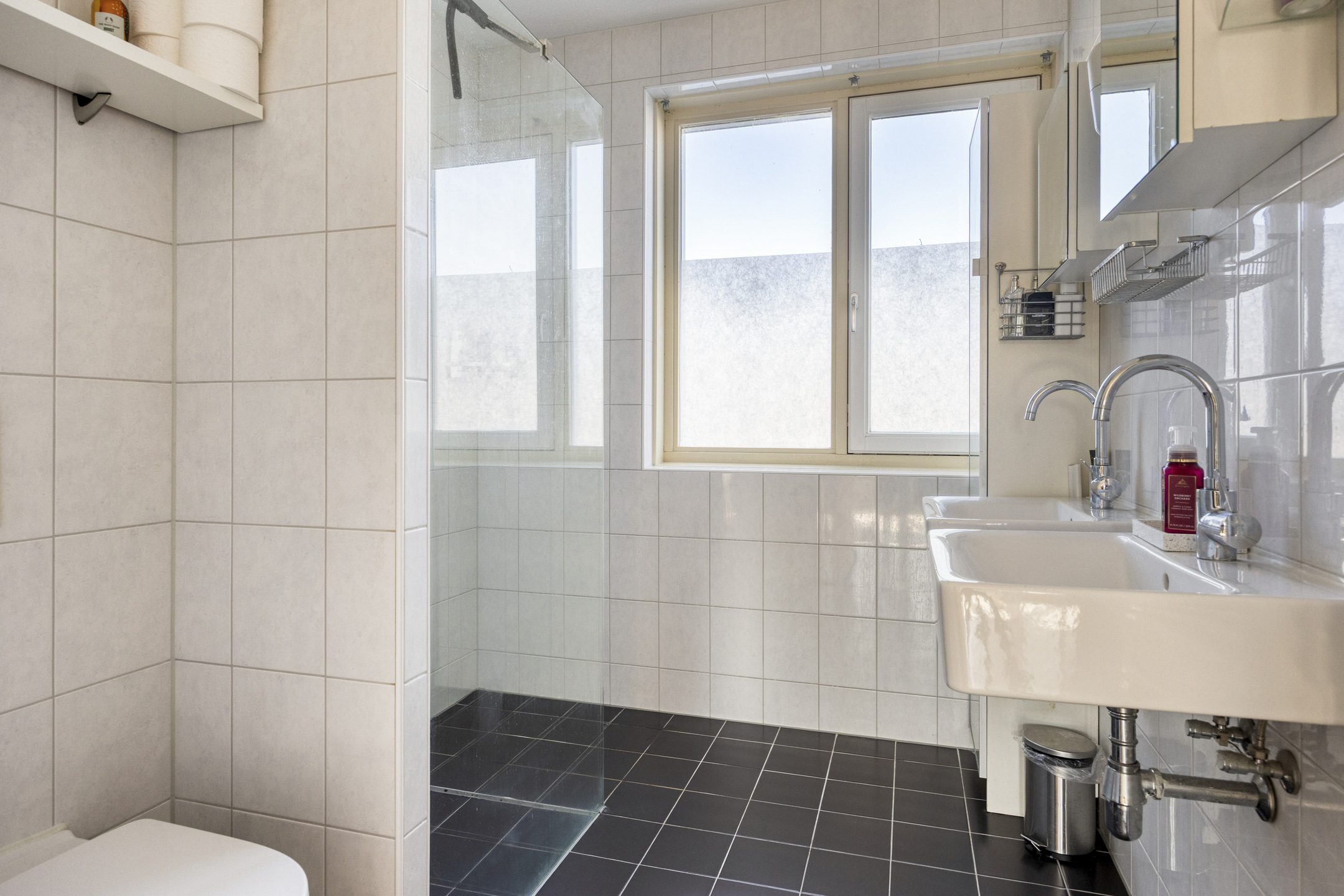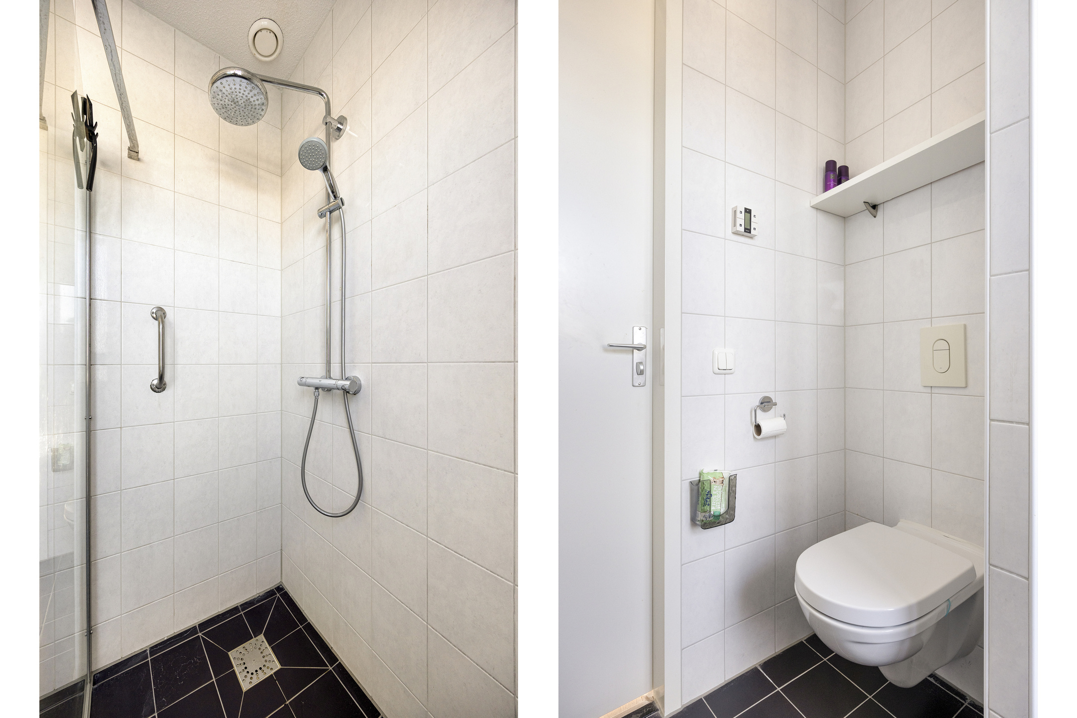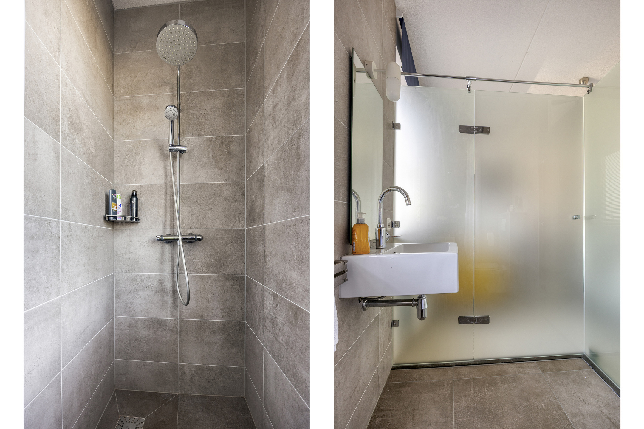 Vanaf de overloop op de 2e verdieping heb je toegang tot nog eens 2 slaapkamers en de kast met daarin de opstelling voor de cv-installatie, de aansluitingen voor de was- en droogapparatuur en de mv-unit. Allebei de slaapkamers op deze verdieping zijn, inclusief de overloop, voorzien van vloerbedekking. De slaapkamer die zich aan de voorzijde van de woning bevindt beschikt over een en-suite badkamer, die is ingericht met een inloopdouche, een zwevend toilet en een wastafel. De badkamer is middels melkglaswanden afgeschermd van de kamer. Licht én toch privacy, ideaal!