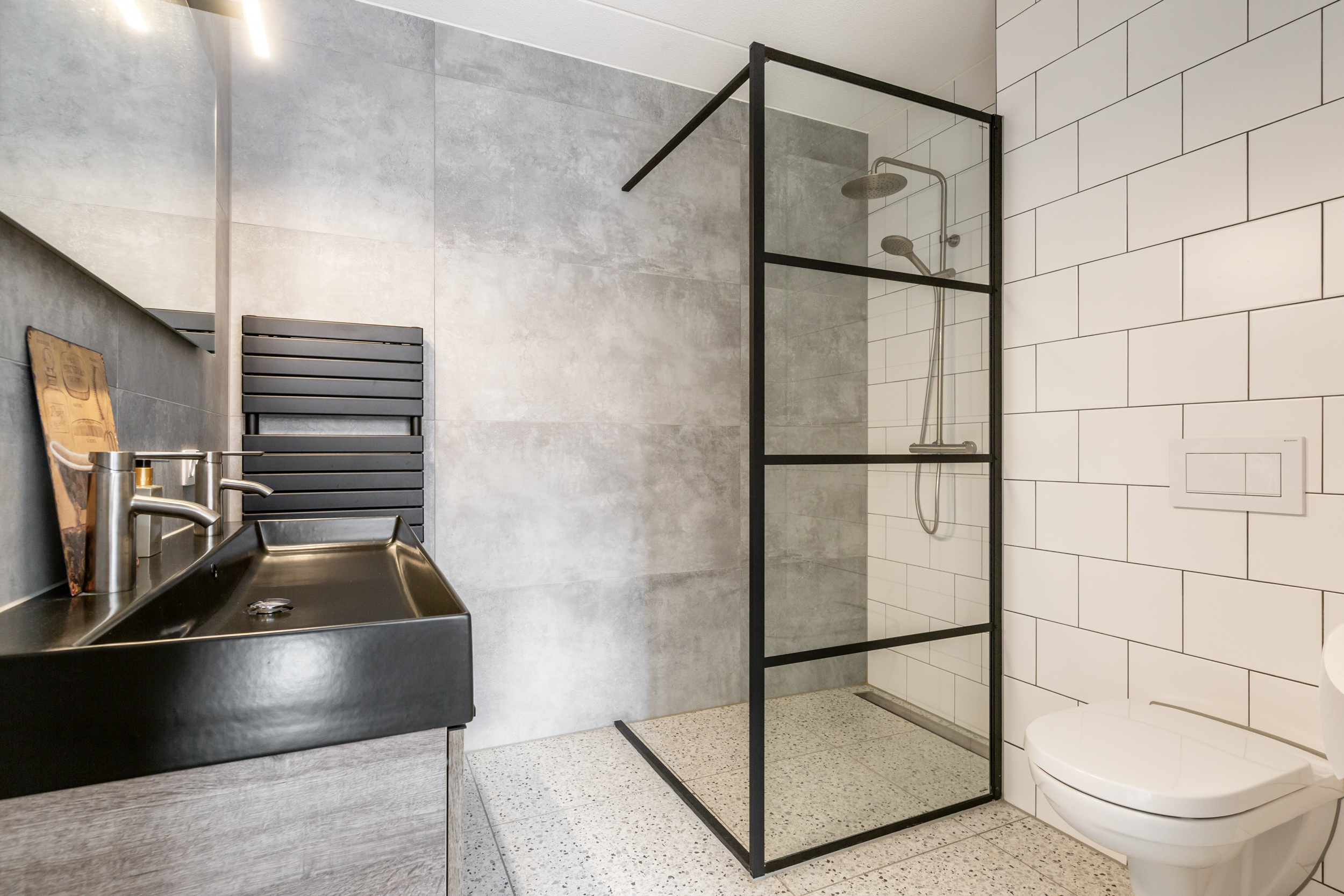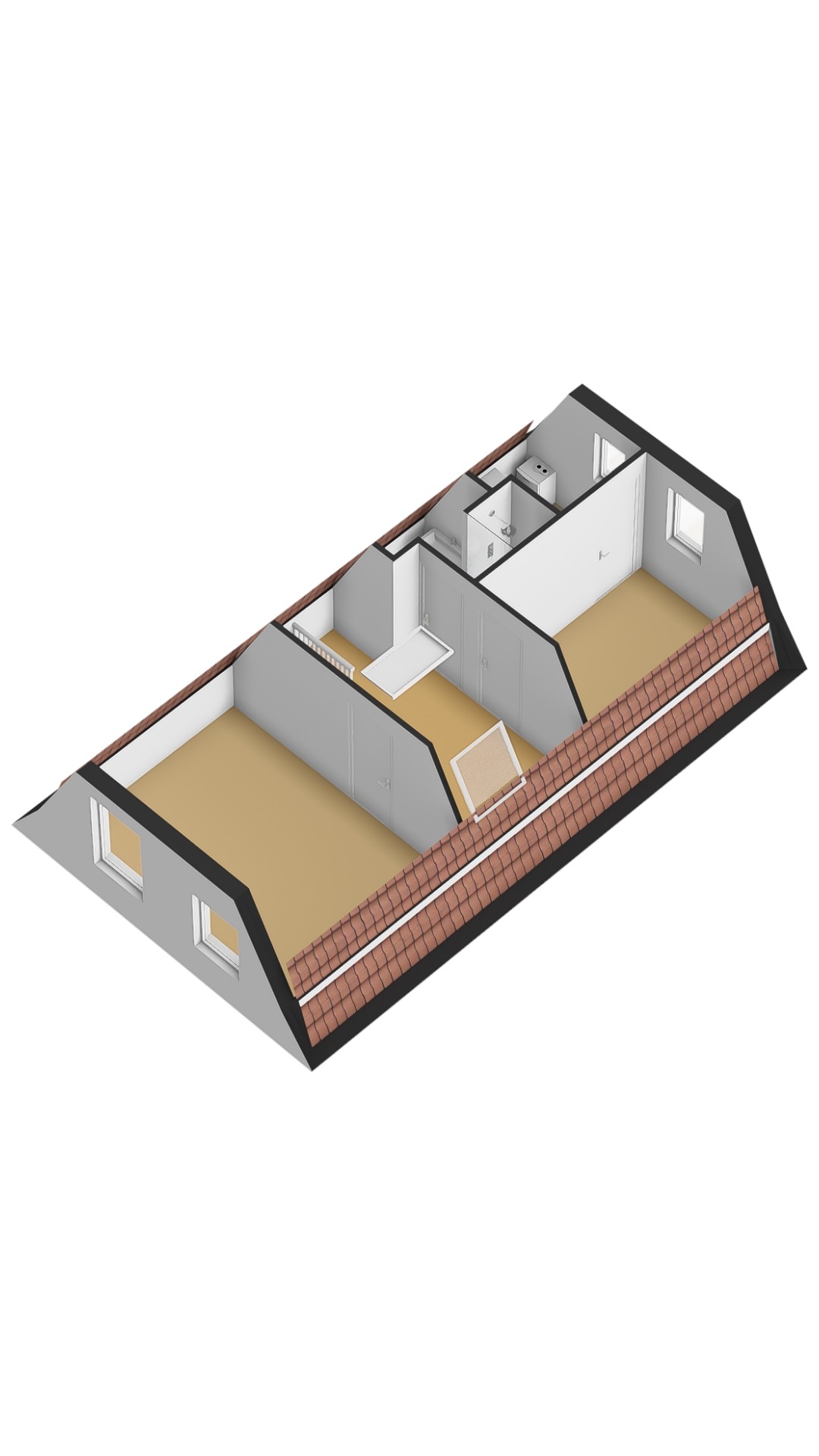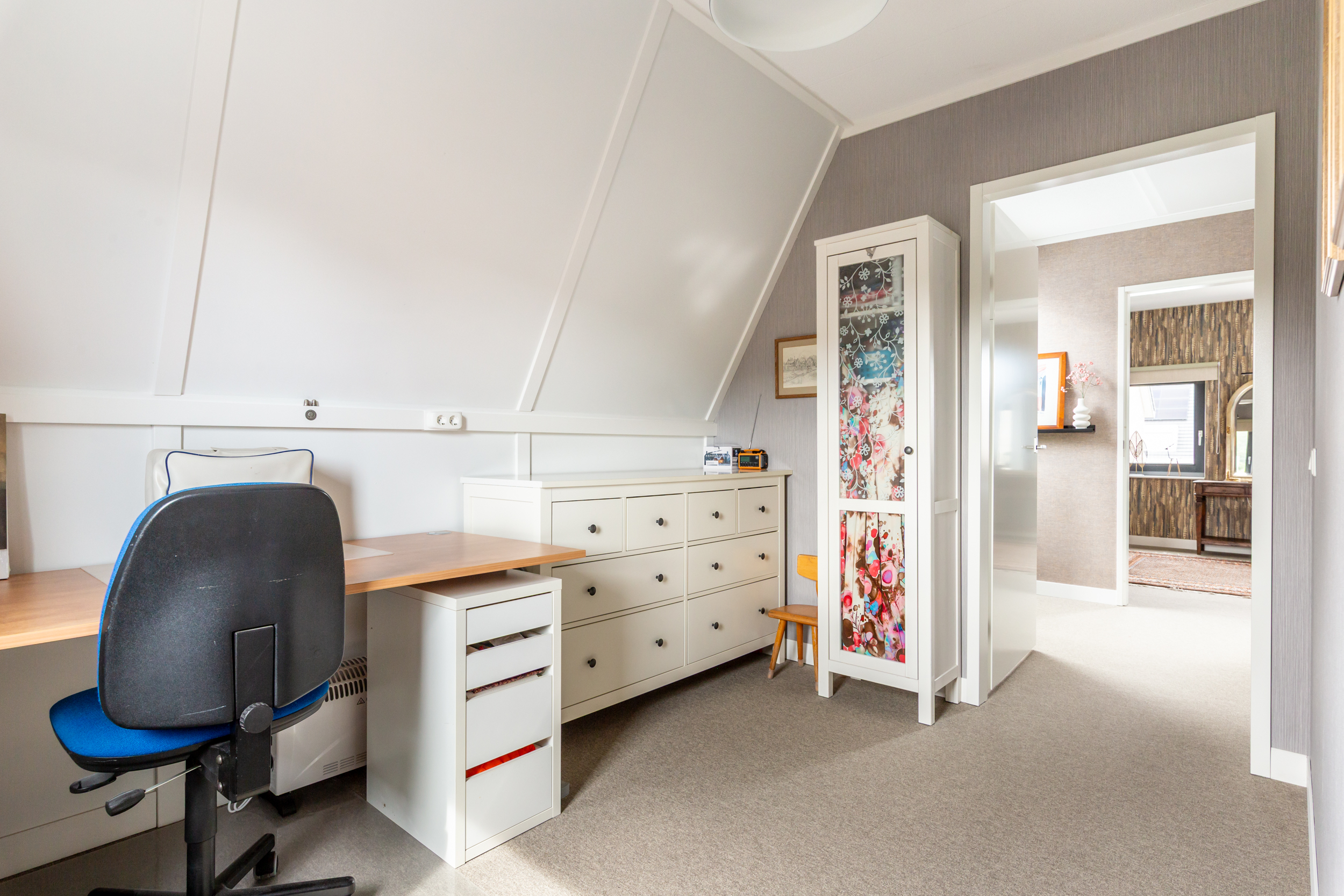 Deze verdieping beschikt over een ruime overloop die toegang geeft tot de 2 kamers en de tweede badkamer. De vliering is bereikbaar middels een luik met vlizotrap. Het dakraam zorgt voor natuurlijk daglicht op de overloop. De grootste kamer is aan de voorzijde van de woning gesitueerd en is over de gehele breedte gelegen, deze kamer kan eventueel gesplitst worden in 2 kamers. De kamer aan de achterzijde biedt toegang tot de wasruimte (deze kan ook dienst doen als kledingruimte), hier staat ook de WTW-unit. Mooi uit het zicht dus! De kamer en de wasruimte zijn beide voorzien van een elektrisch bedienbaar rolluik. De tweede badkamer is in een lichte kleurstelling betegeld van vloer tot plafond en is ingericht met een toilet, een wastafel met meubel, een spiegel met verlichting en verwarming en een douchecabine.