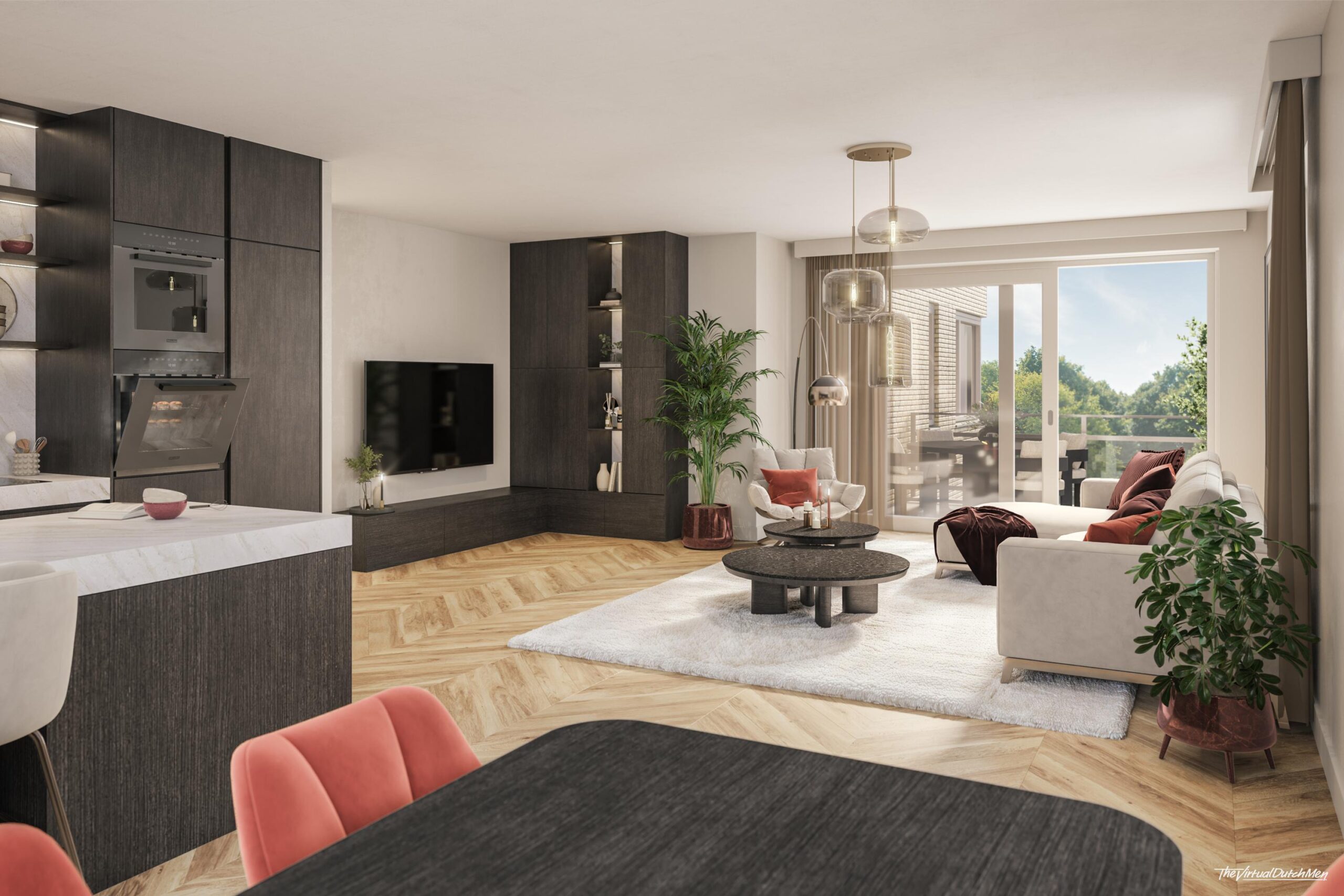 * Grote woonkamer met daglicht van meerdere kanten